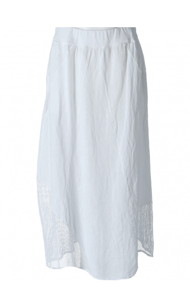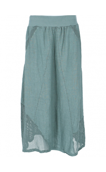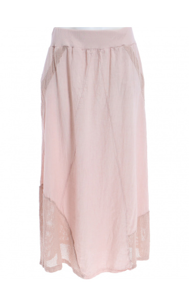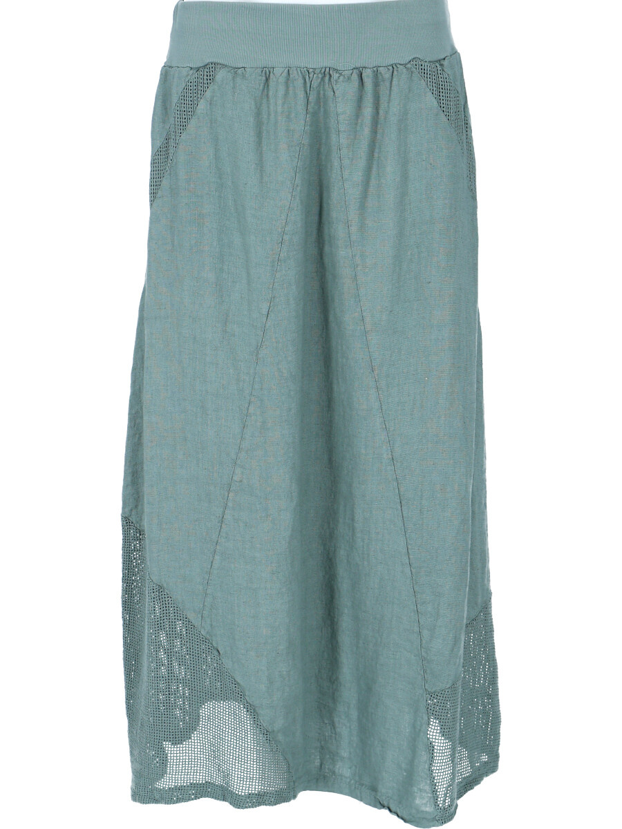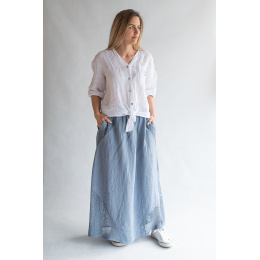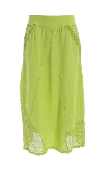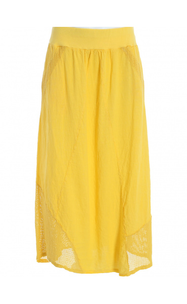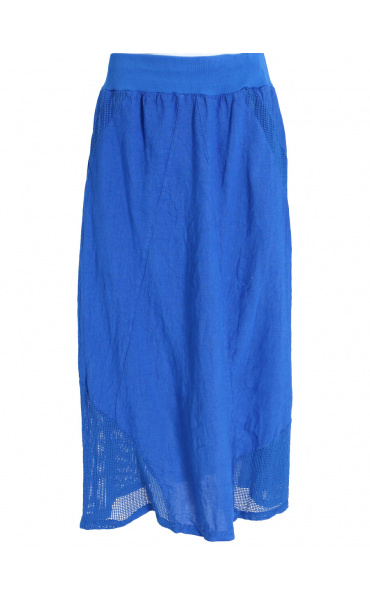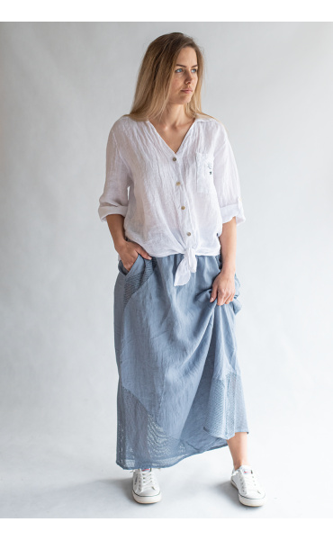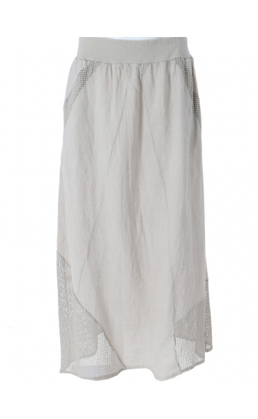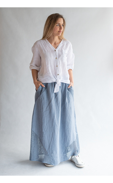 Stylové dámská dlouhá lněná sukně s elastickým pasem a spodním lemem, doplněná kapsami pro denní nošení , vyrobena v Itálii .
