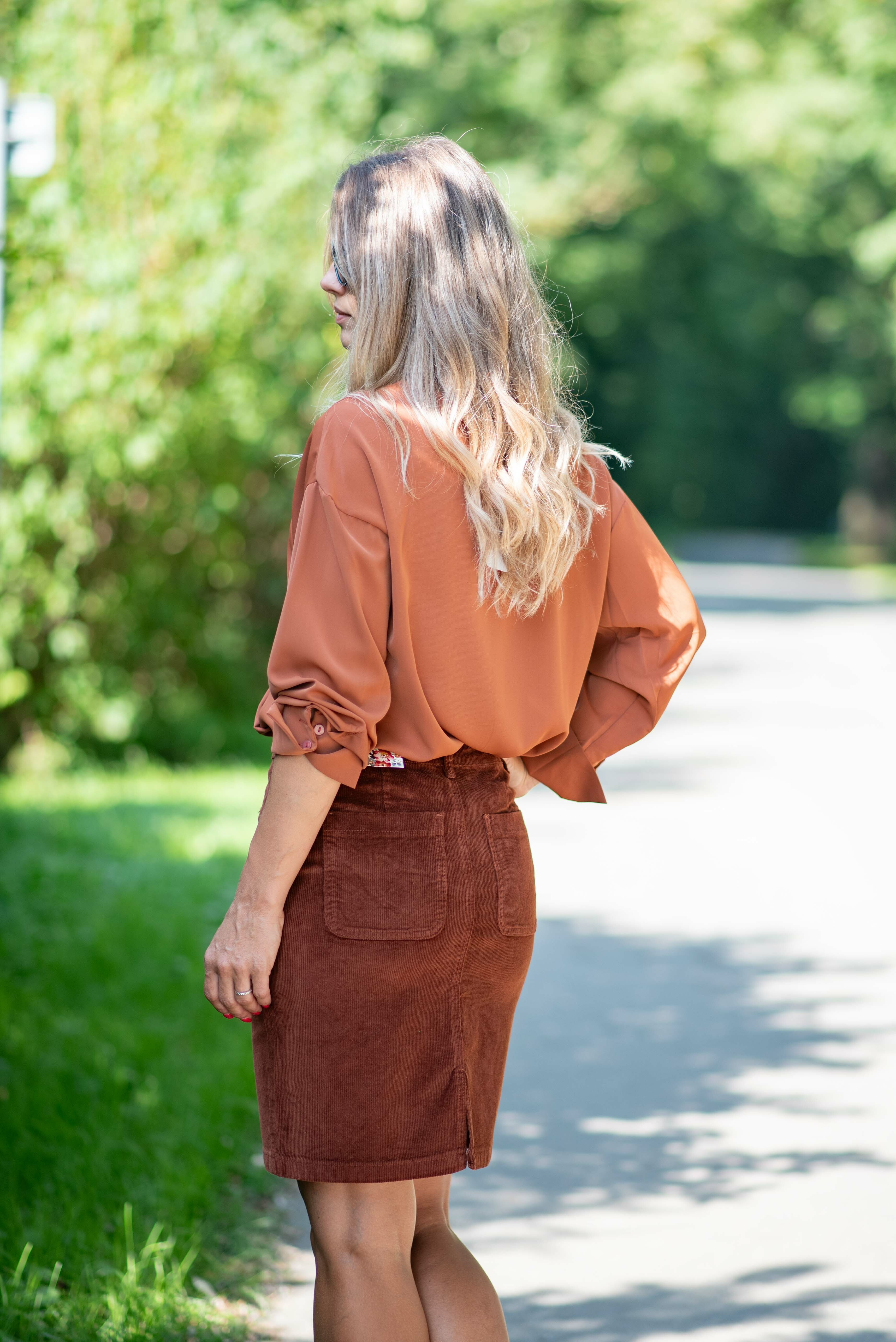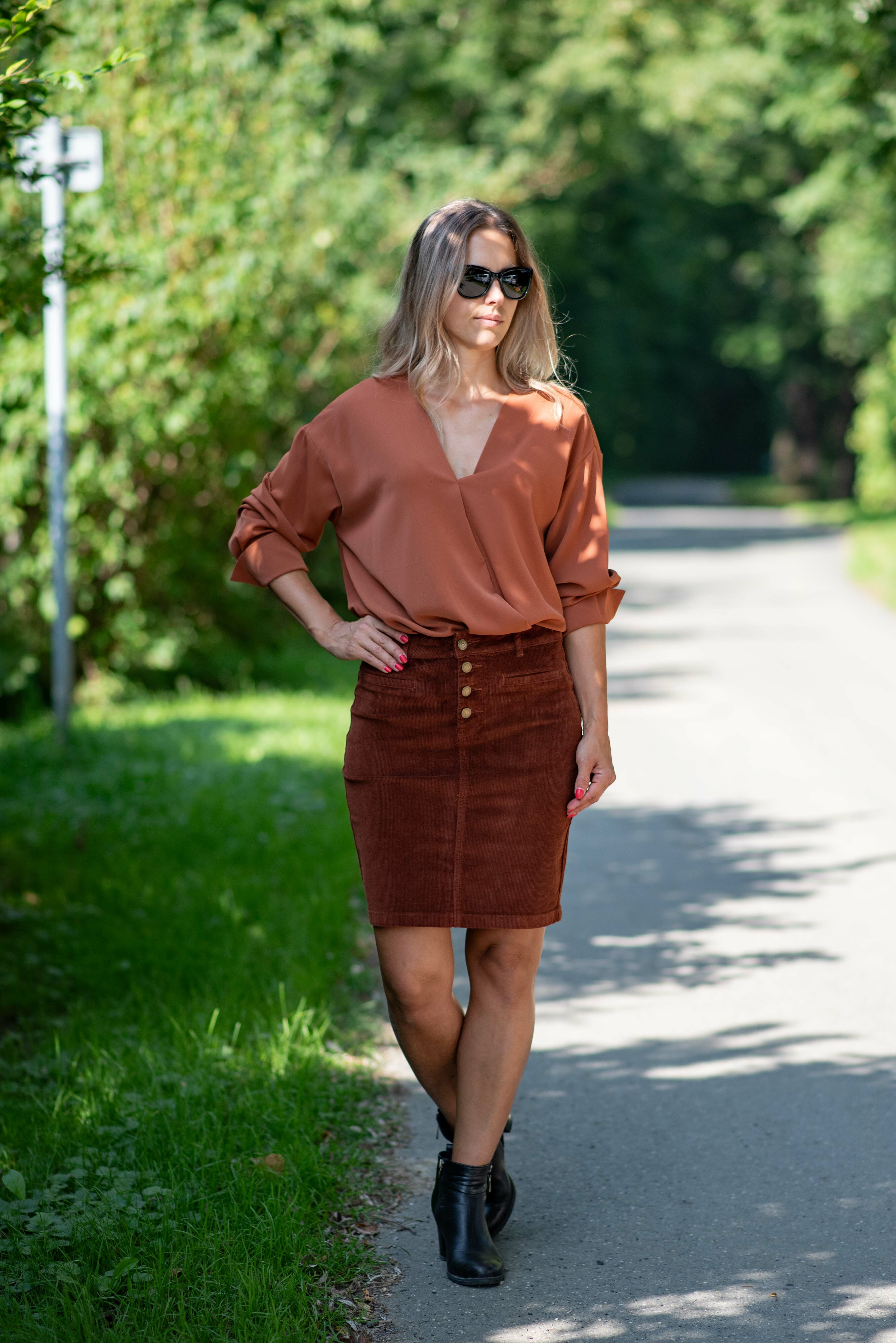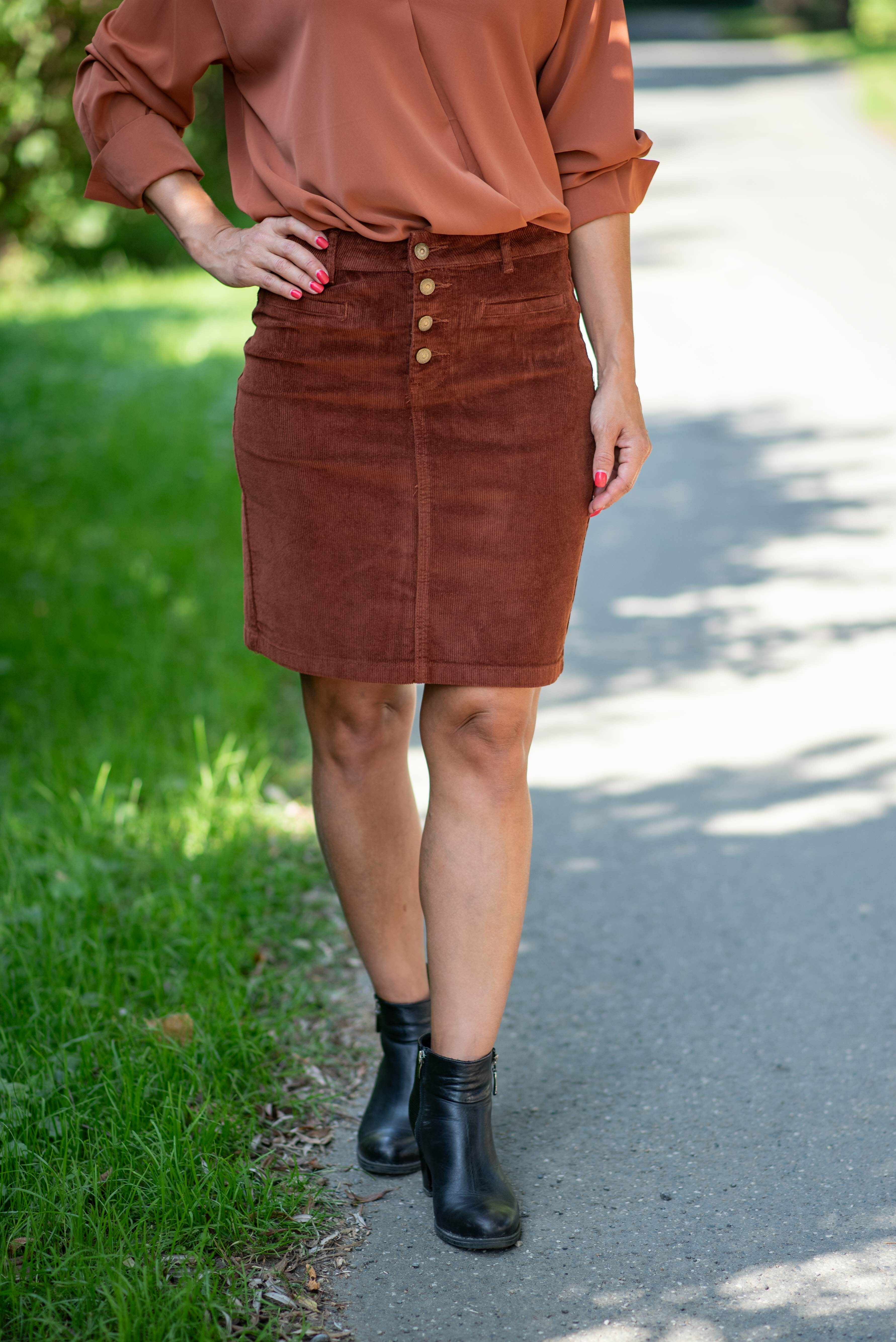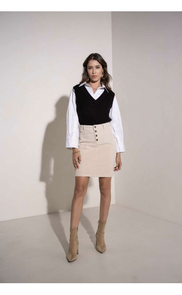 Klasická manšestrová sukně pohodlného střihu s knoflíky.