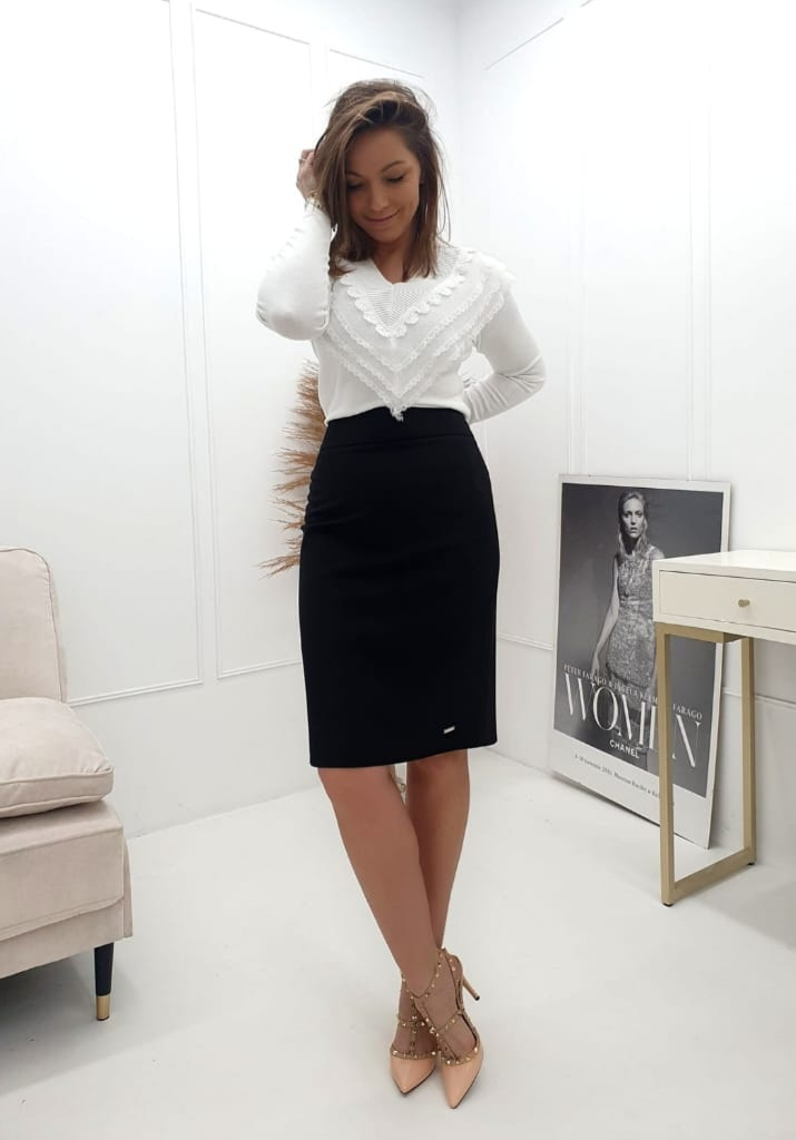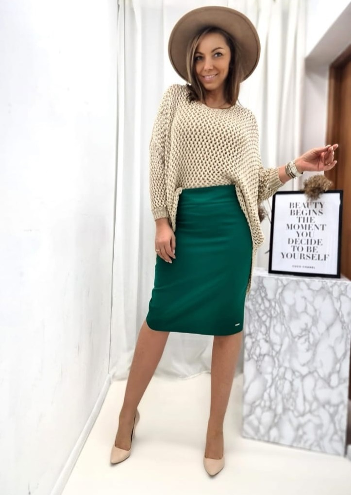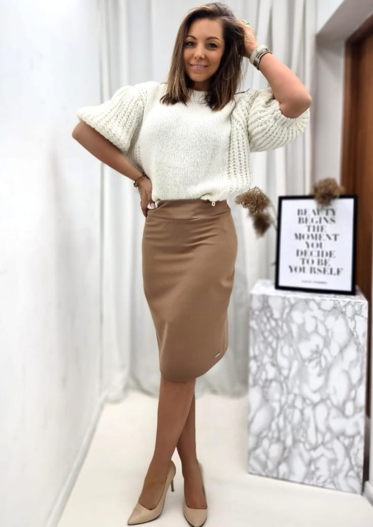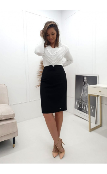Elegantní dámská sukně pro denní nošení s podšívkou, skrytým zipem v zadní části a rozparkem.