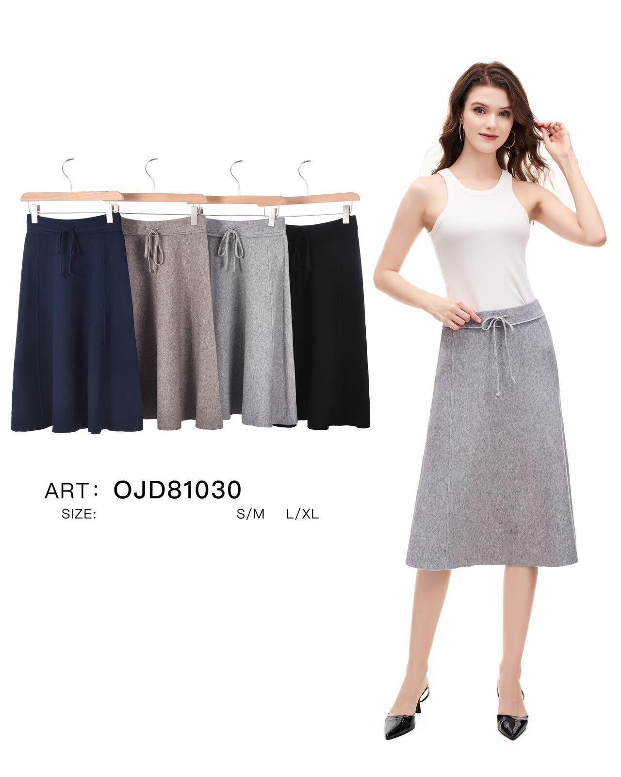 Elegantní sukně midi z úpletové materiálu. Sukně je v pase do gumy s regulací na šňůrku. Dovoz Itálie