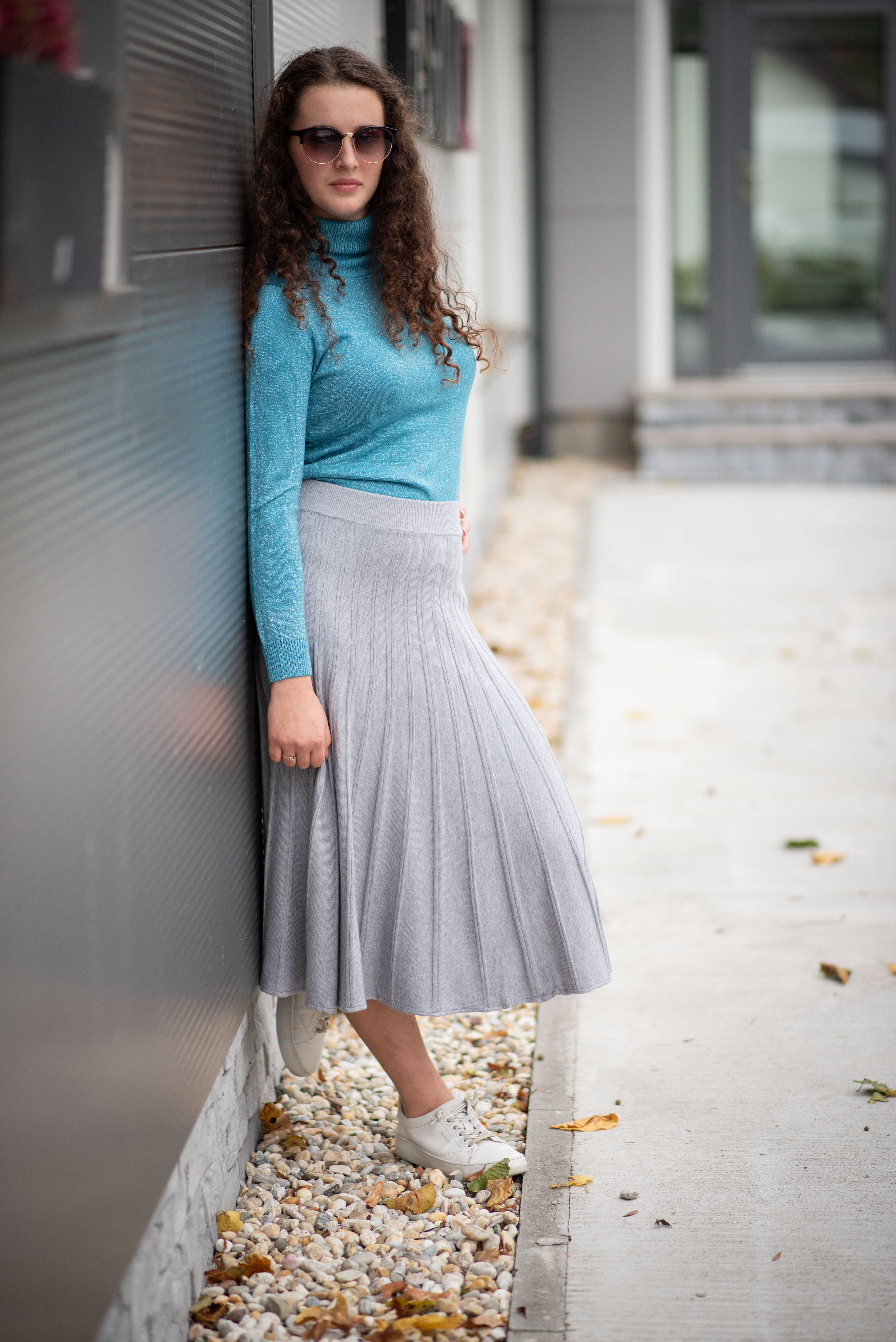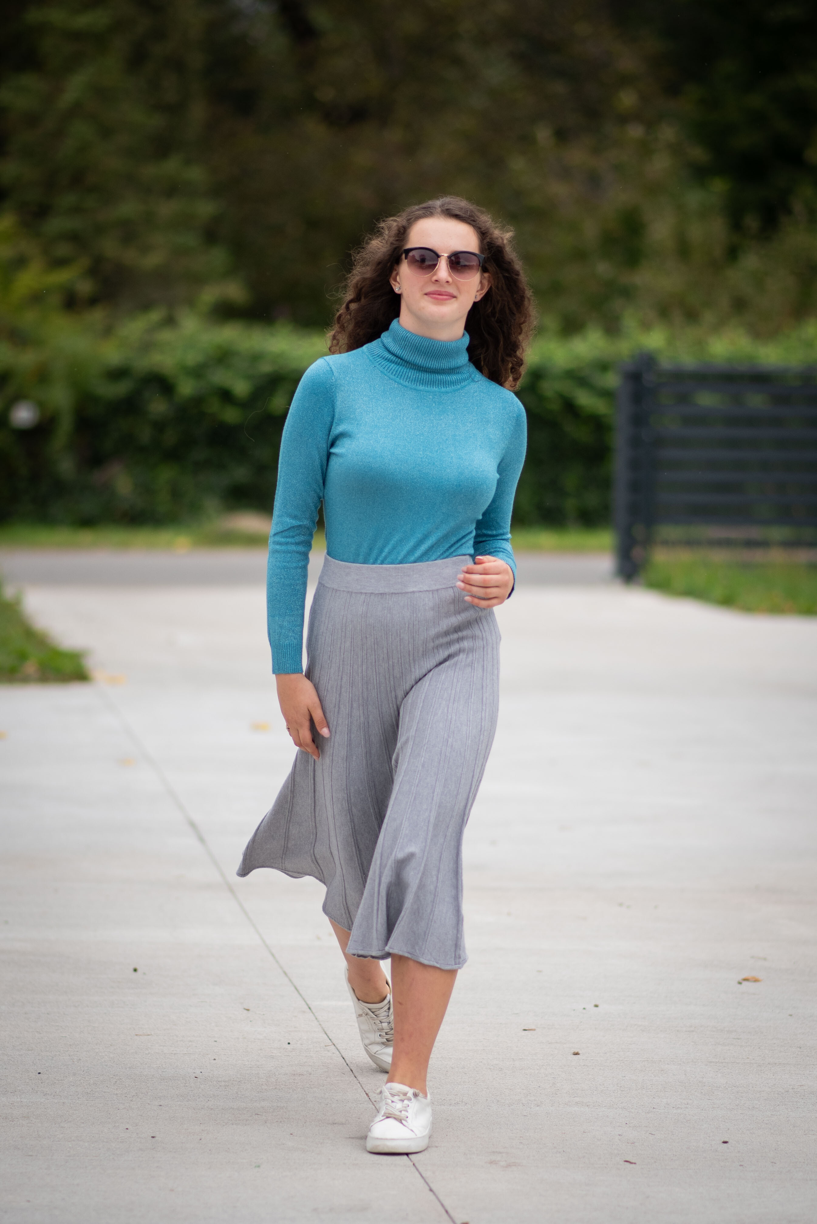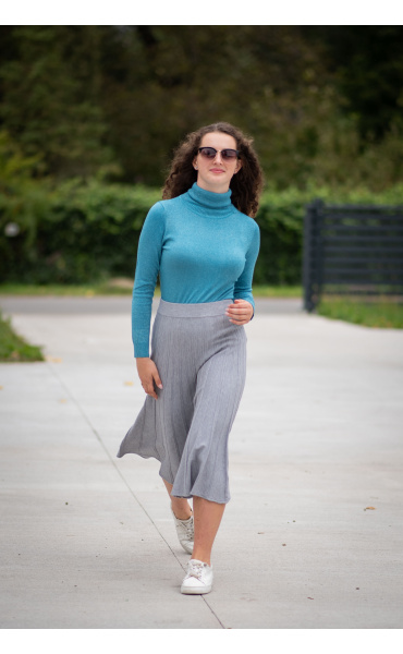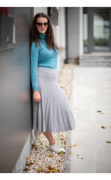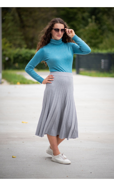 Úpletová sukně v midi délce a áčkového střihu, v pase do gumy. Dovoz Itálie.
