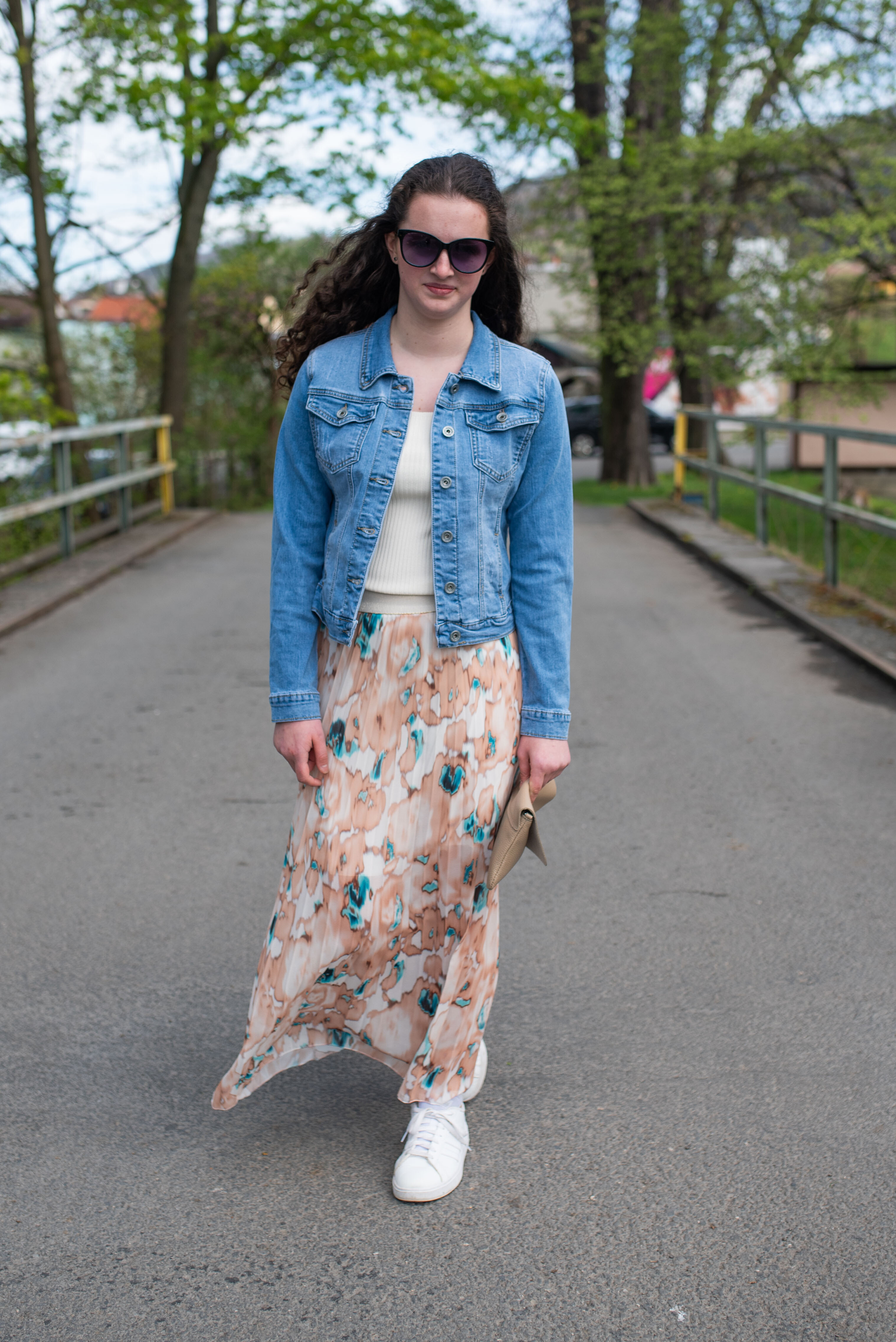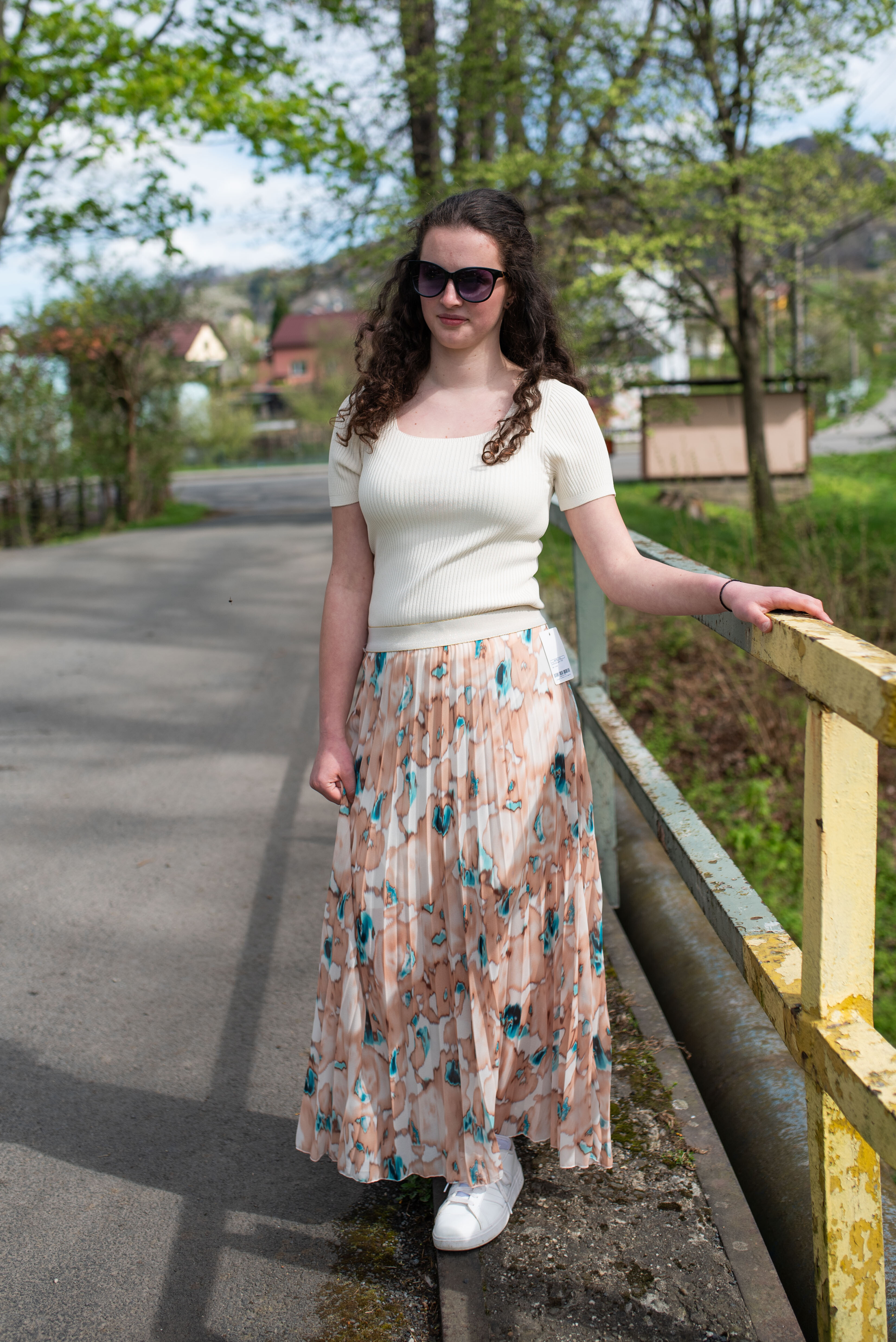 Dámská plisovaná dlouhá sukně, pohodlná pro denní nošení, v pase do gumy