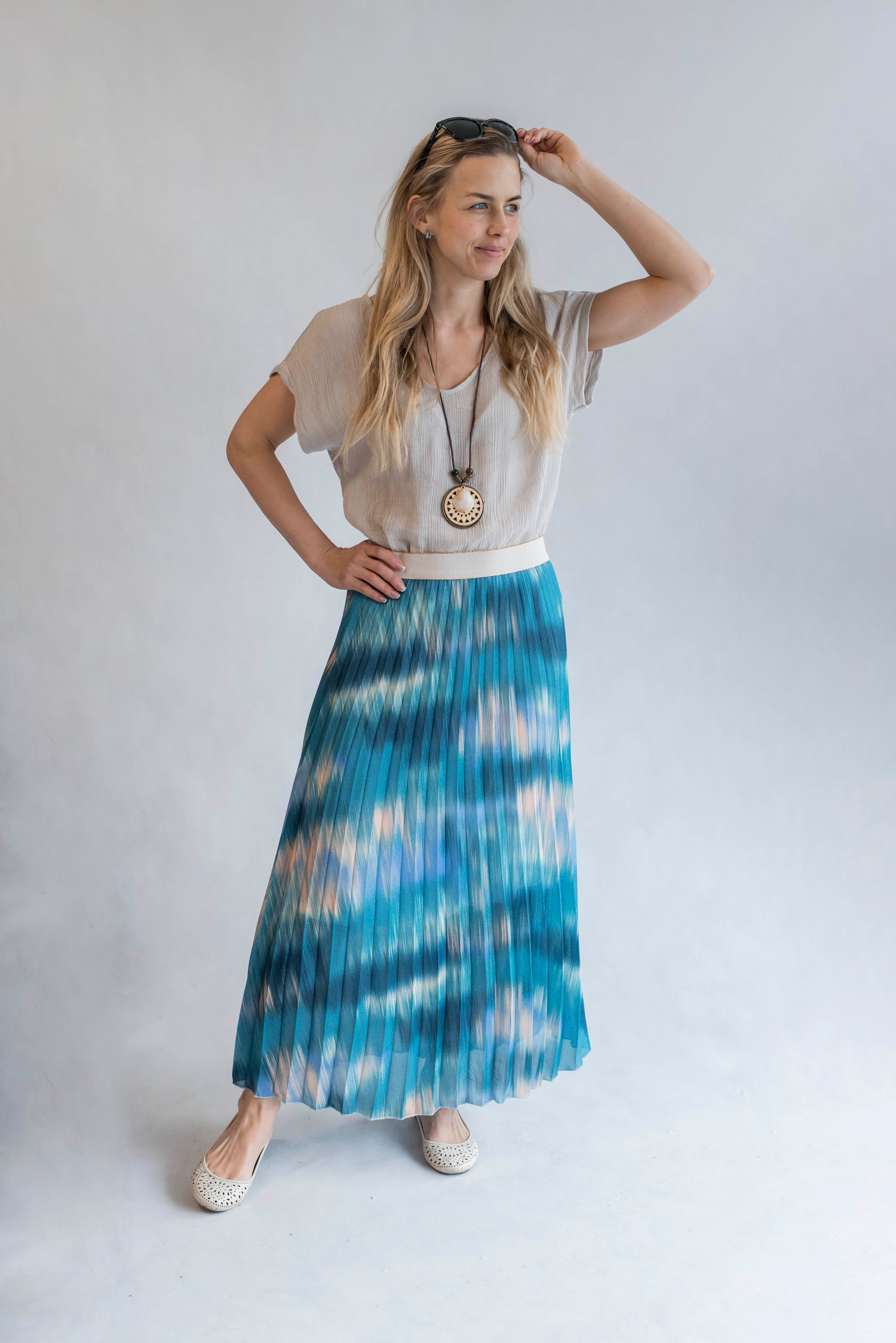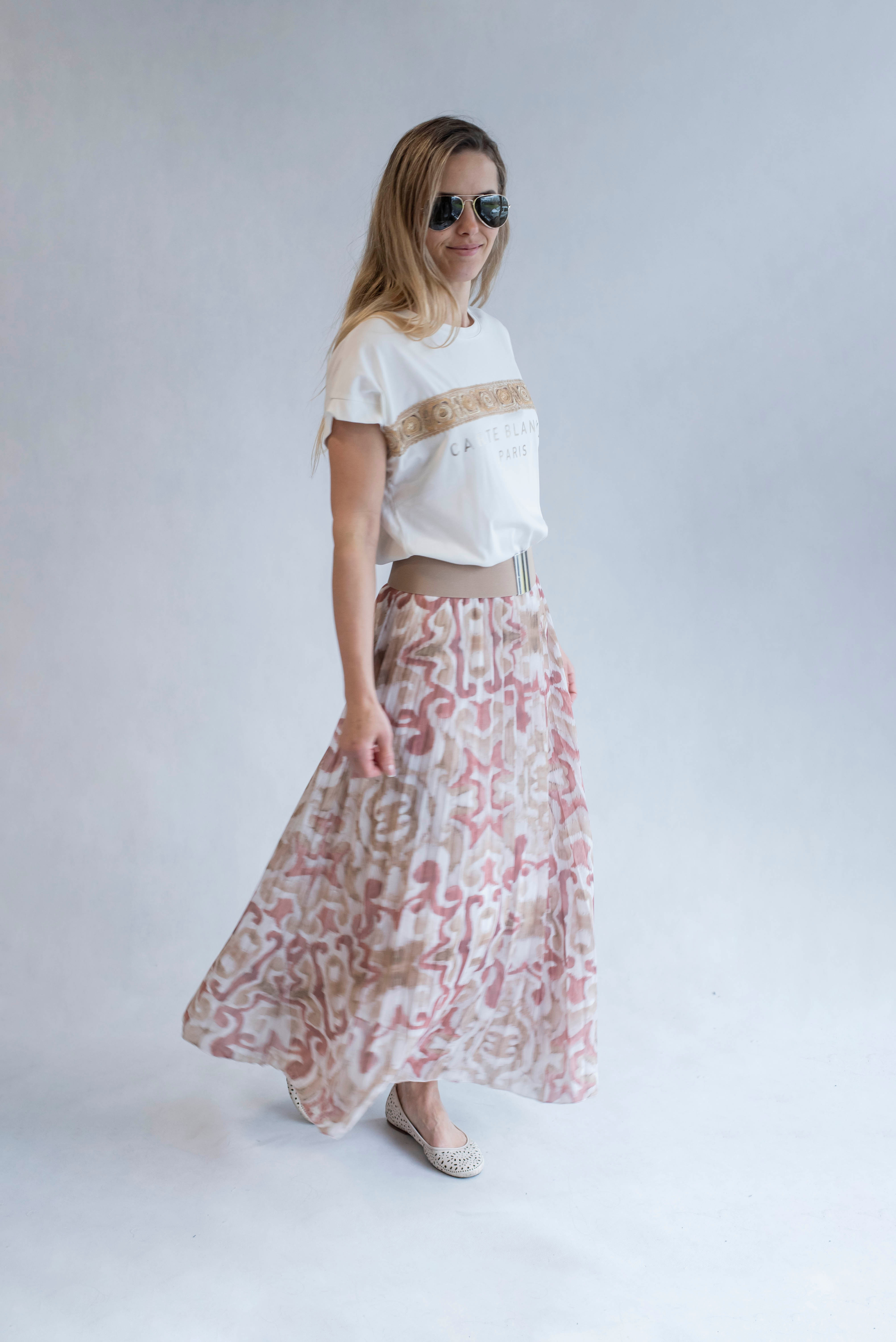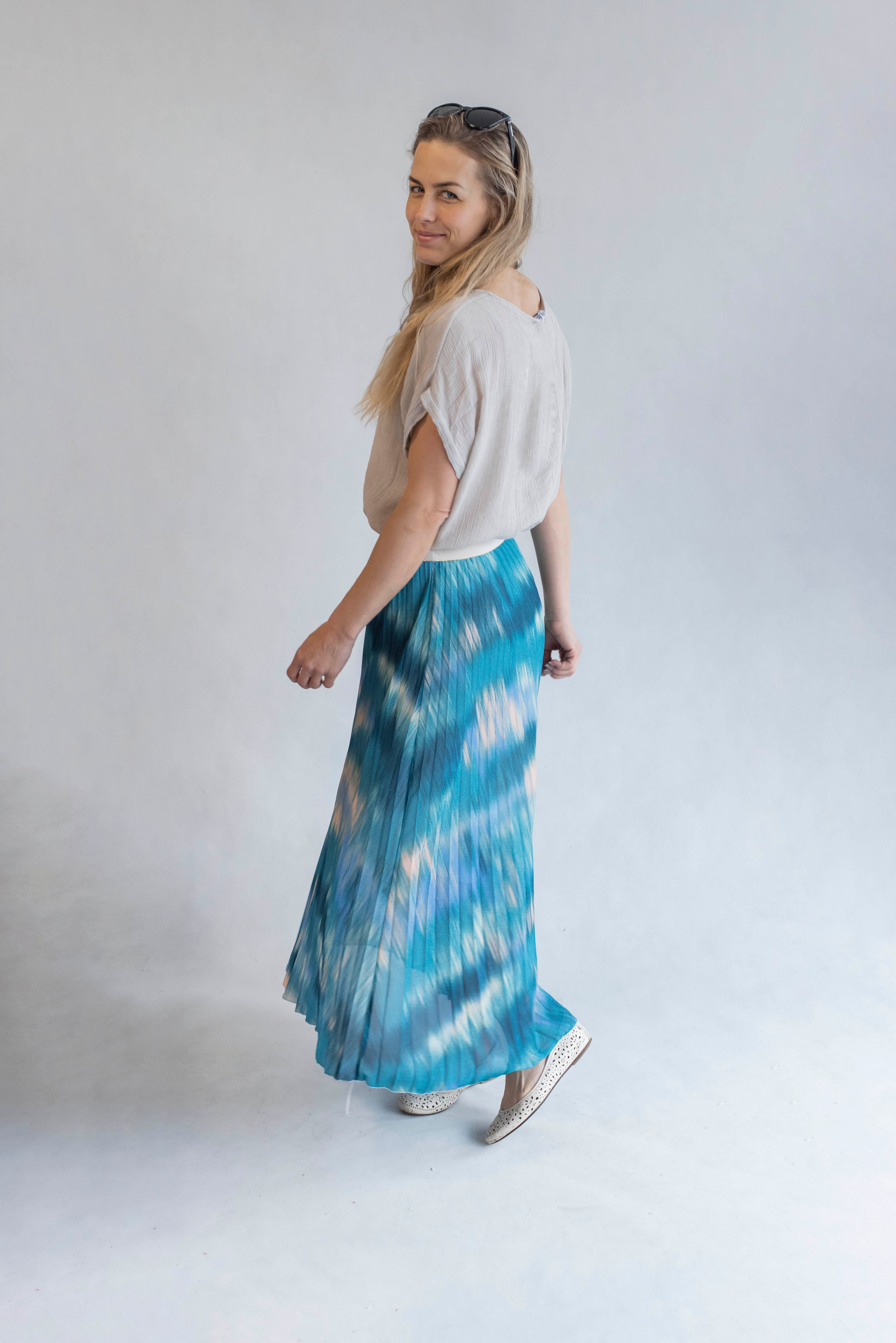 Dámská plisovaná dlouhá sukně, pohodlná pro denní nošení, v pase do gumy