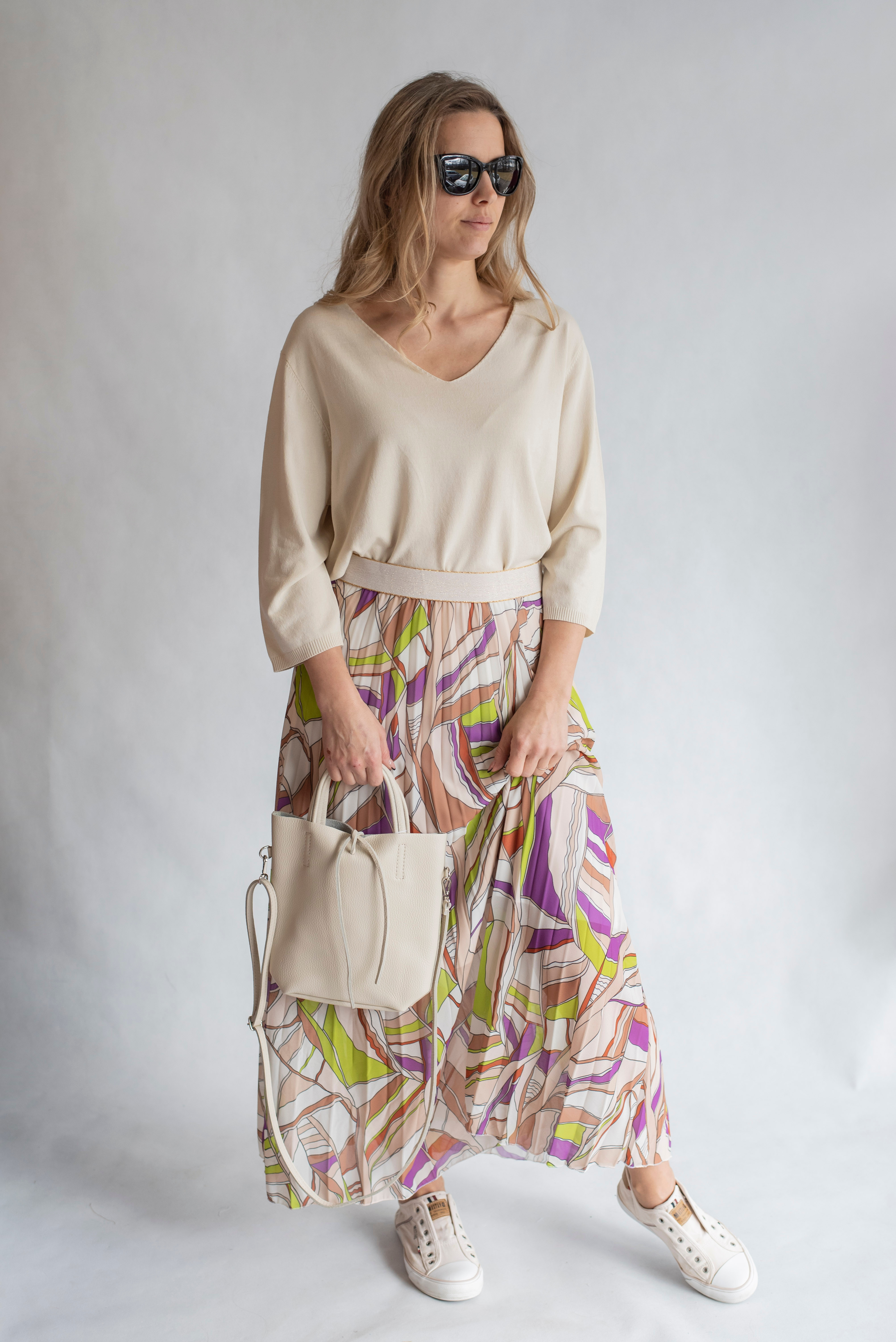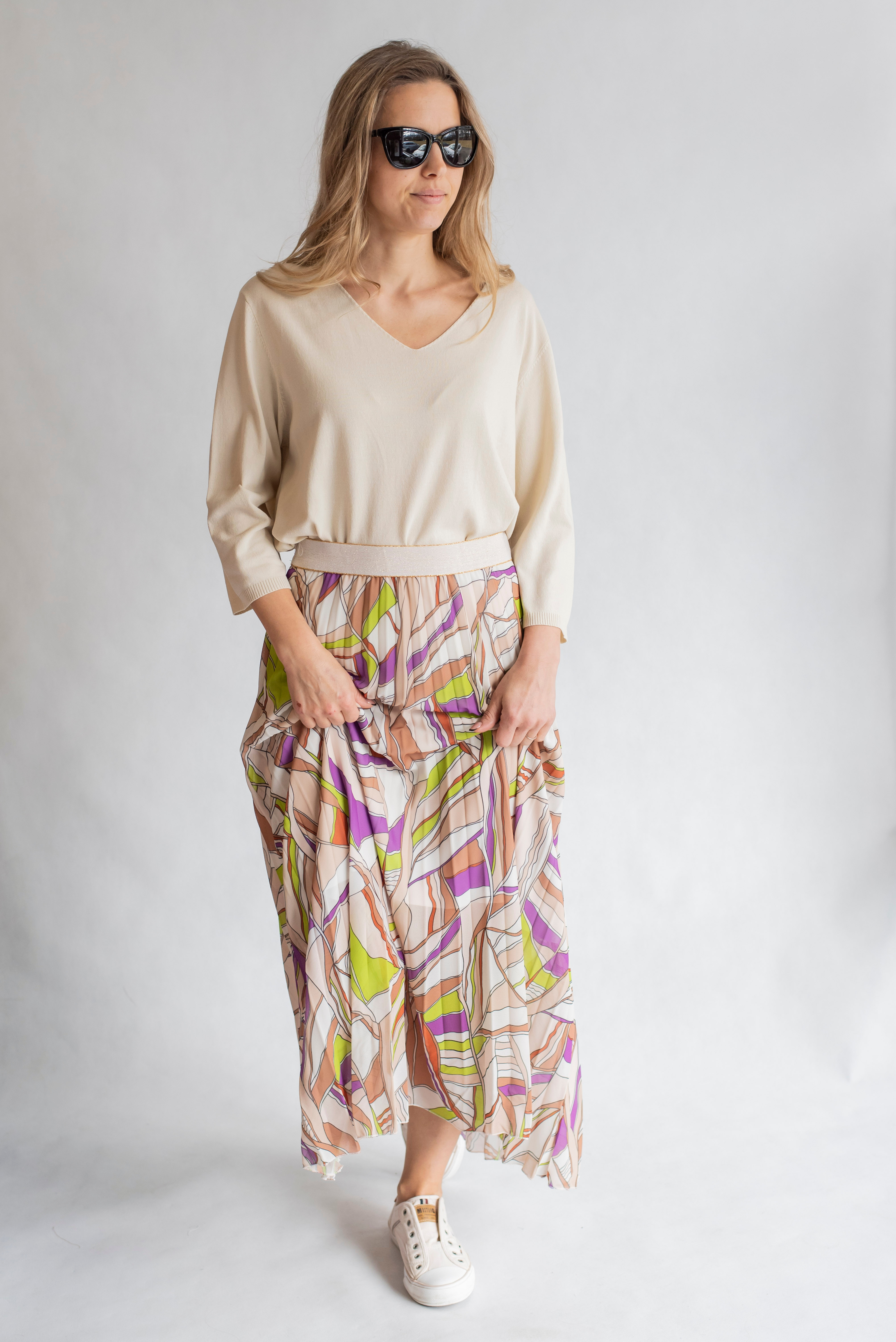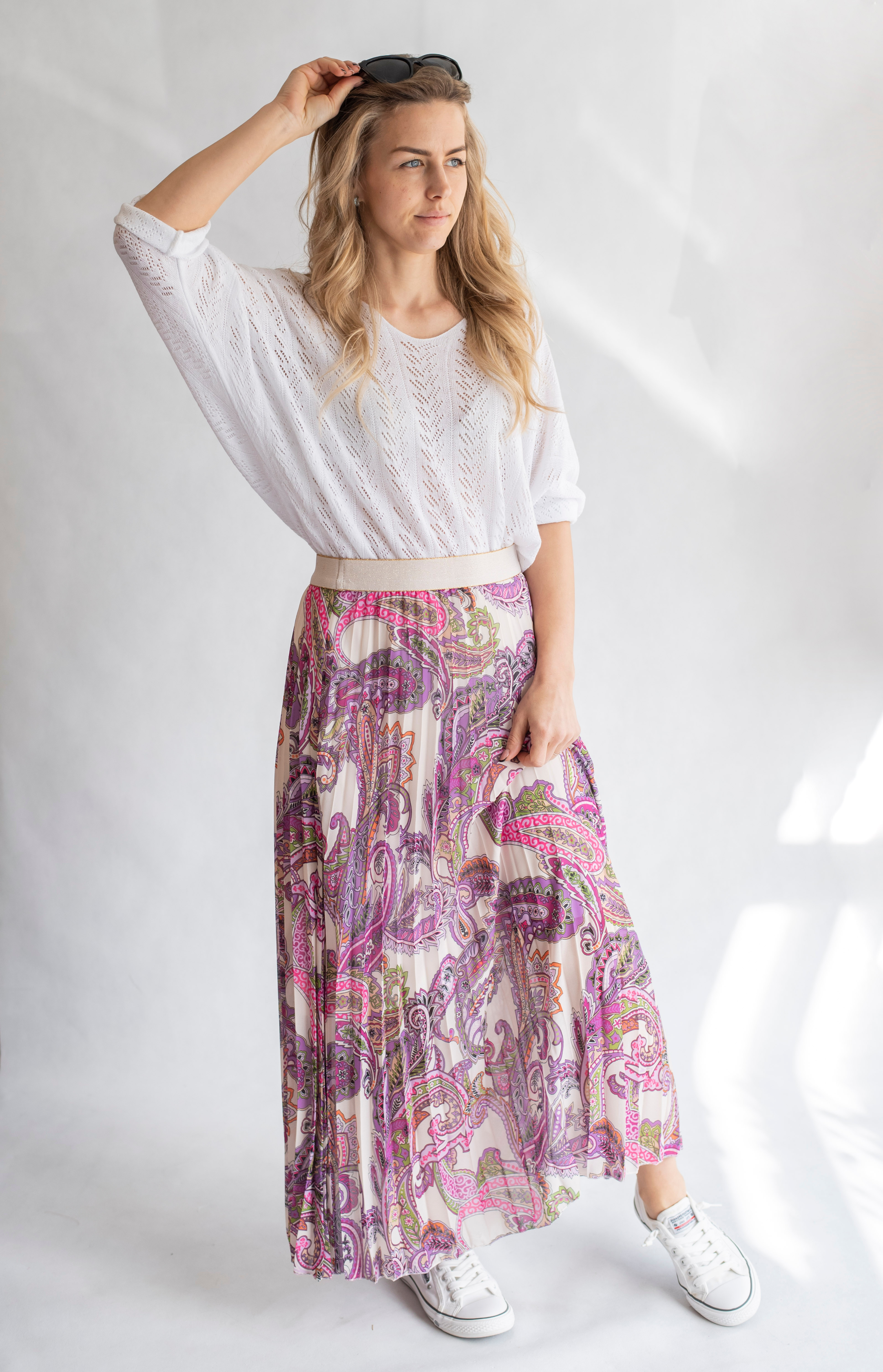 Dámská plisovaná dlouhá sukně, pohodlná pro denní nošení, v pase do gumy