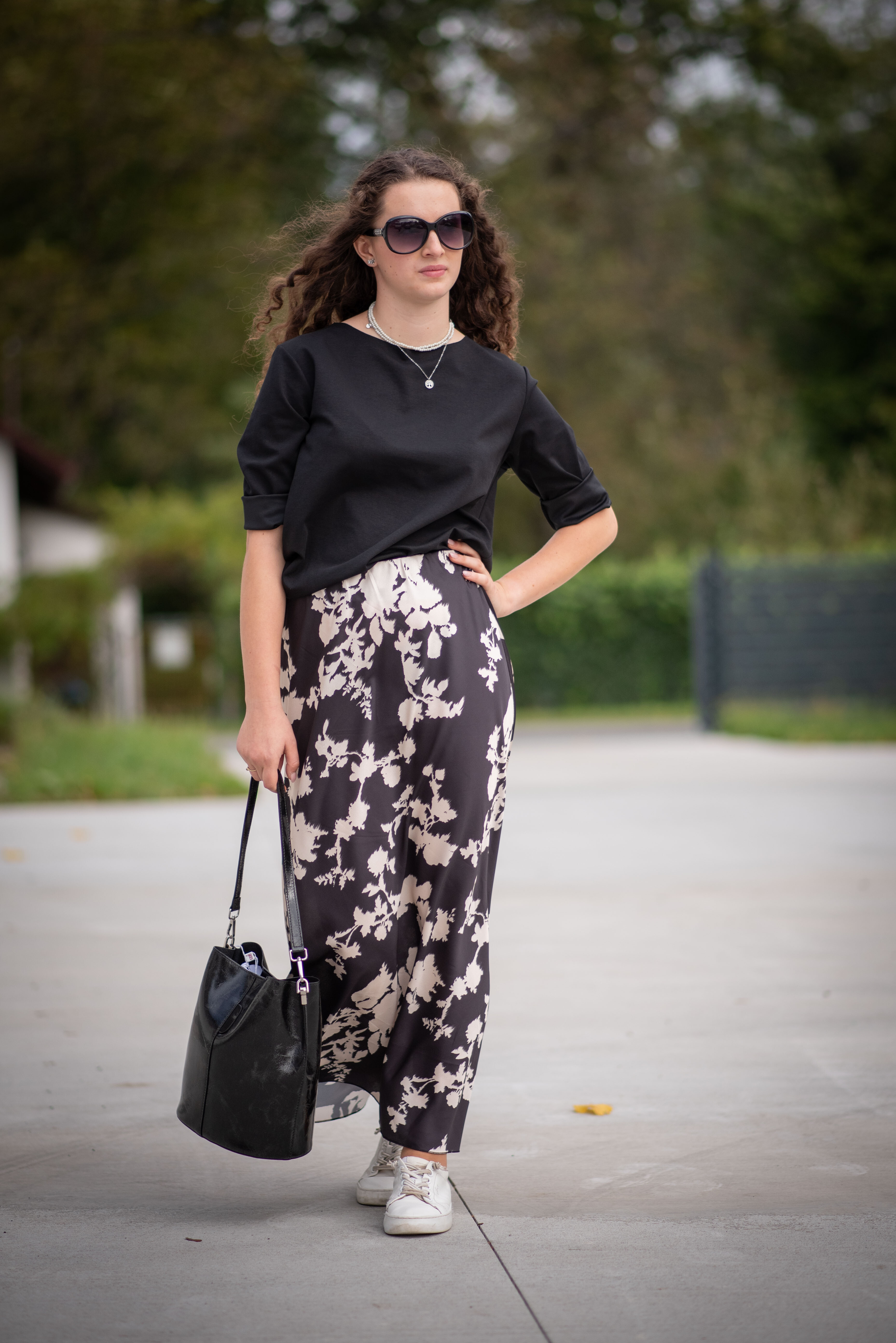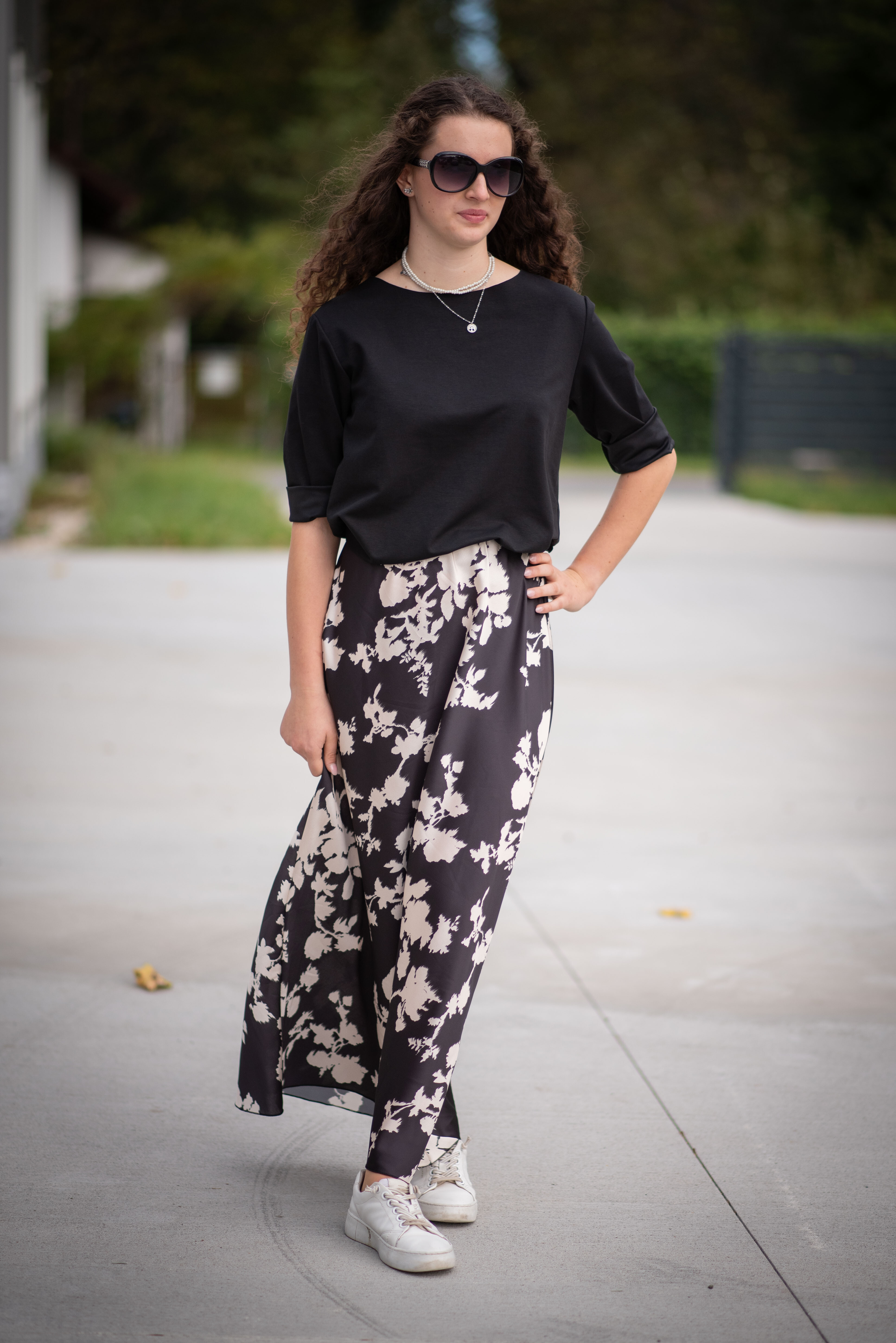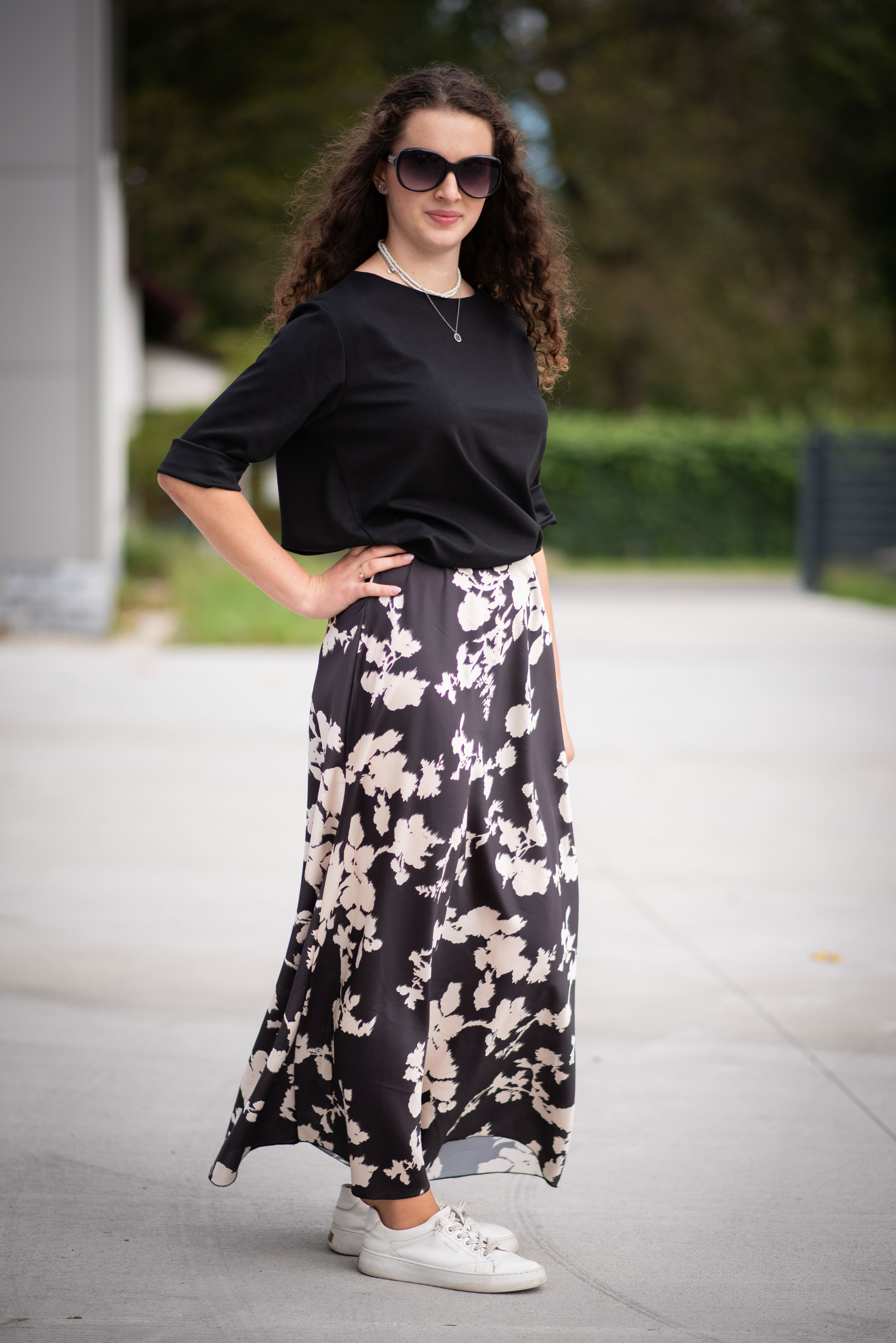 Dámská dlouhá sukně, pohodlná pro denní nošení, v pase do gumy