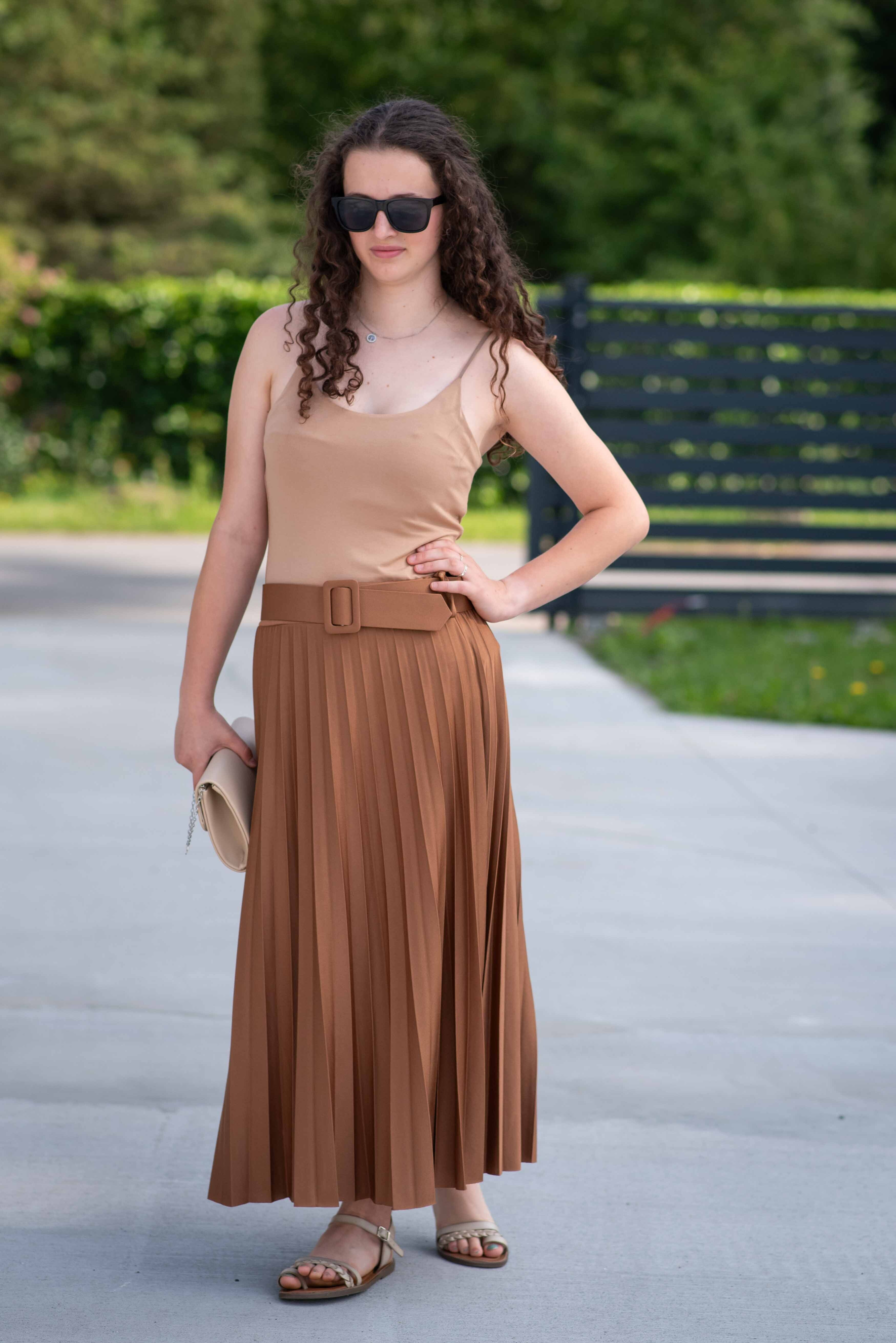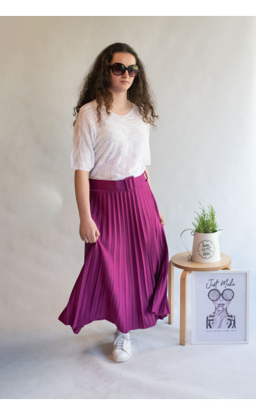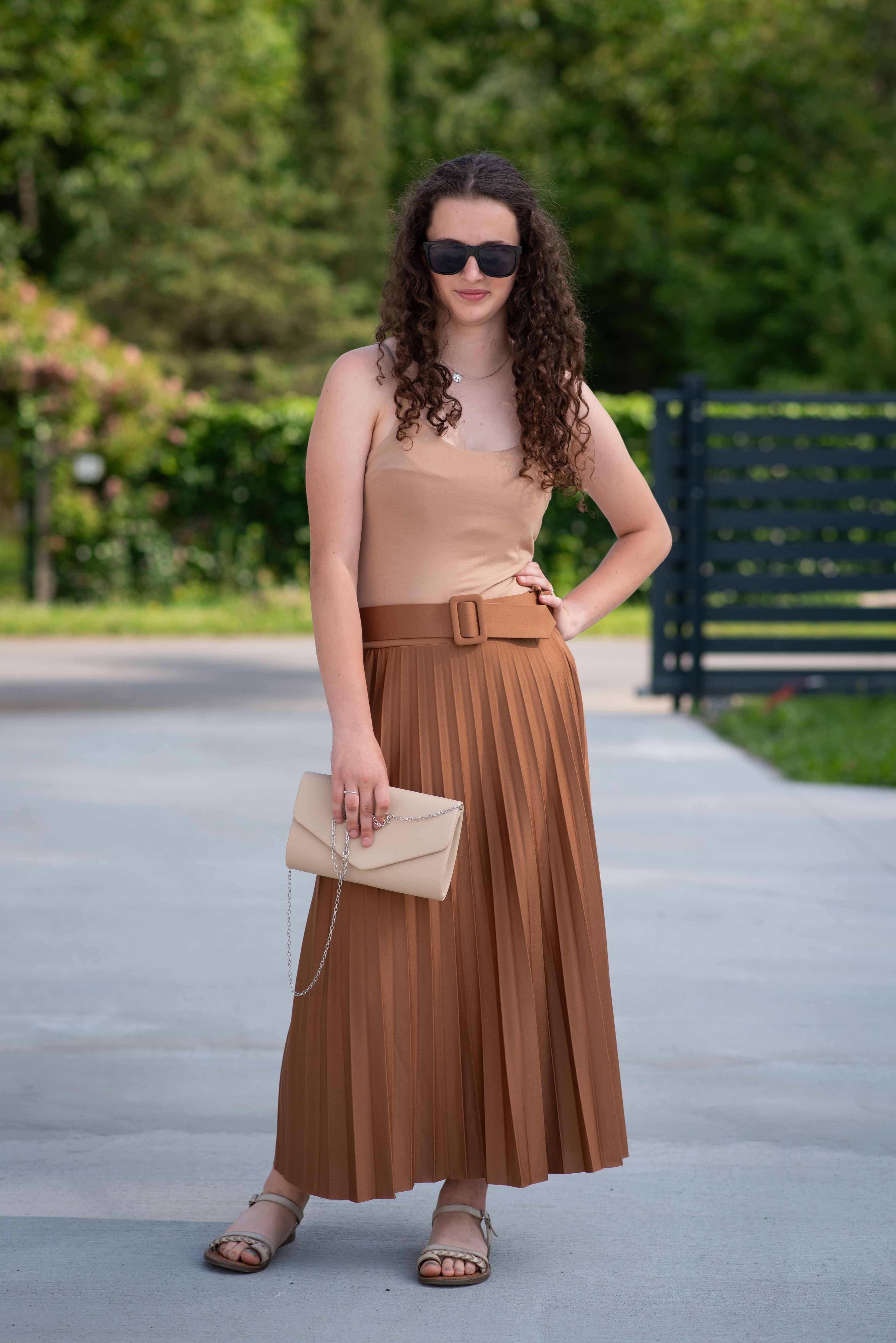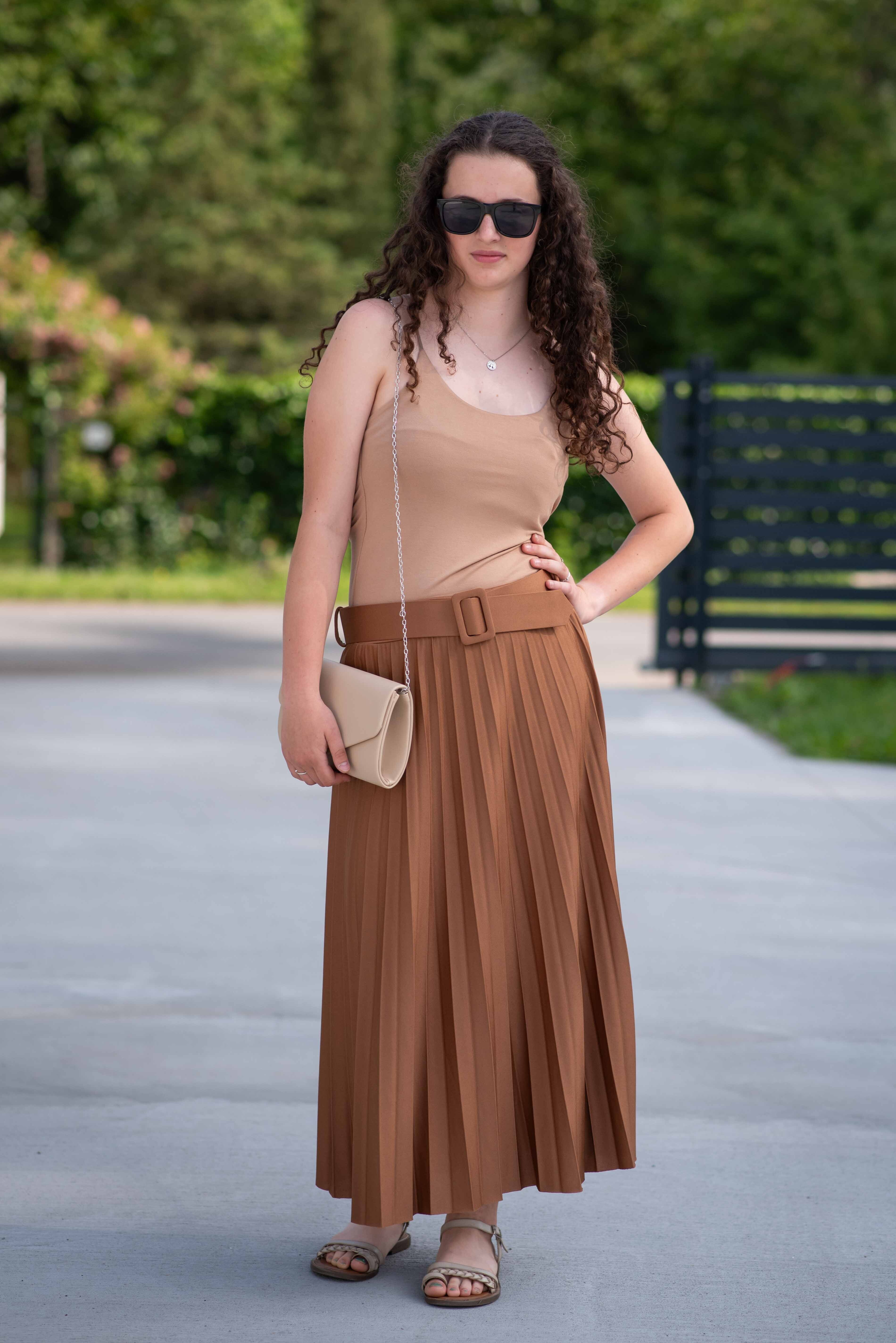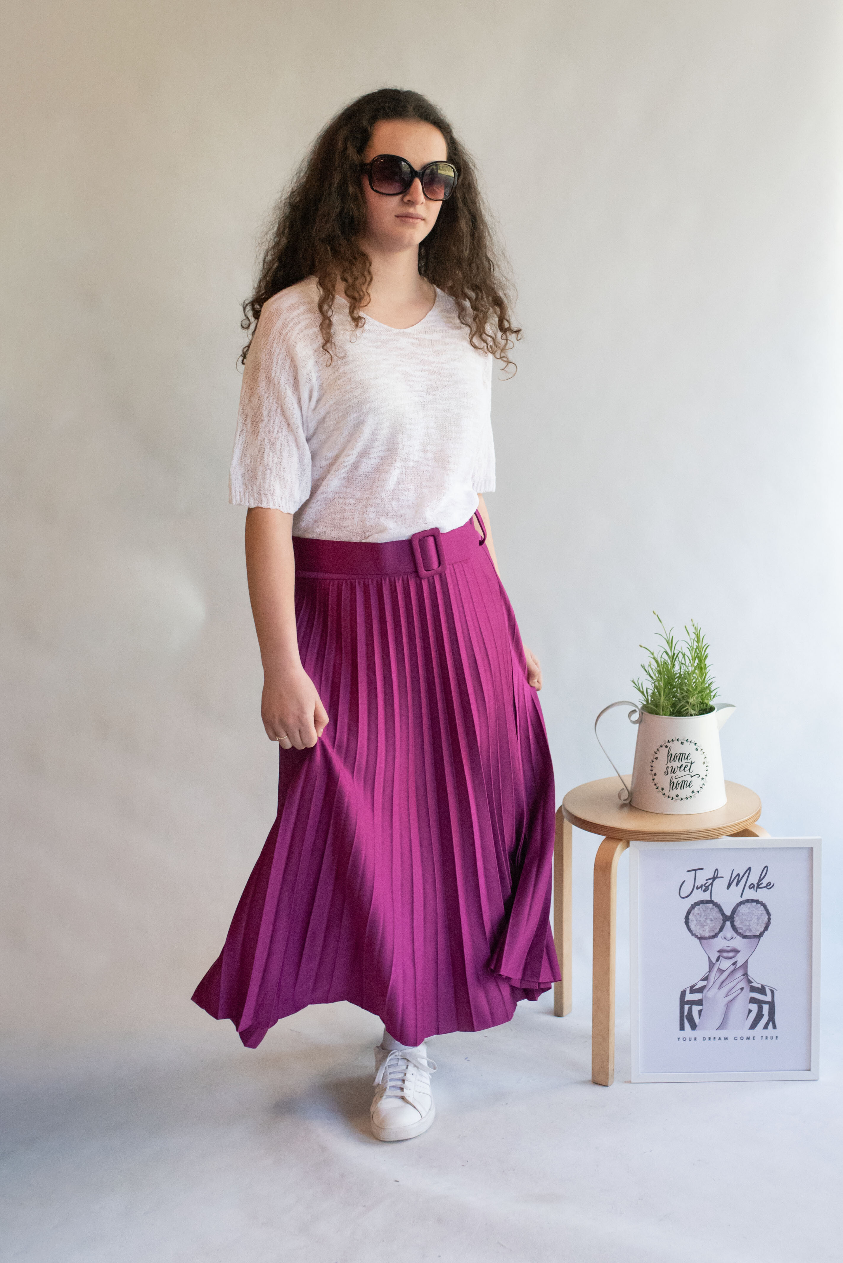 Dámská plisovaná sukně Midi délka s páskem, pohodlná pro denní nošení, v pase do gumy