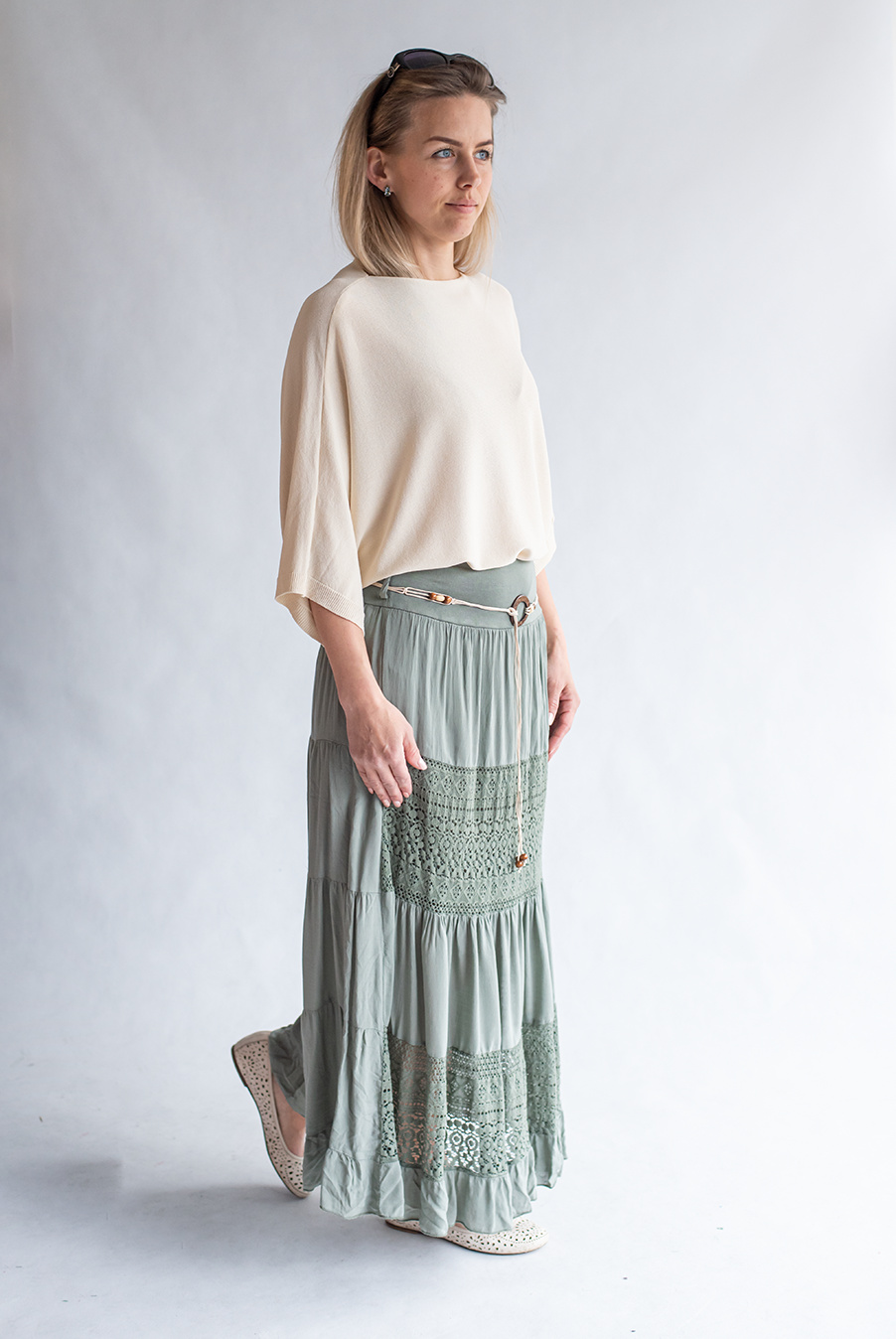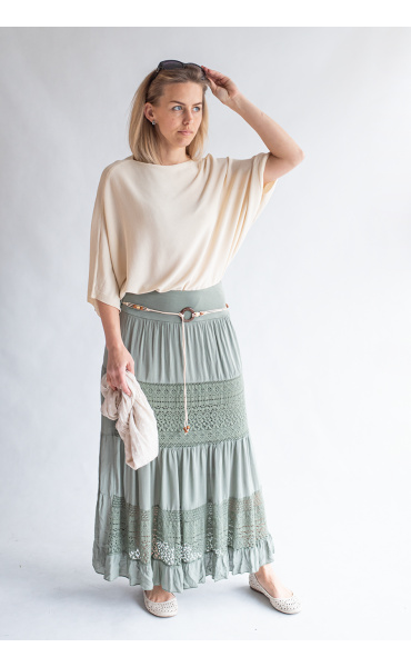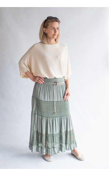 Stylové dámská dlouhá sukně pro denní nošení , elastický pás, vyrobena v Itálii .