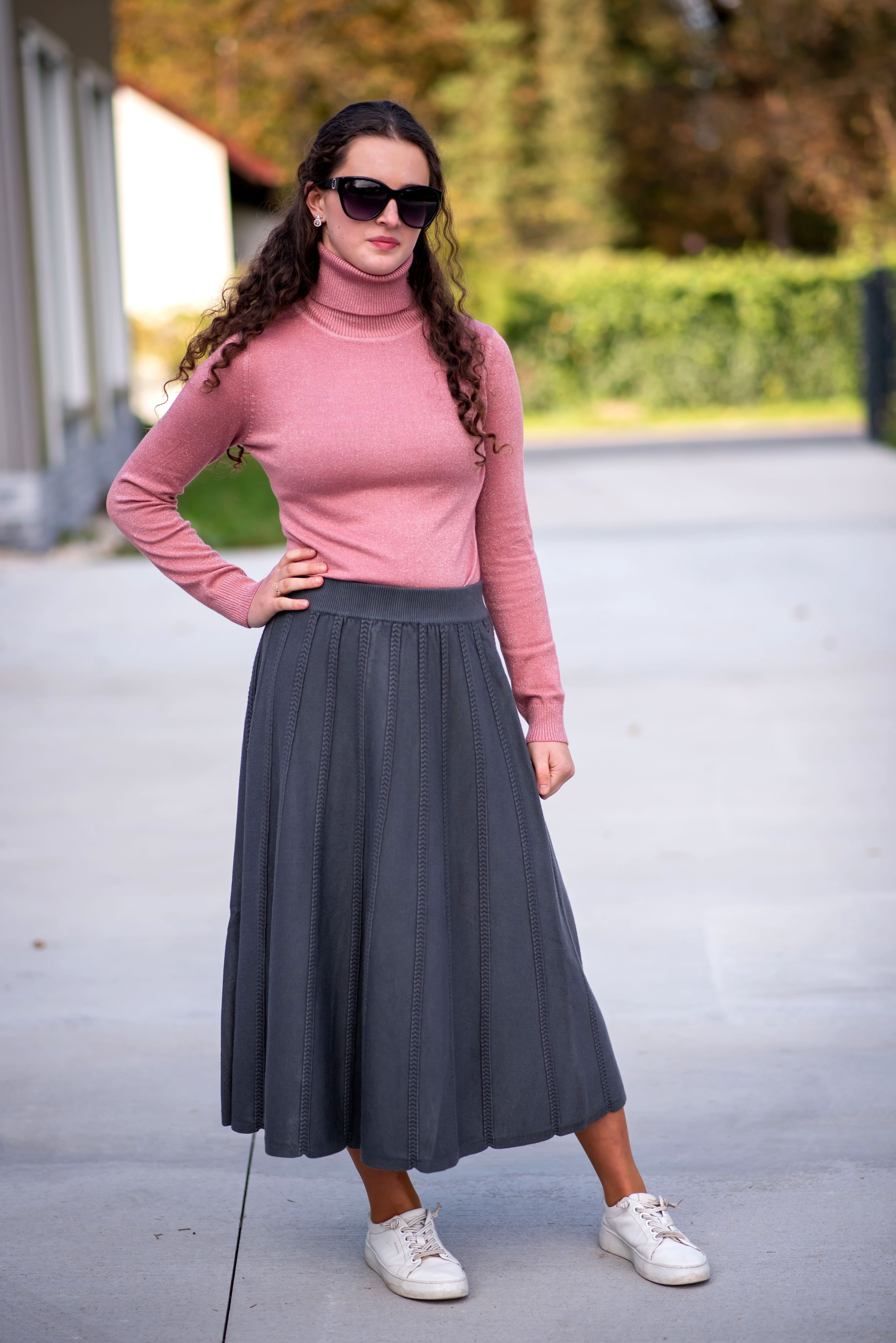 Elegantní úpletová sukně v midi délce. Sukně je áčkového střihu a v pase do gumy. Dovoz Itálie