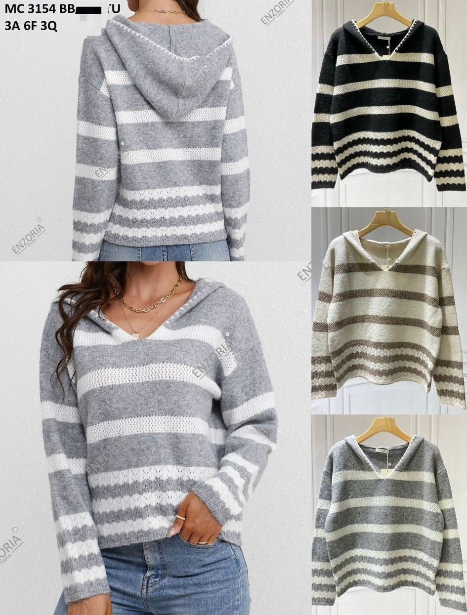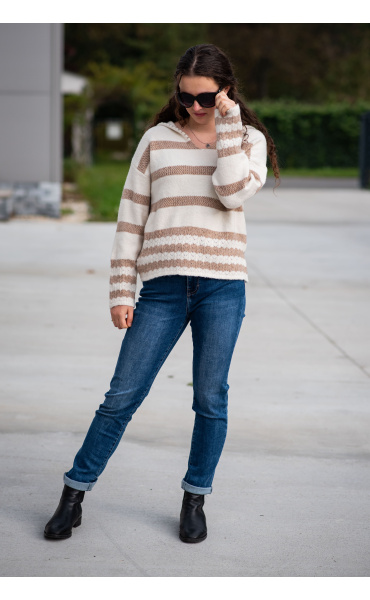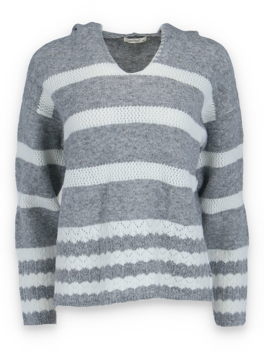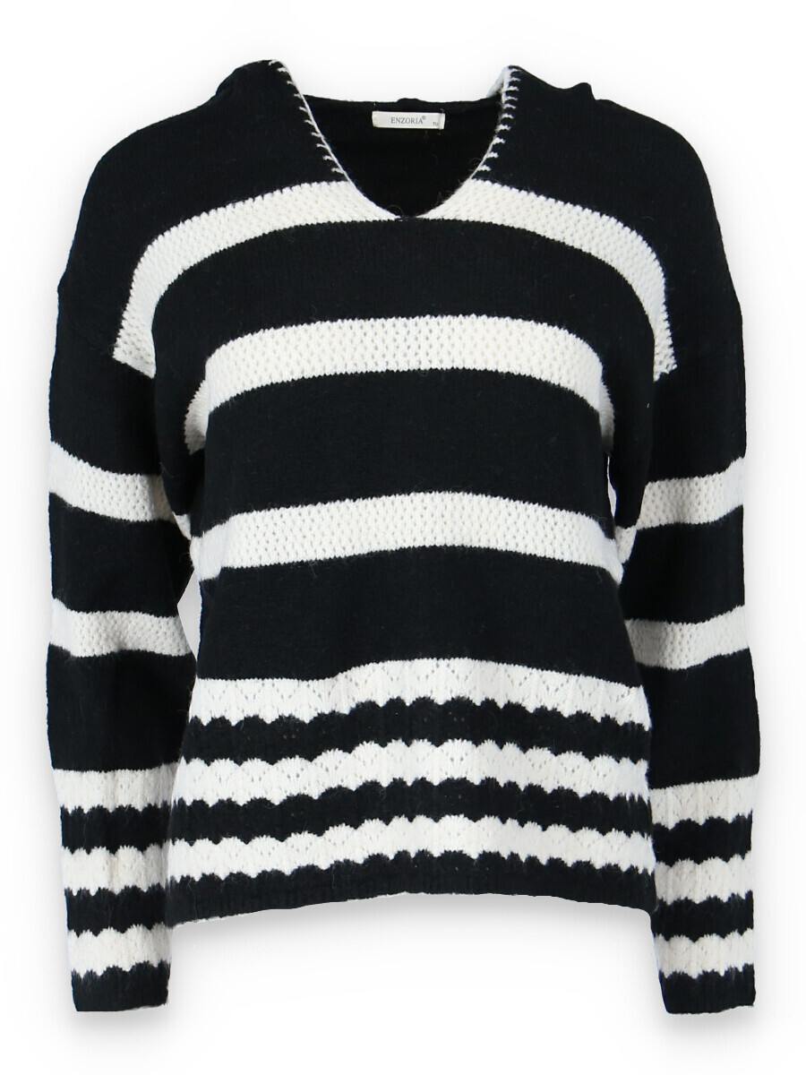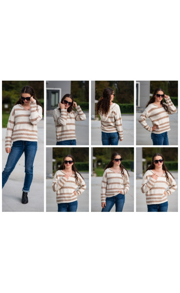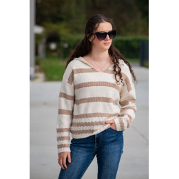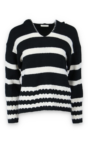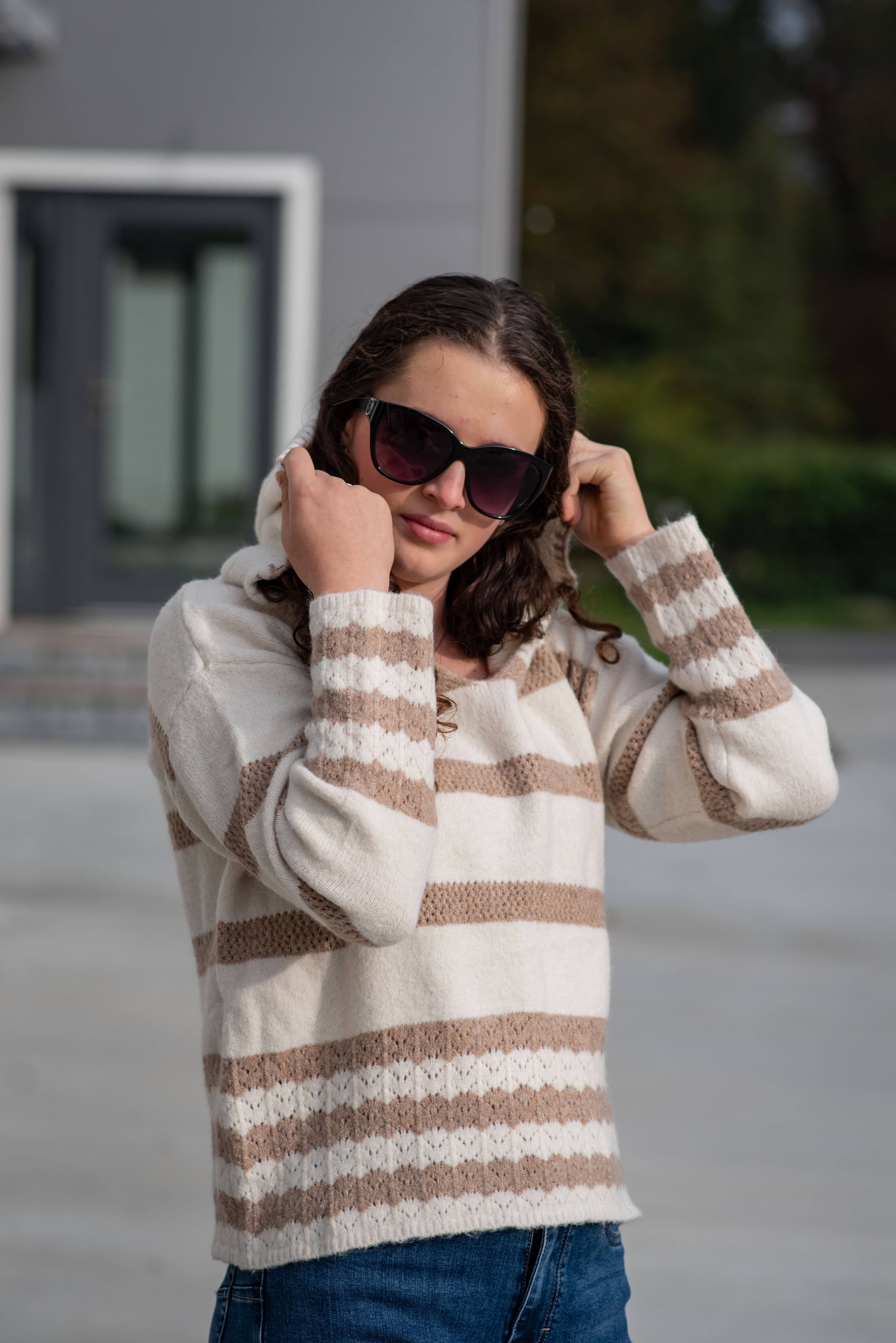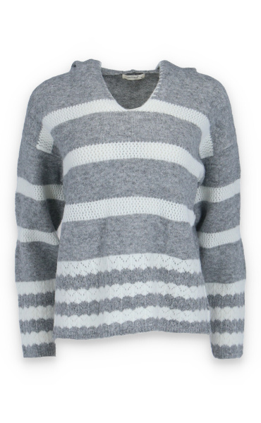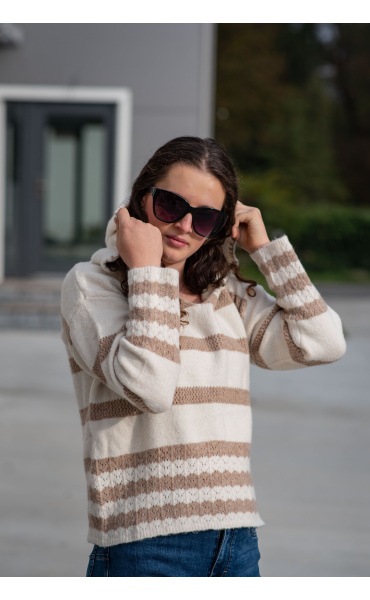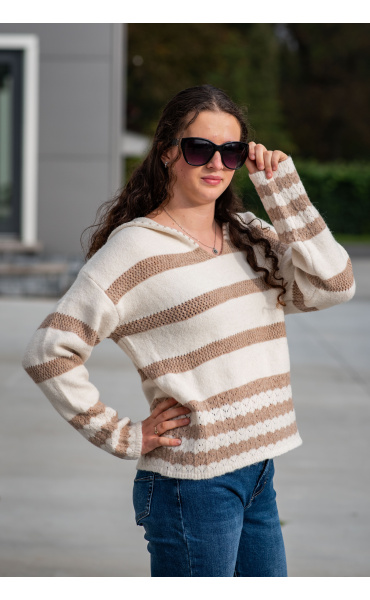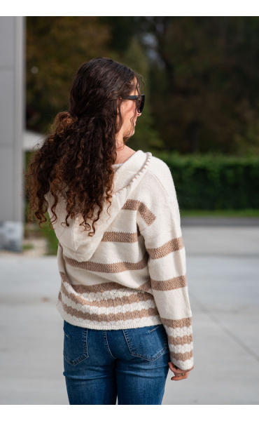 Módní pruhovaný svetřík s kapucí. Dovoz Itálie