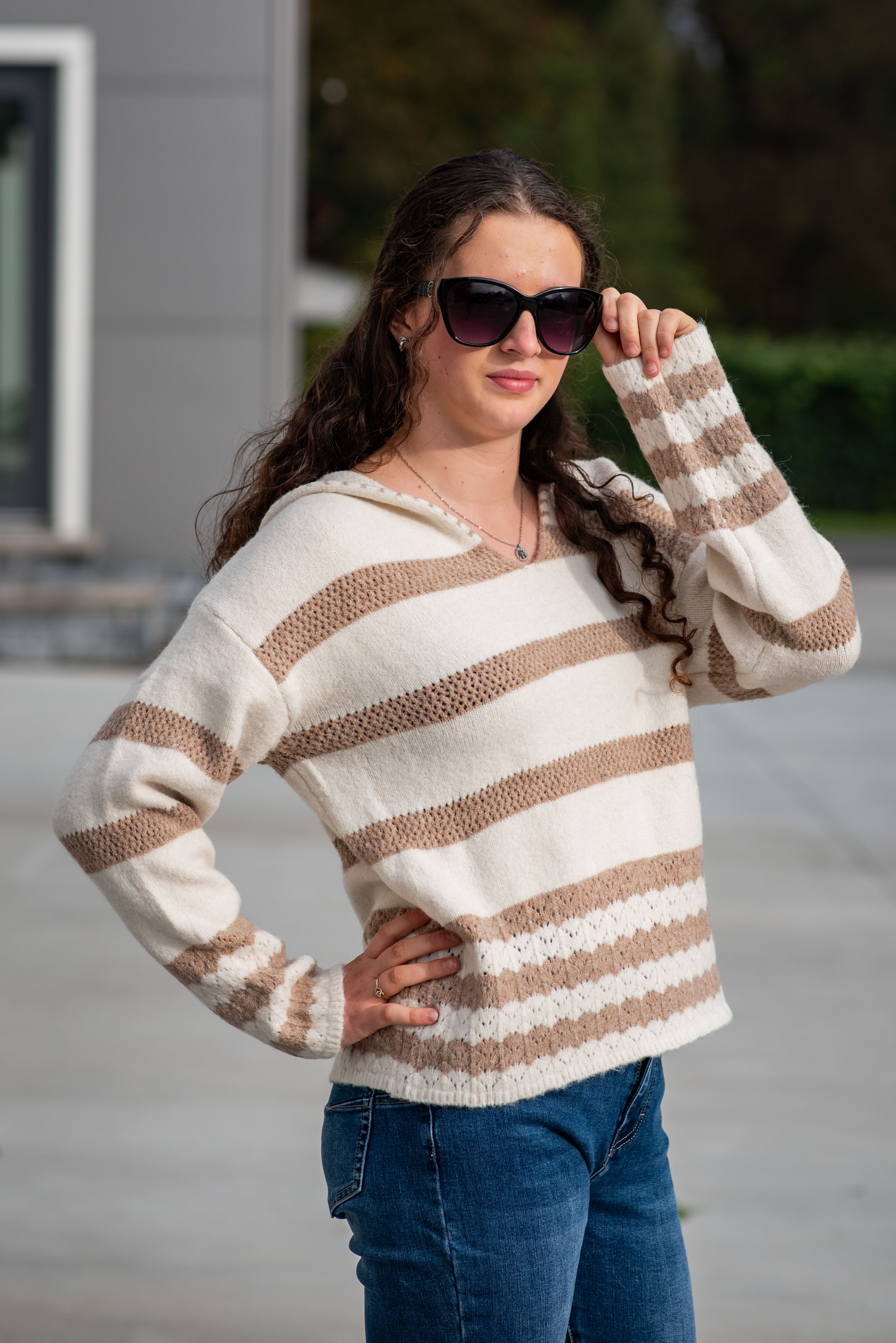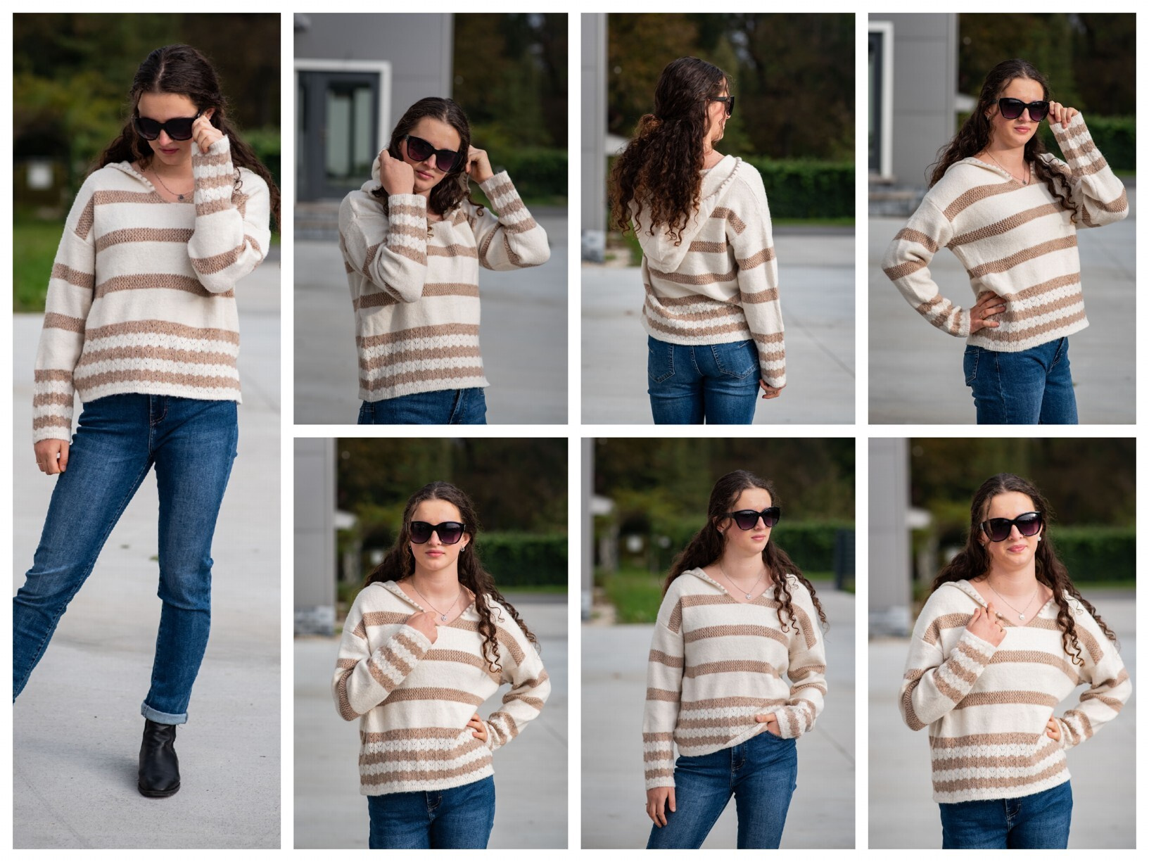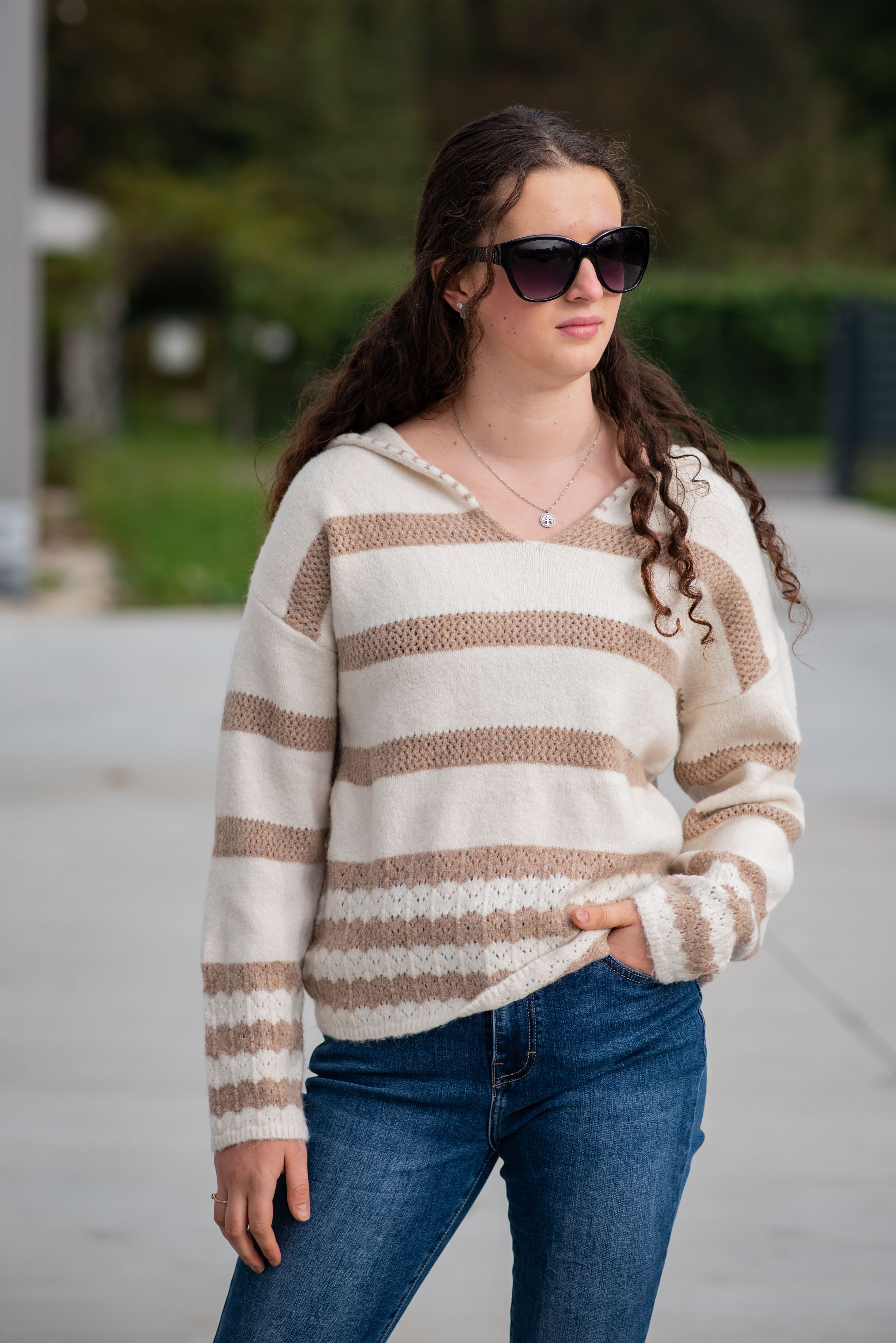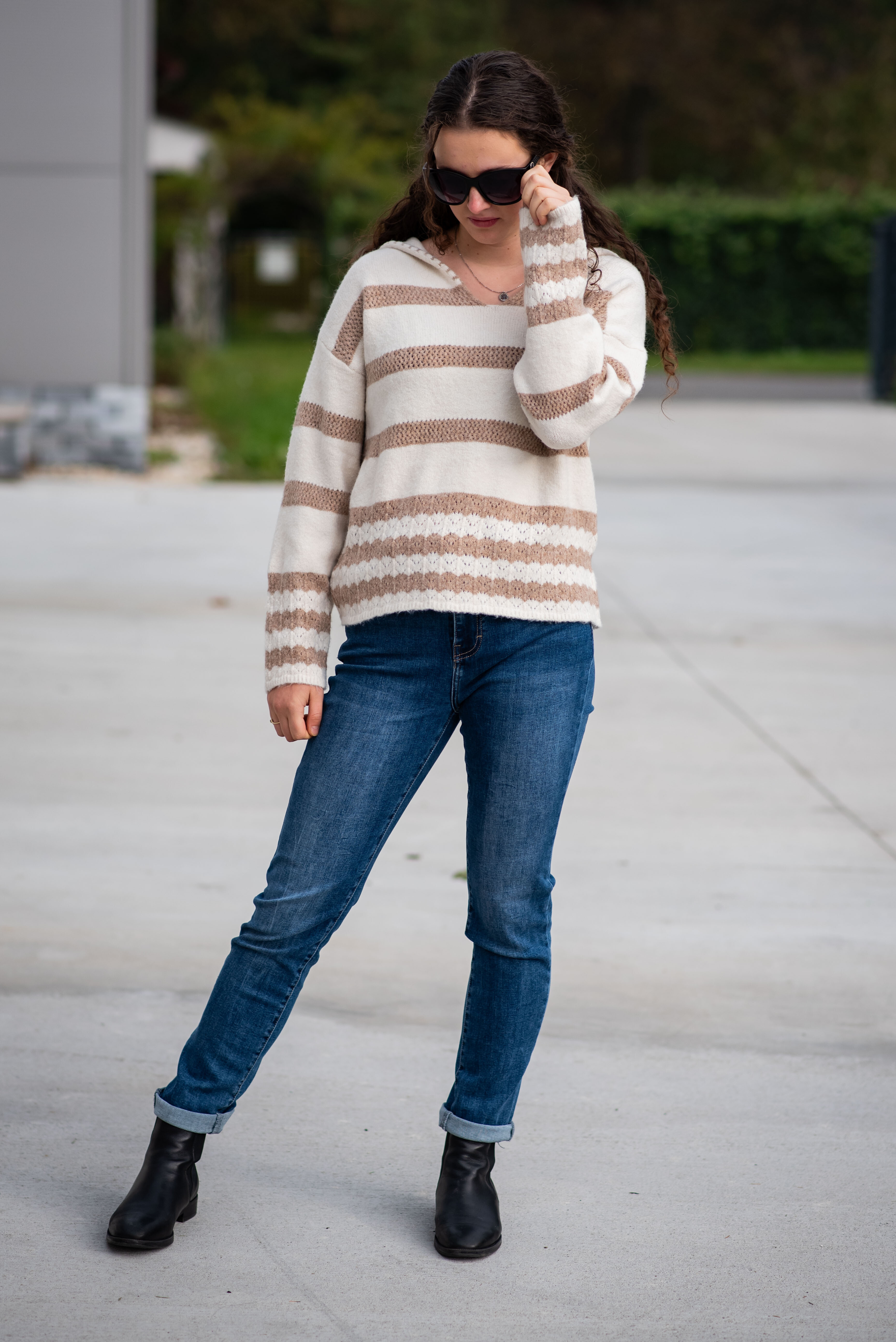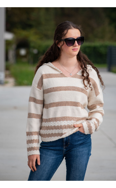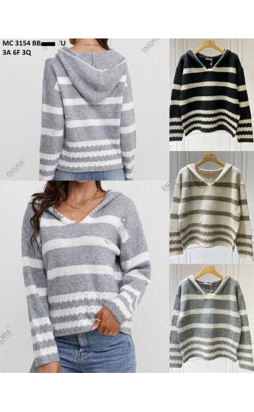 Módní pruhovaný svetřík s kapucí. Dovoz Itálie