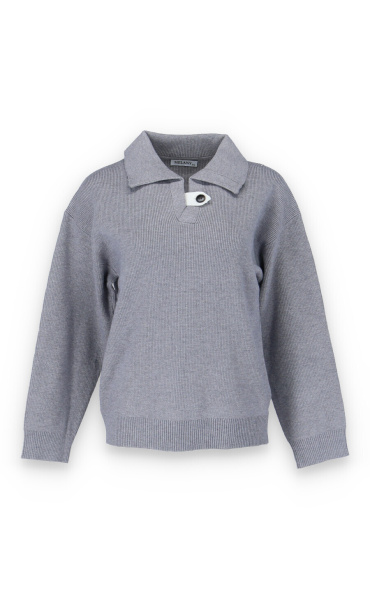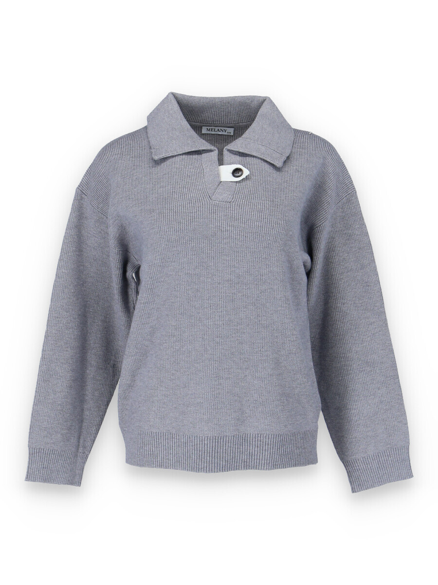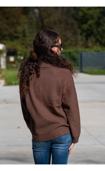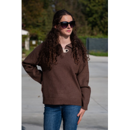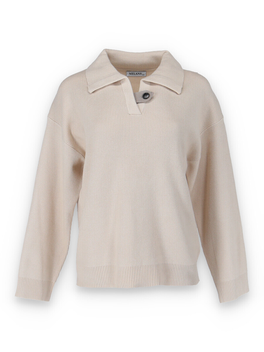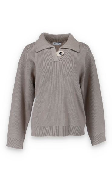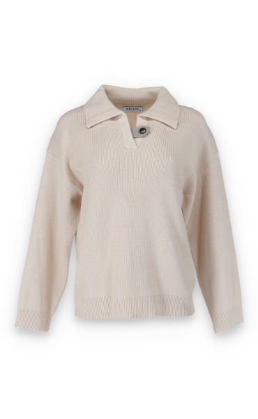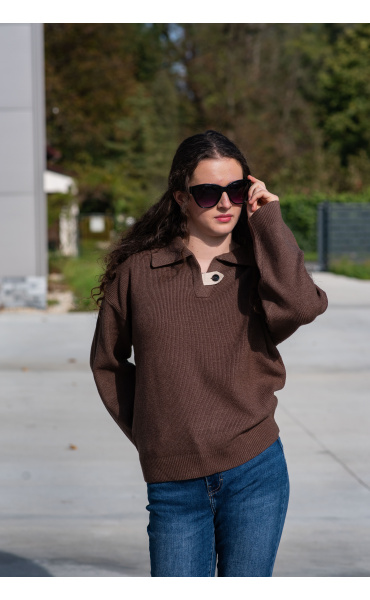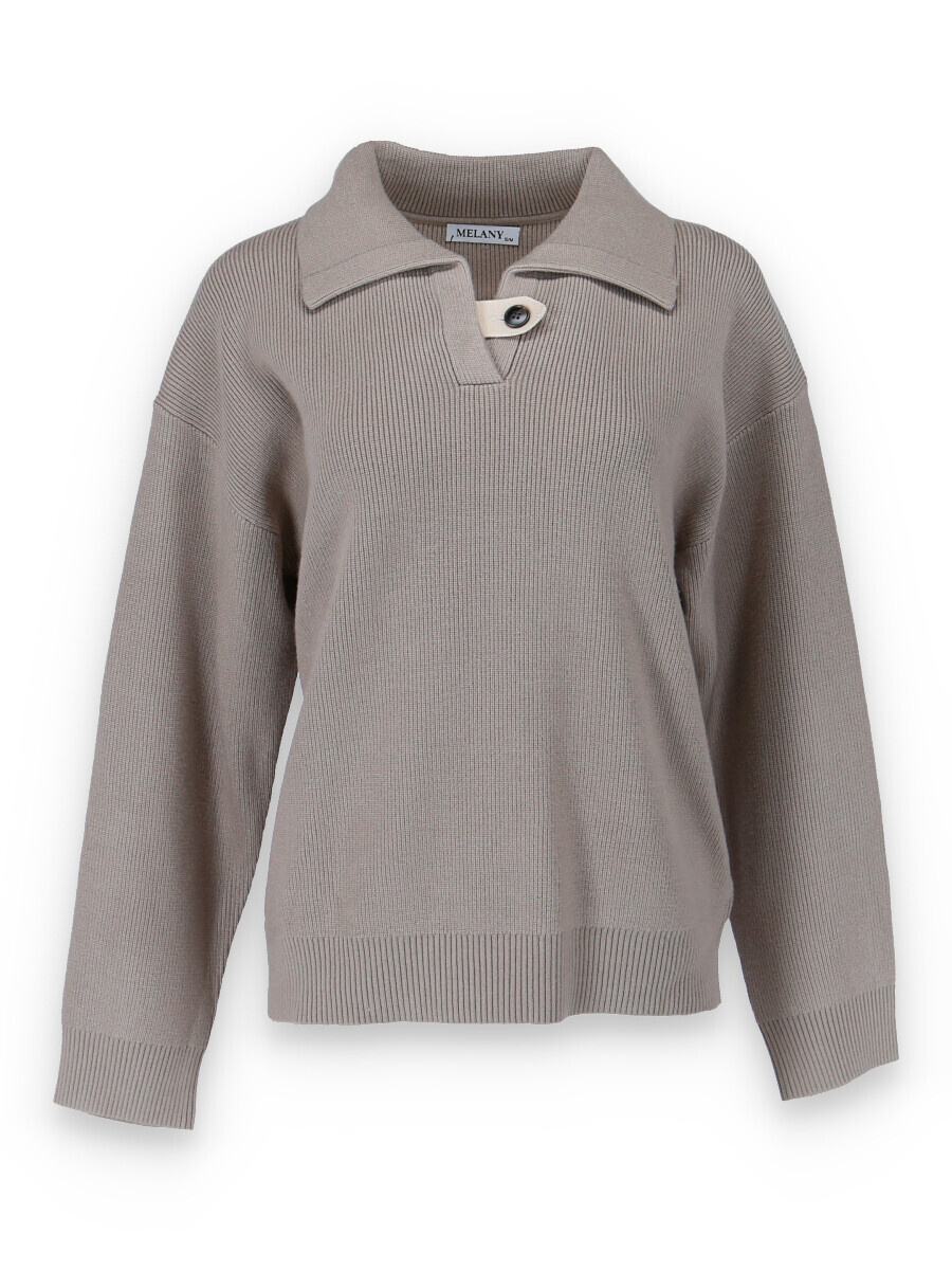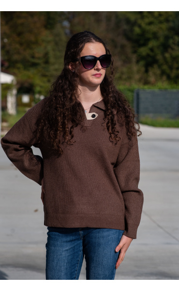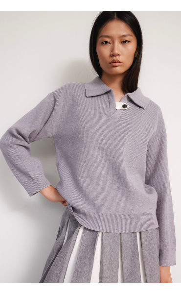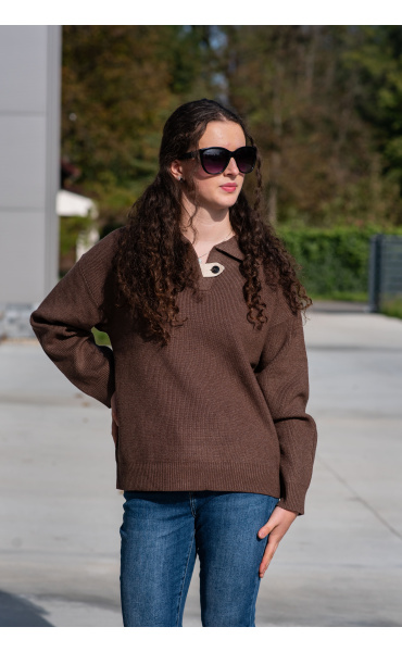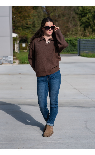 Módní svetřík s límečkem z hrubšího žebrovaného úpletu.