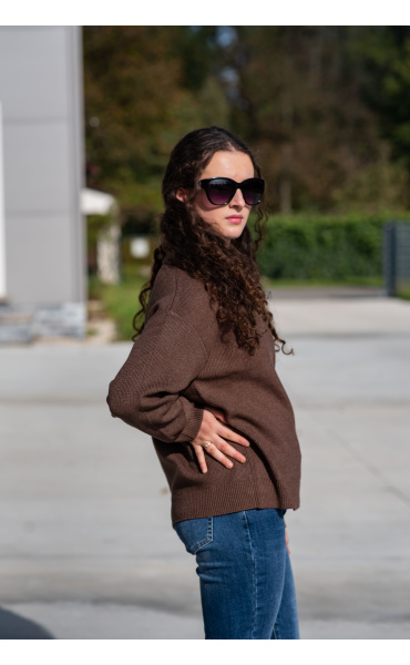 Svetr má dlouhý rukáv a výstřih do V, který je doplněn o stylové zapínání na knoflík.
