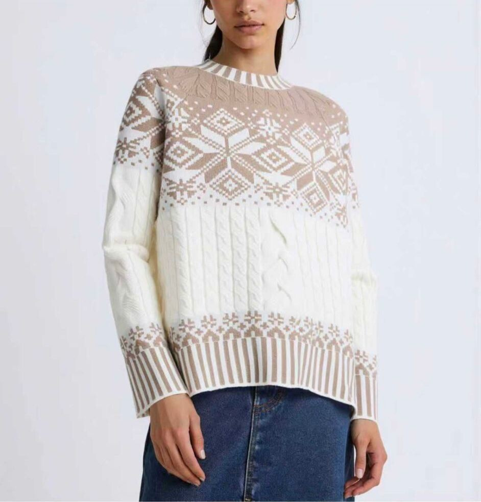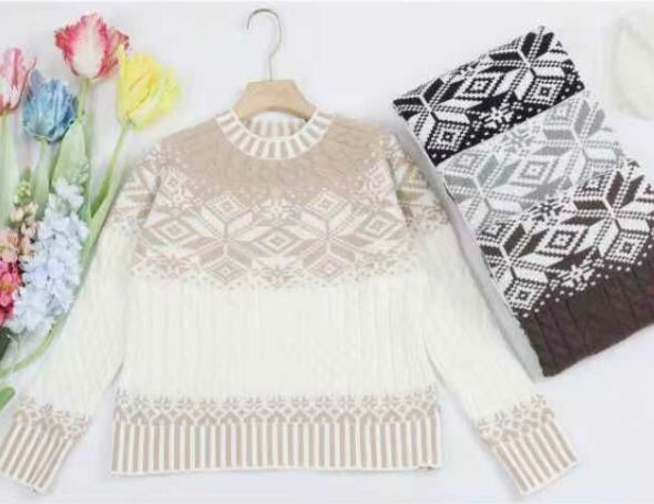 Trendy svetr se zimním norským vzorem. Svetr je z příjemného úpletového materiálu a má kulatý výstřih.