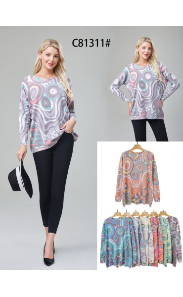 Dámský svetr s potiskem volnějšího střihu. Svetr má dlouhý rukáv a je z velmi příjemného úpletu. Dovoz Itálie