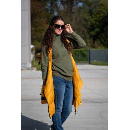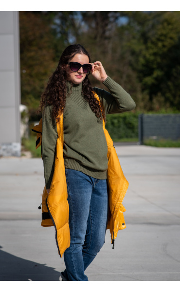 Módní svetřík se stojáčkem z velice příjemného materiálu, ideální do chladnějšího počasí. Dovoz Itálie
