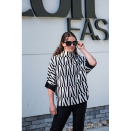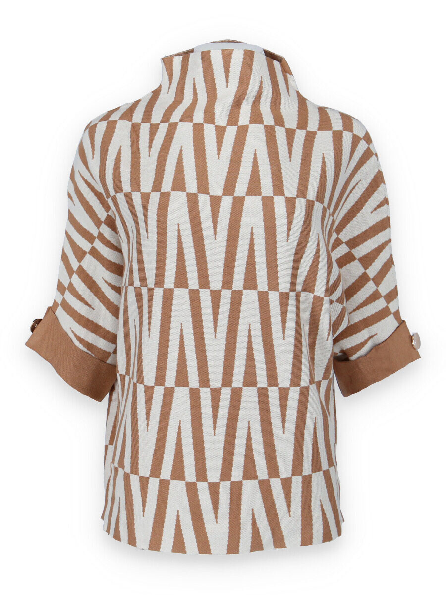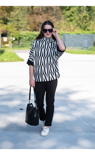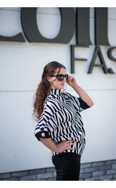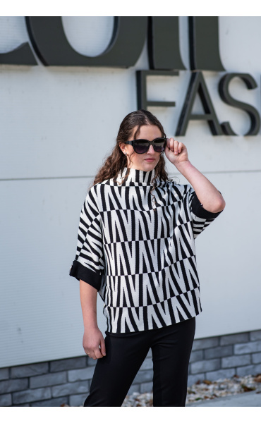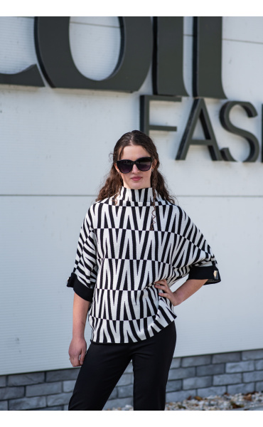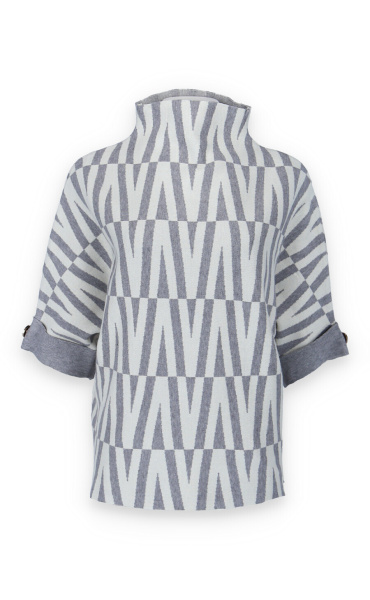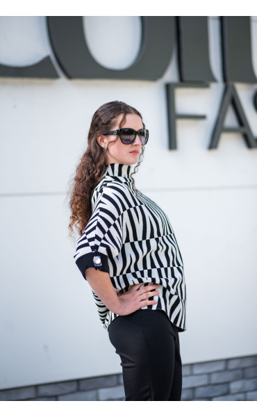 Svetr je se stojáčkem, je volnějšího oversize stylu a má 3/4 rukáv.