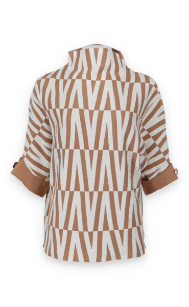 Svetr z pevného úpletou se vzorem.