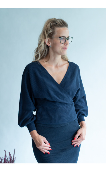 Svetřík s překřížením na prsou ,žebrovaná pletenina , dovoz Itálie