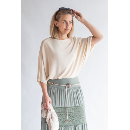 Módní volnočasový svetřík volnějšího netopýřího střihu