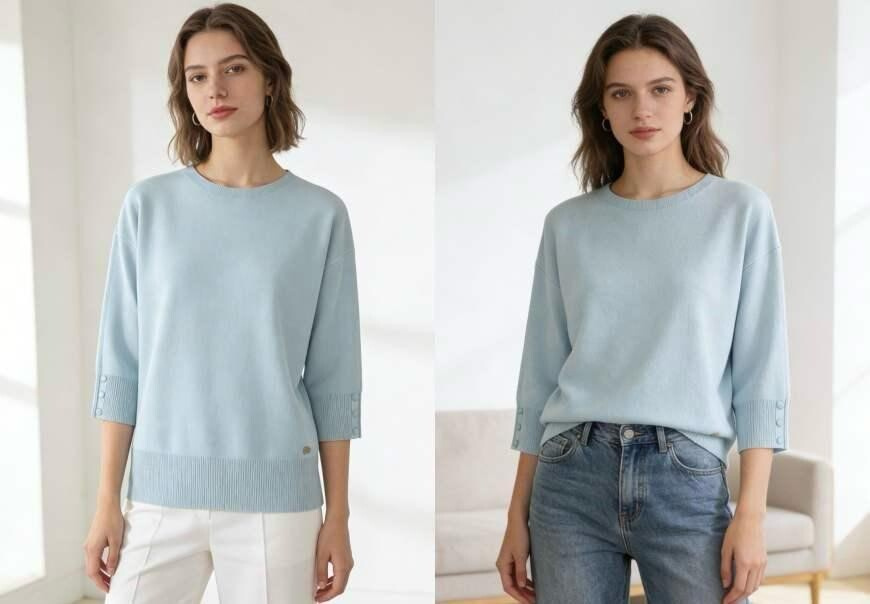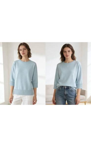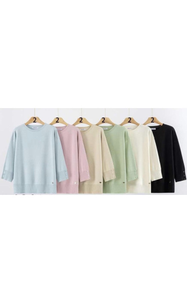 Dámská elegantní halenka/svetřík s 3/4 rukávem a ozdobným lemem, na rukávech zakončeno knoflíčky.