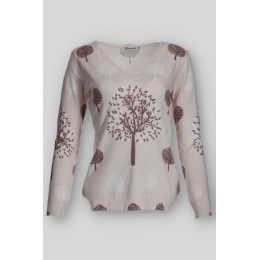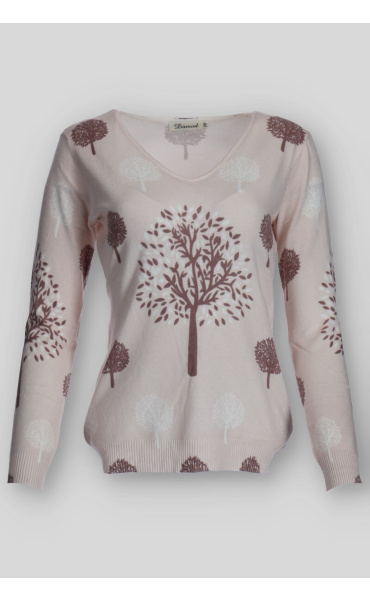Módní úpletový svetřík s potiskem s výstřihem do V.