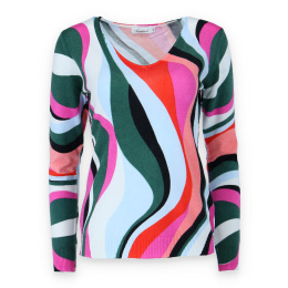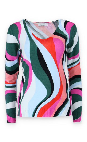 Módní úpletový svetřík s potiskem, véčkový výstřih.