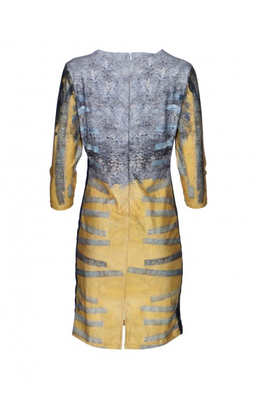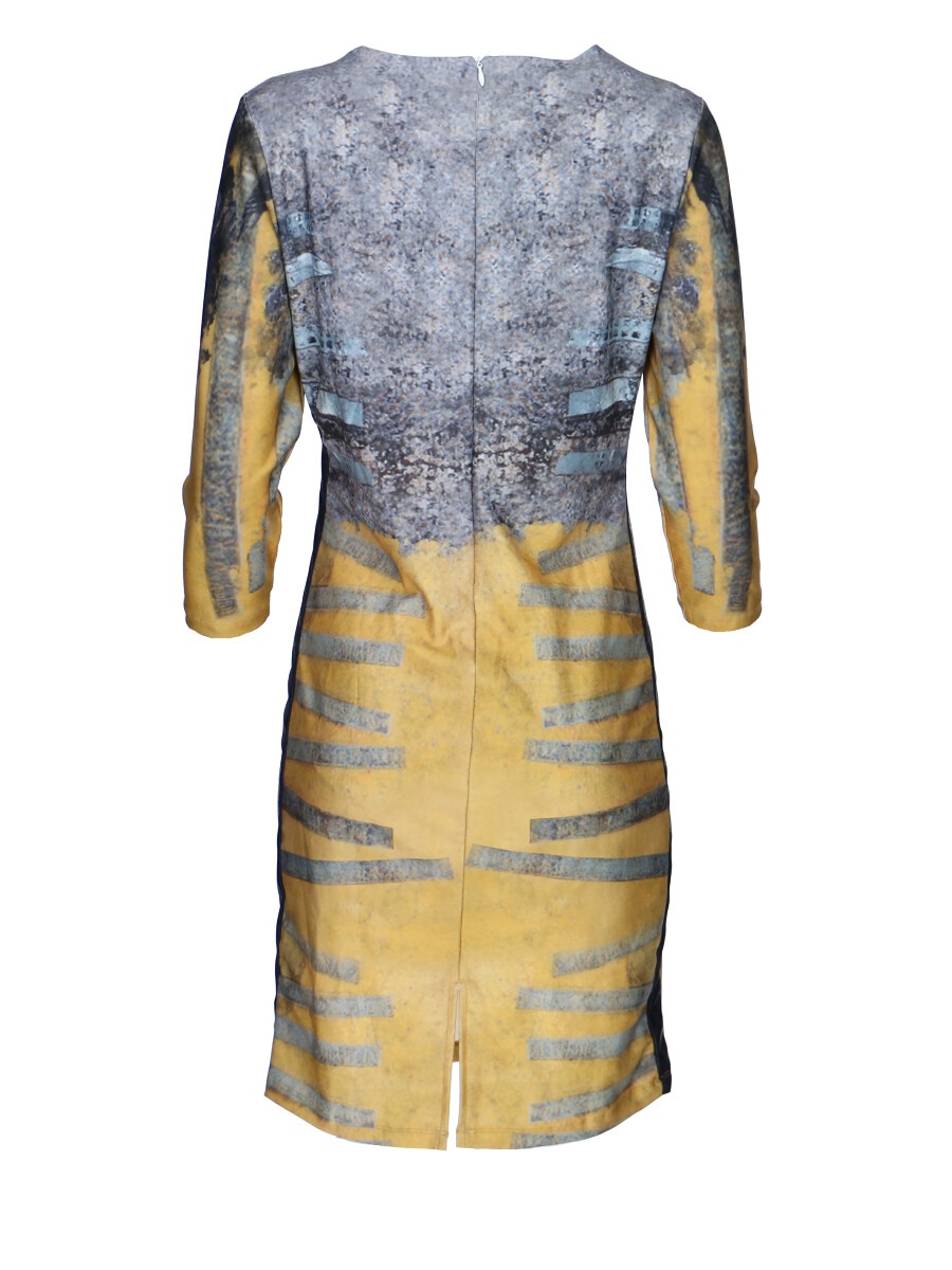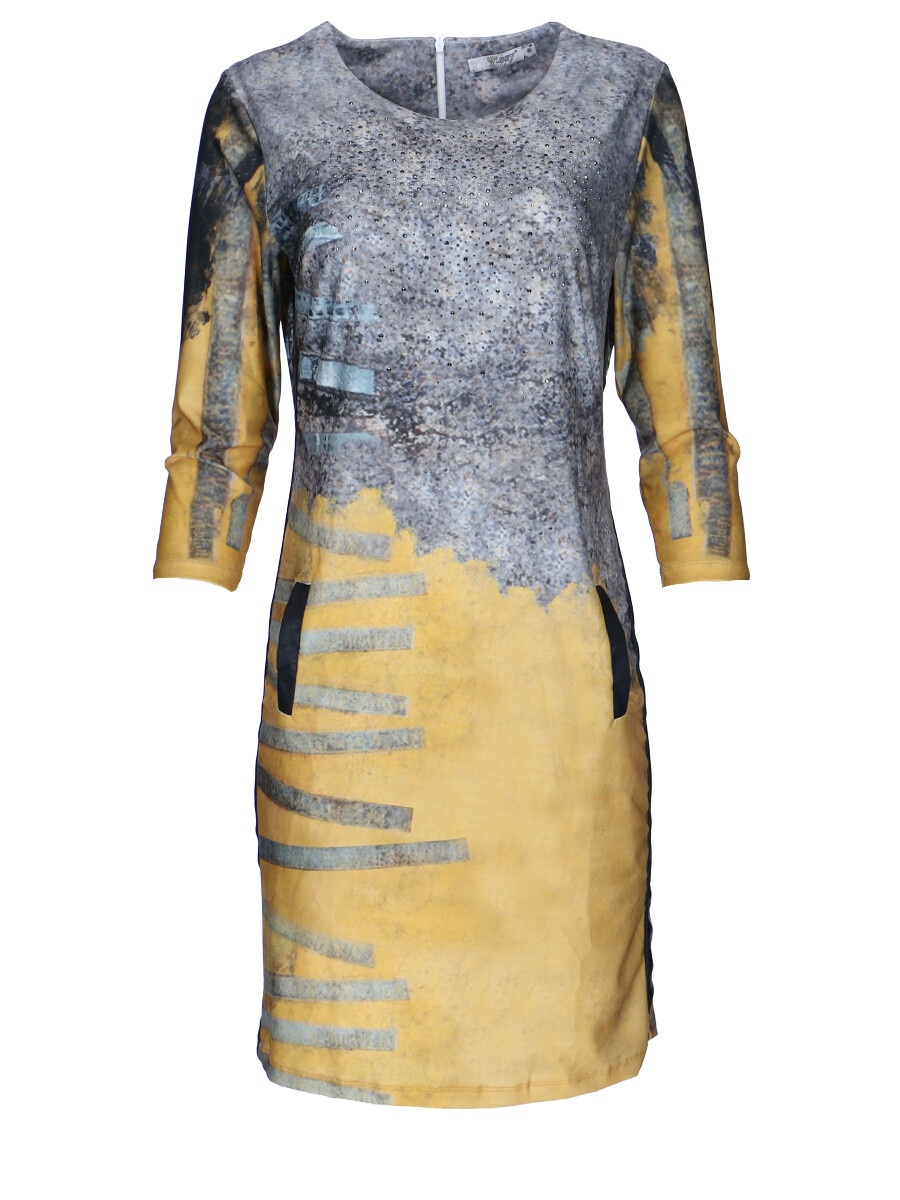 Módní vzorované krátké dámské šaty s 3/4 rukávem. Vyrobeno v Itálii