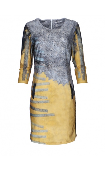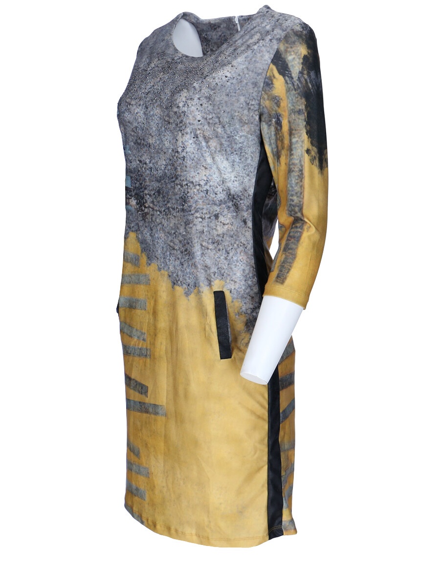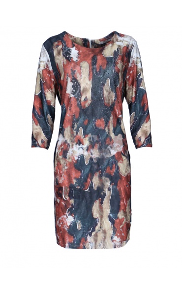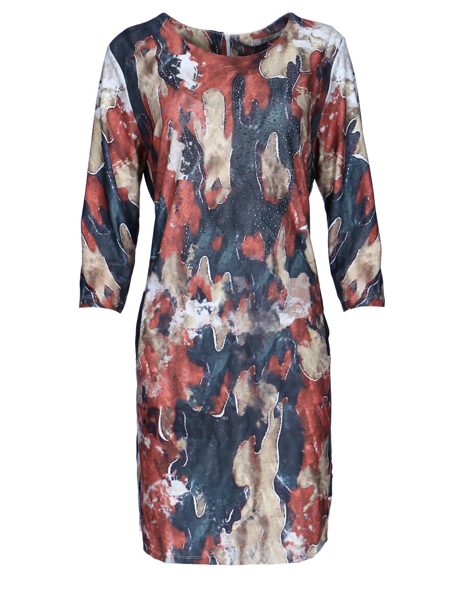 Módní batikované krátké dámské šaty s 3/4 rukávem. Vyrobeno v Itálii