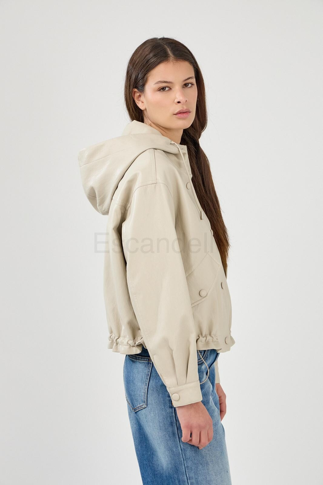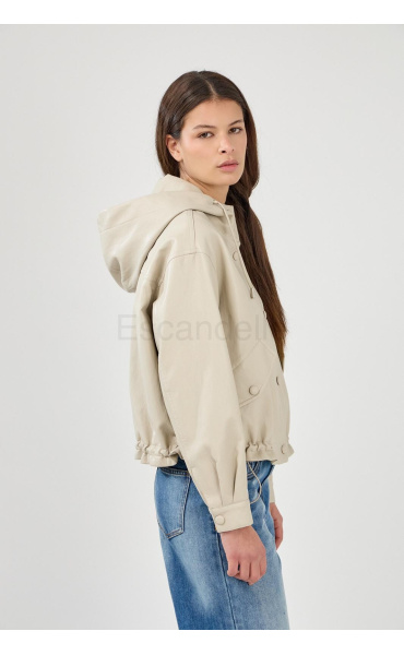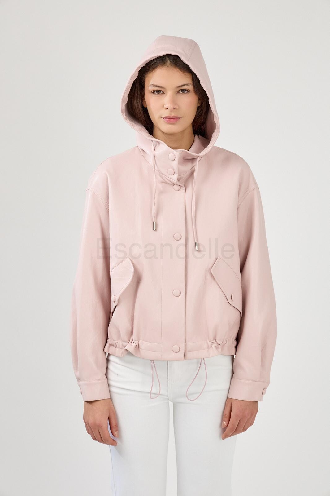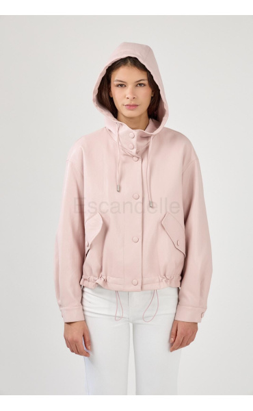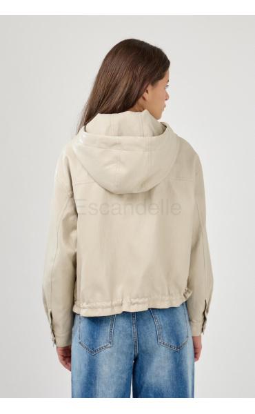 Trendy koženková bunda s kapucí. Bunda má zapínání na zip, po stranách našité kapsy s klopami a regulaci v pase na stažení. Módní kousek do Vašeho šatníku.