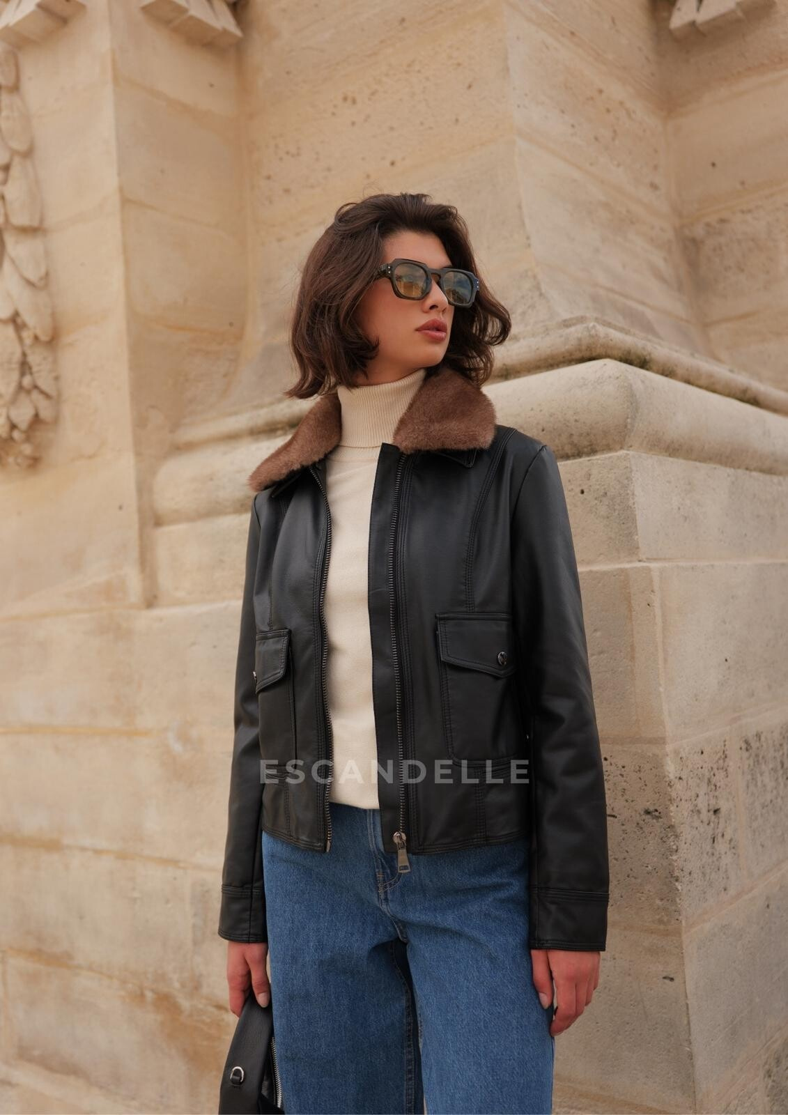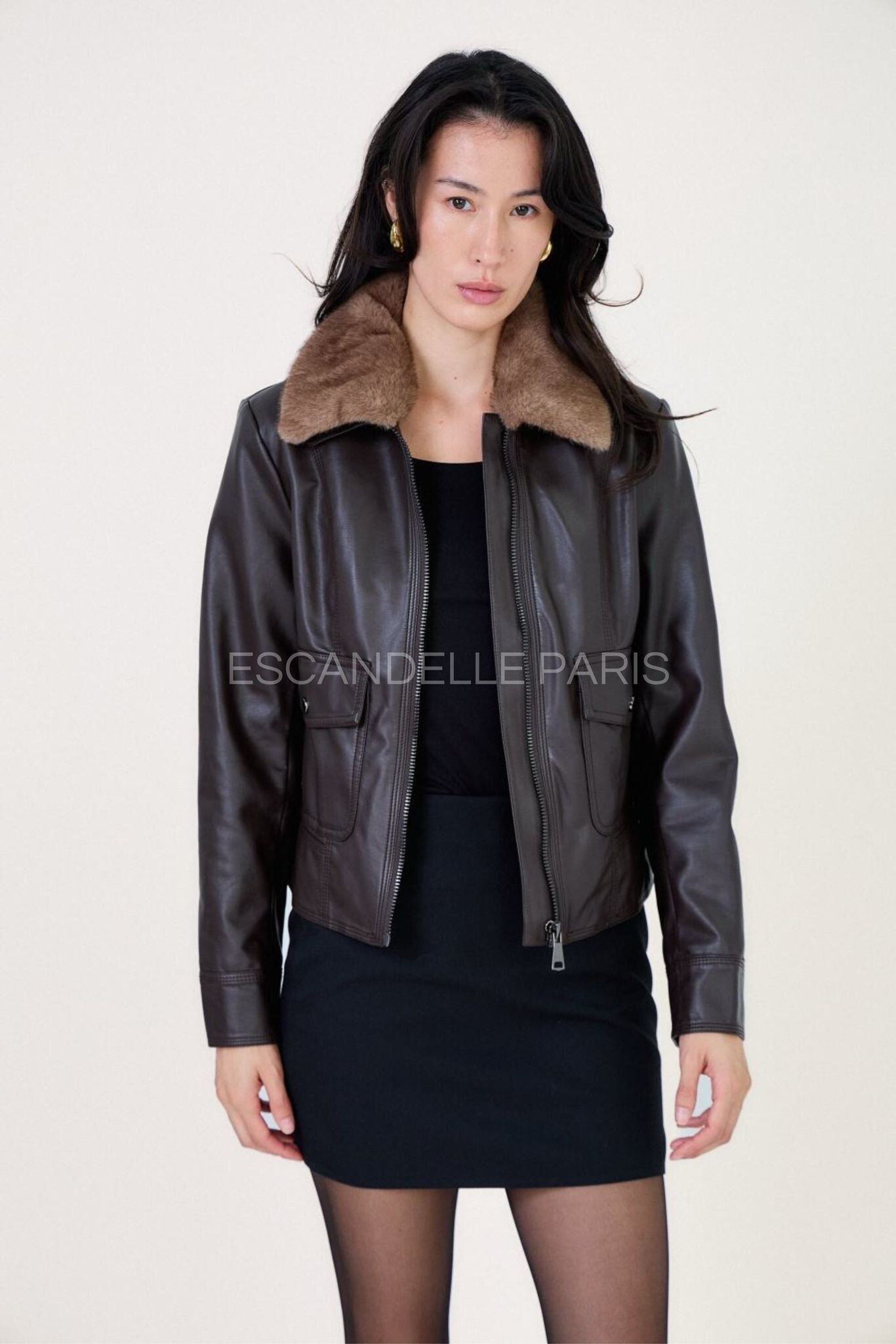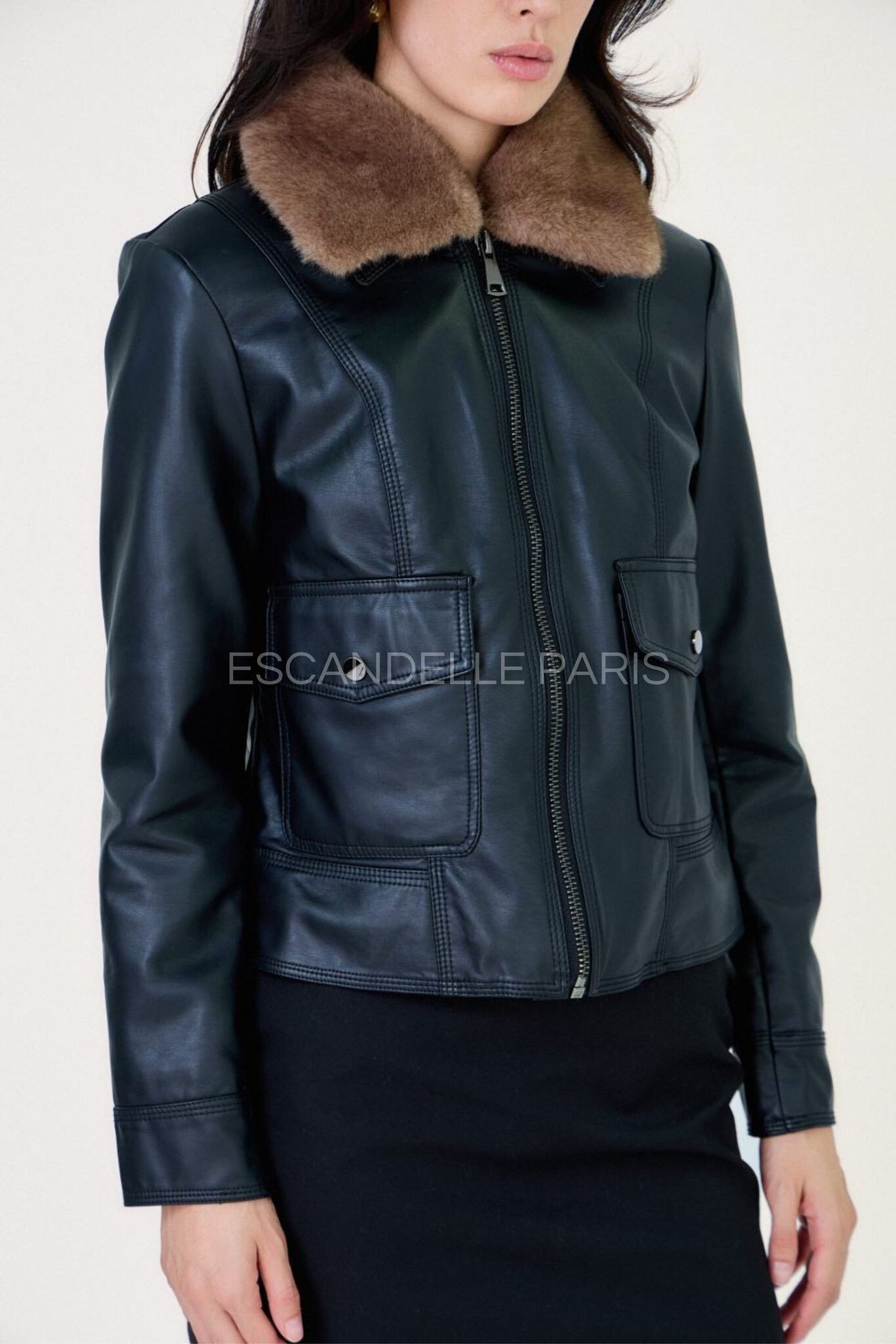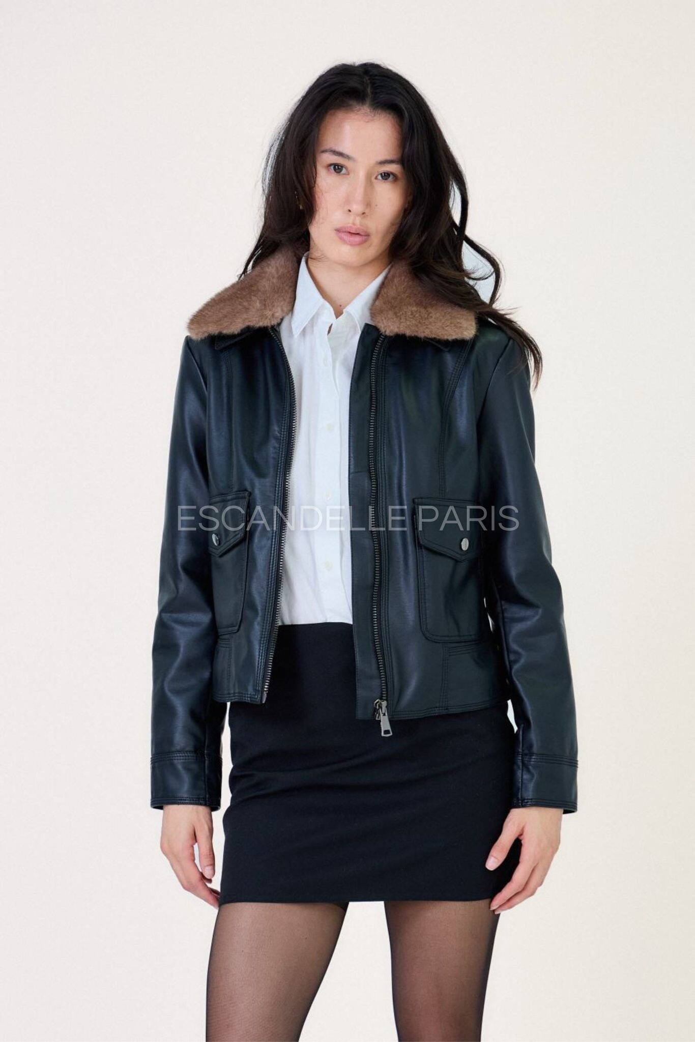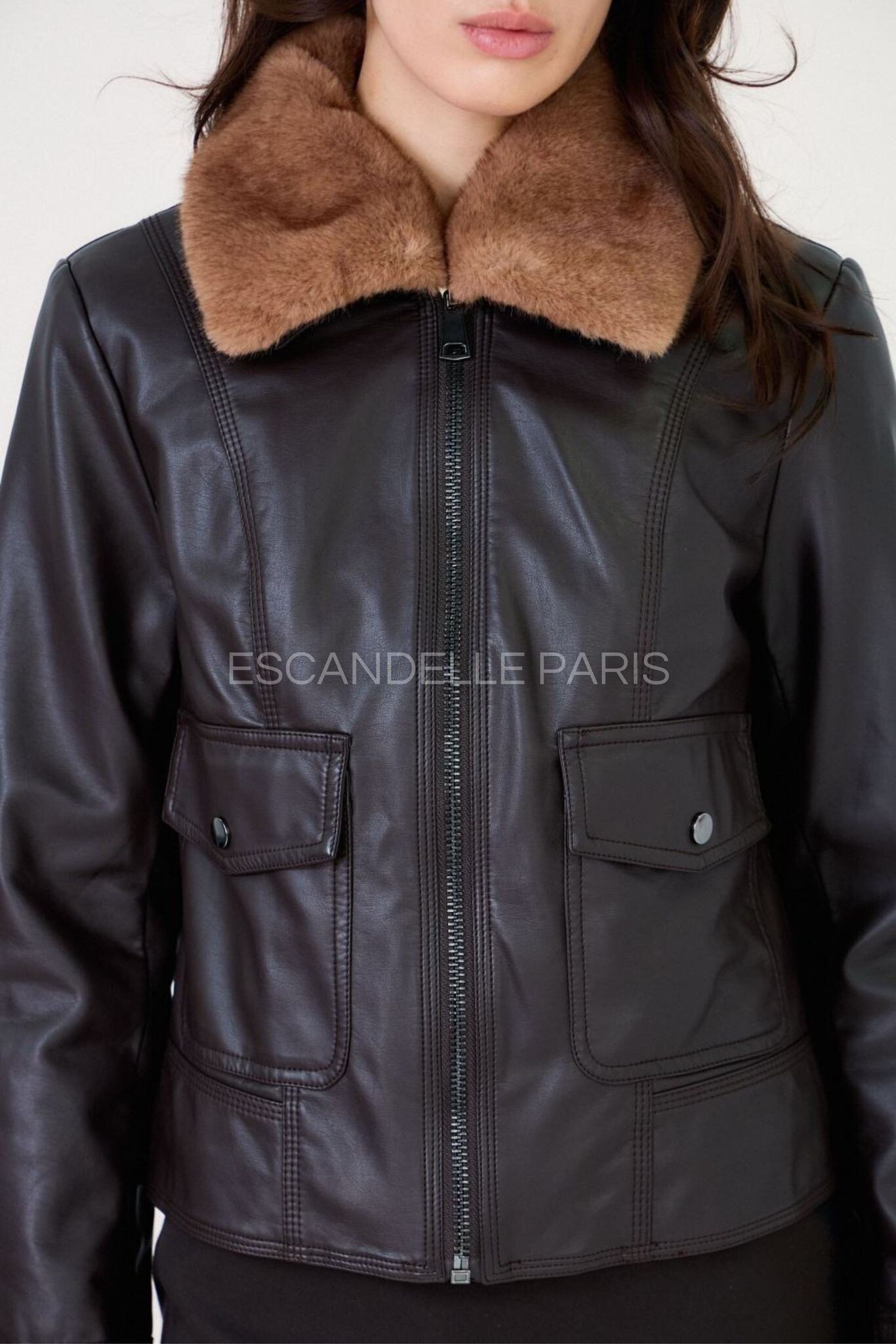 Trendy koženková bunda s límcem Escandelle Paris 5147