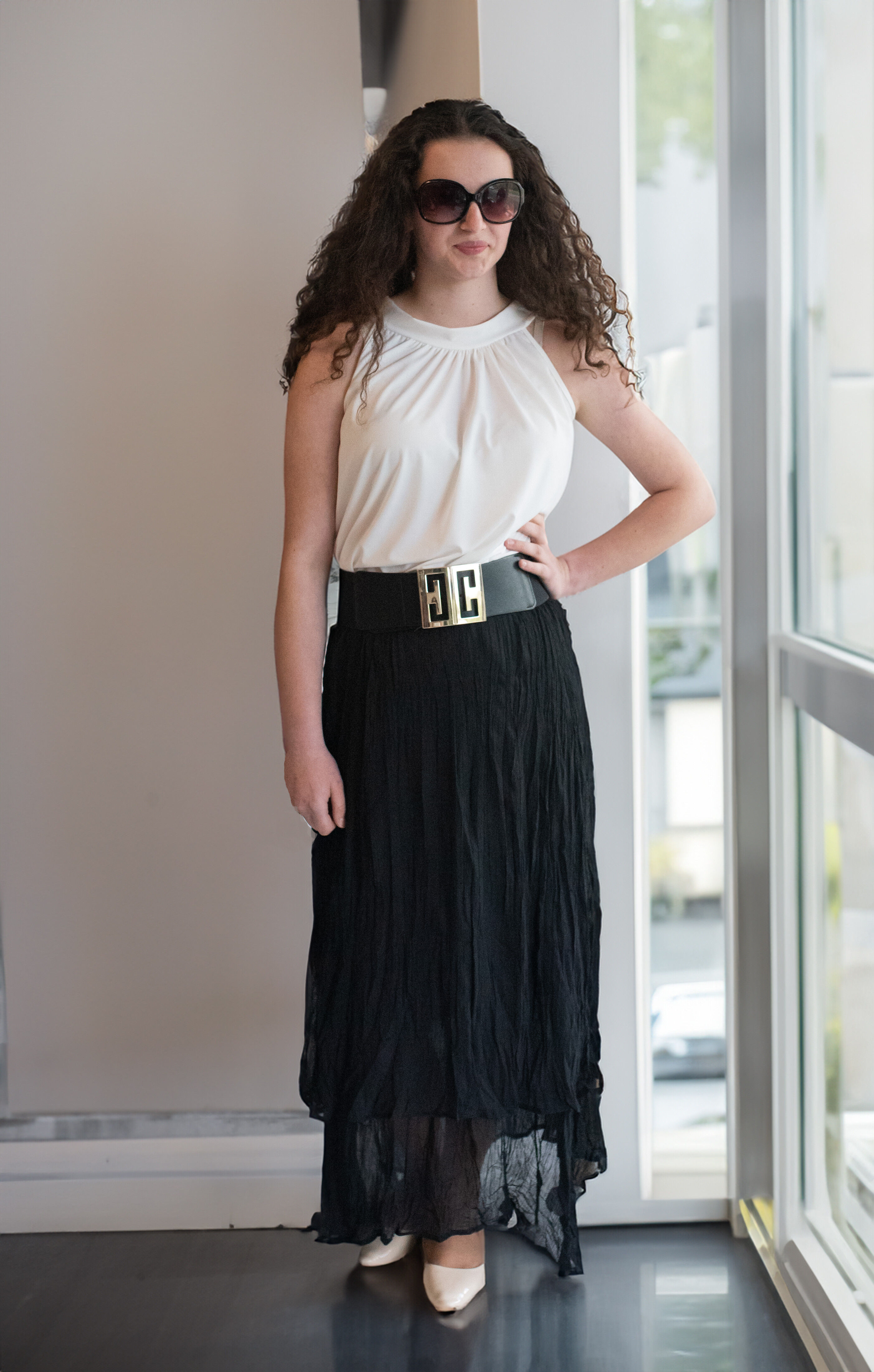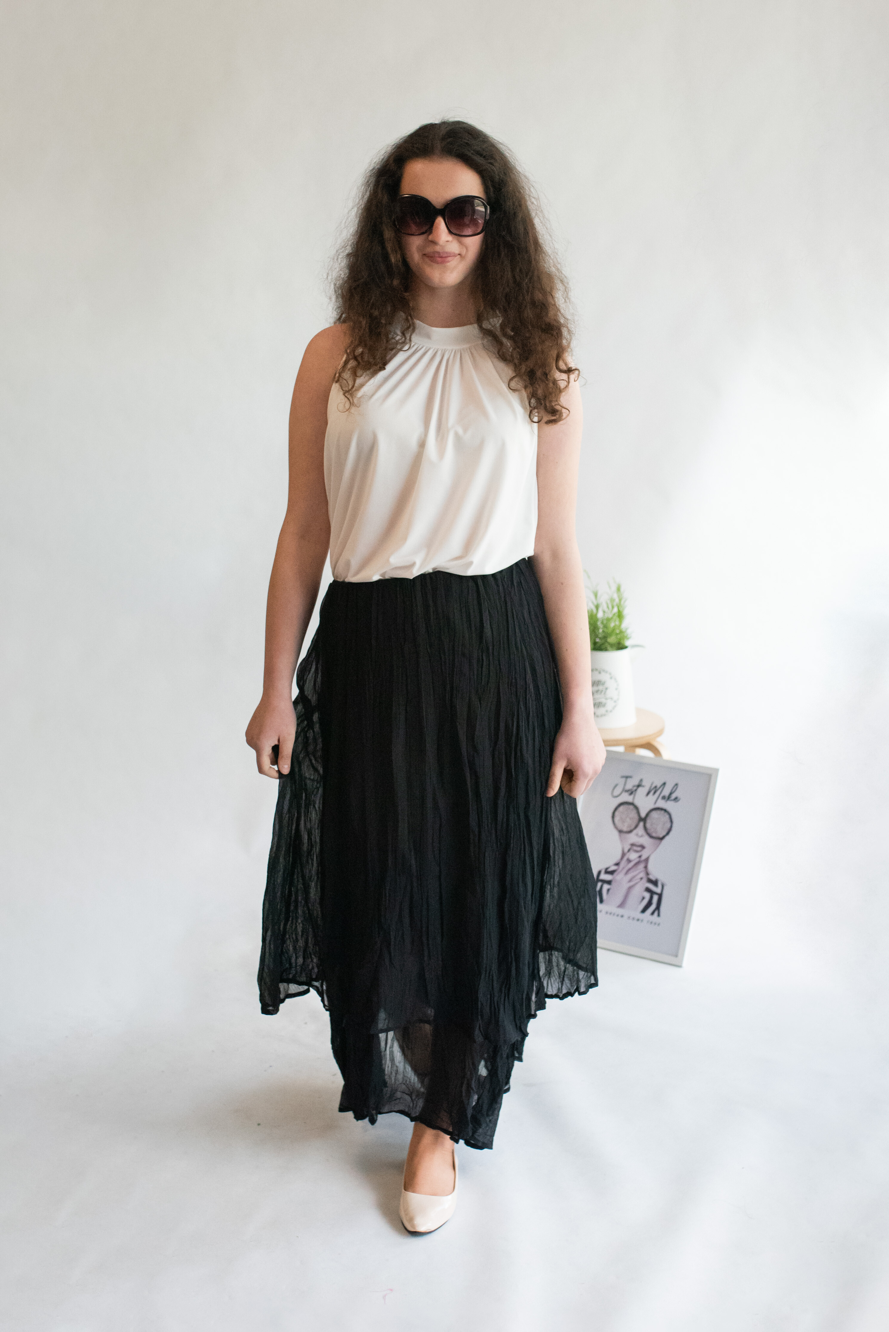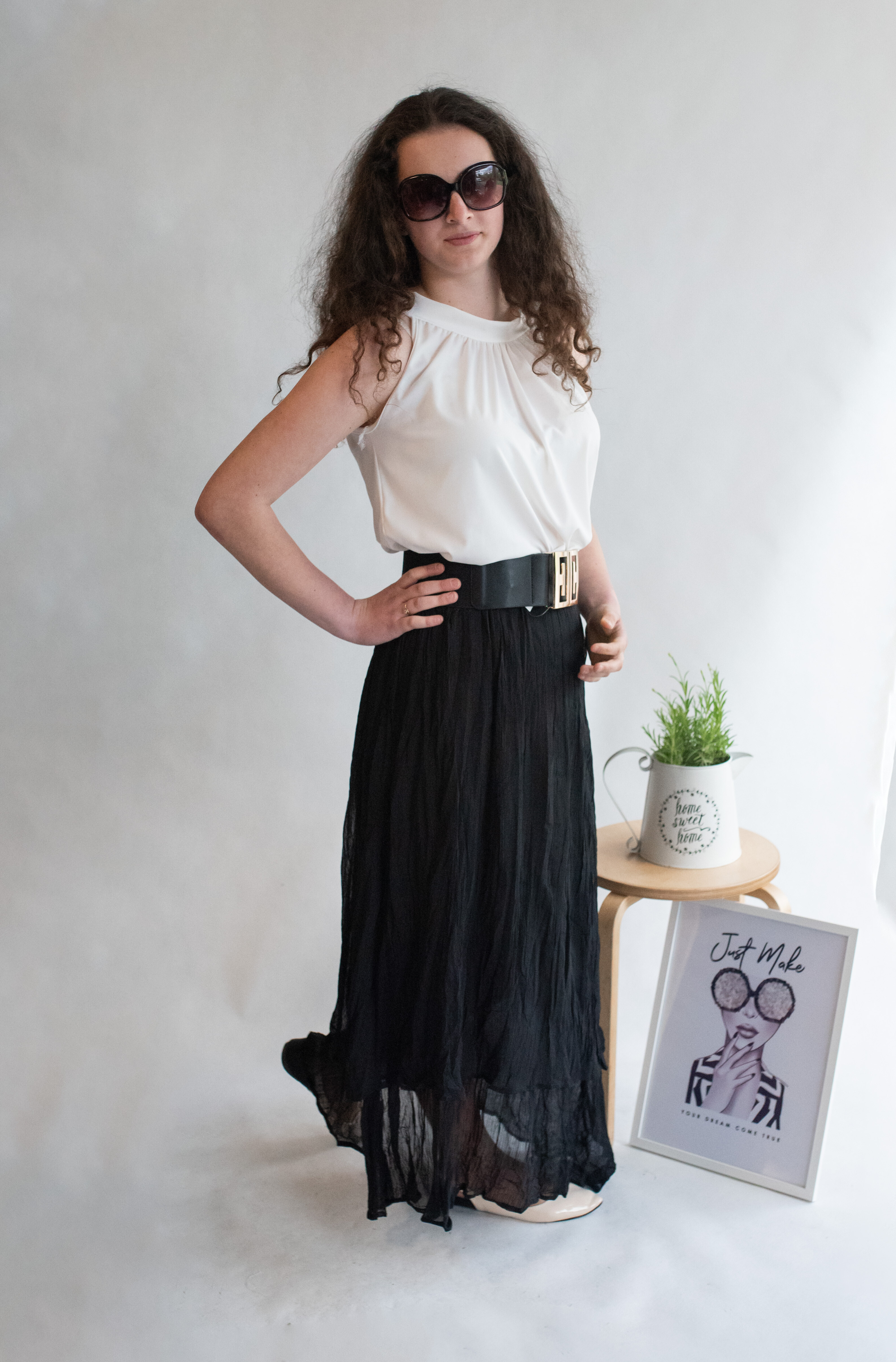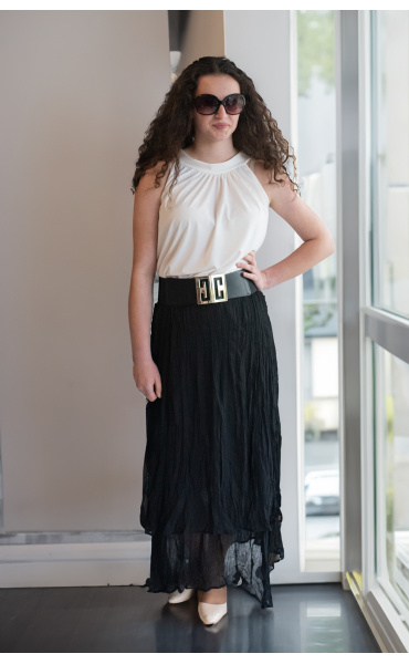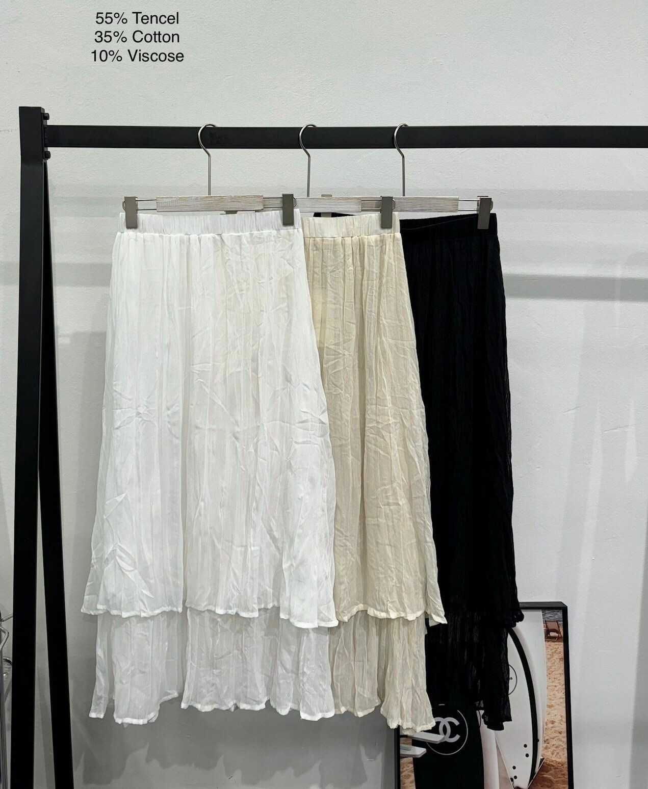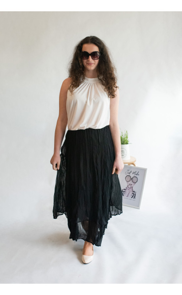 Stylová dámská sukně USee. Sukně je vyrobena z mačkané látky, v pase guma , skládané volány.