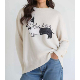 Trendy svetr s potiskem jezevčíka s drobnými kamínky.