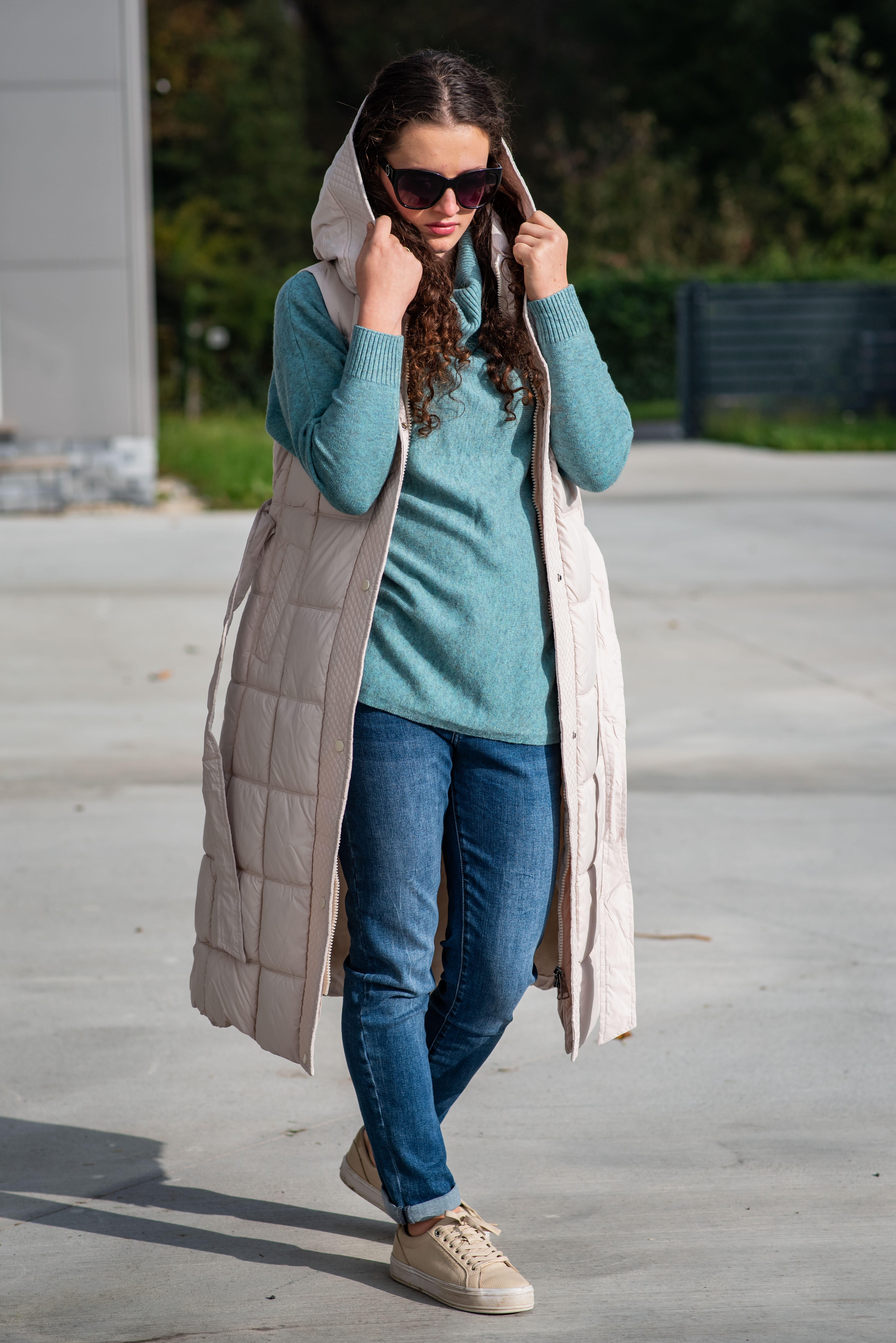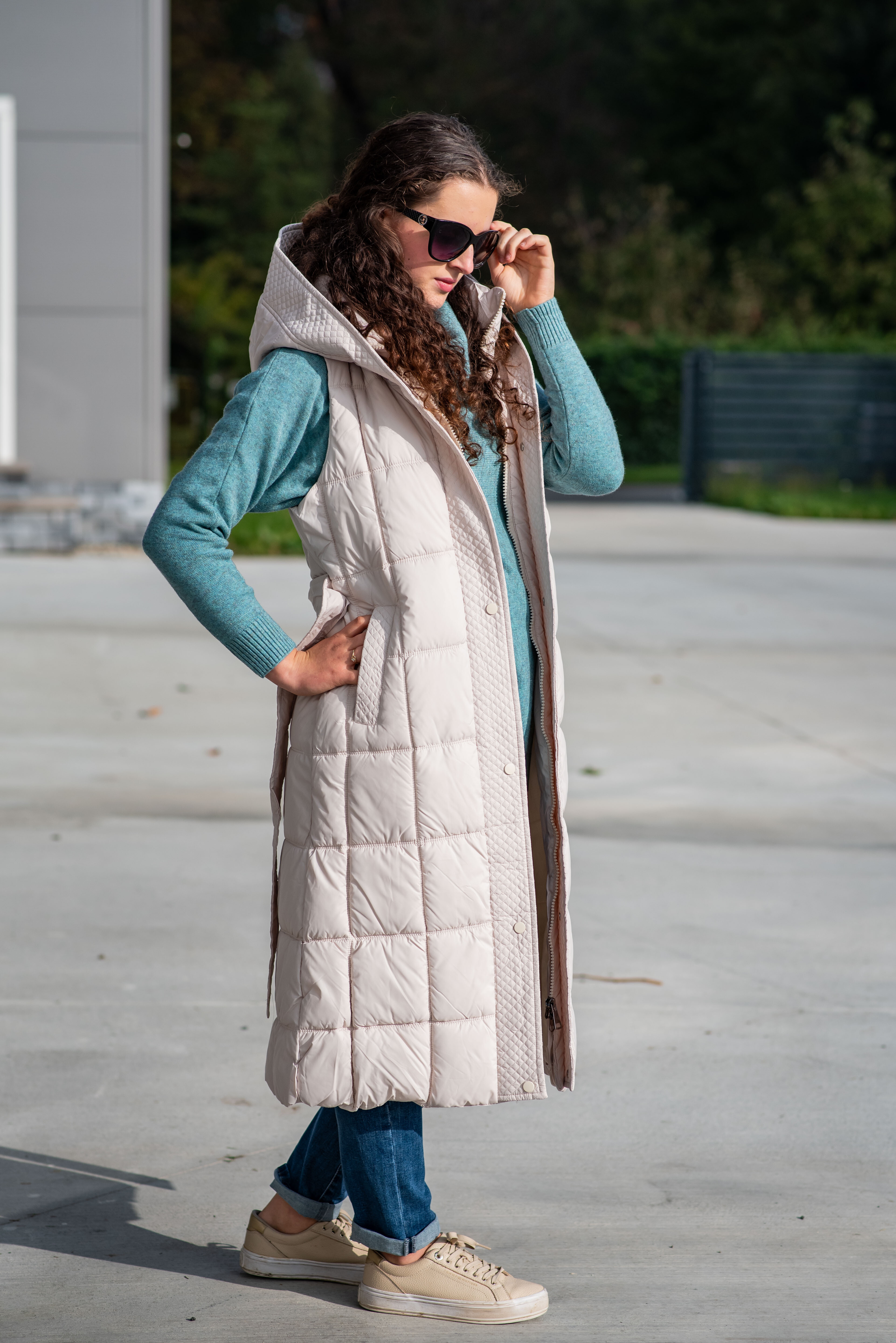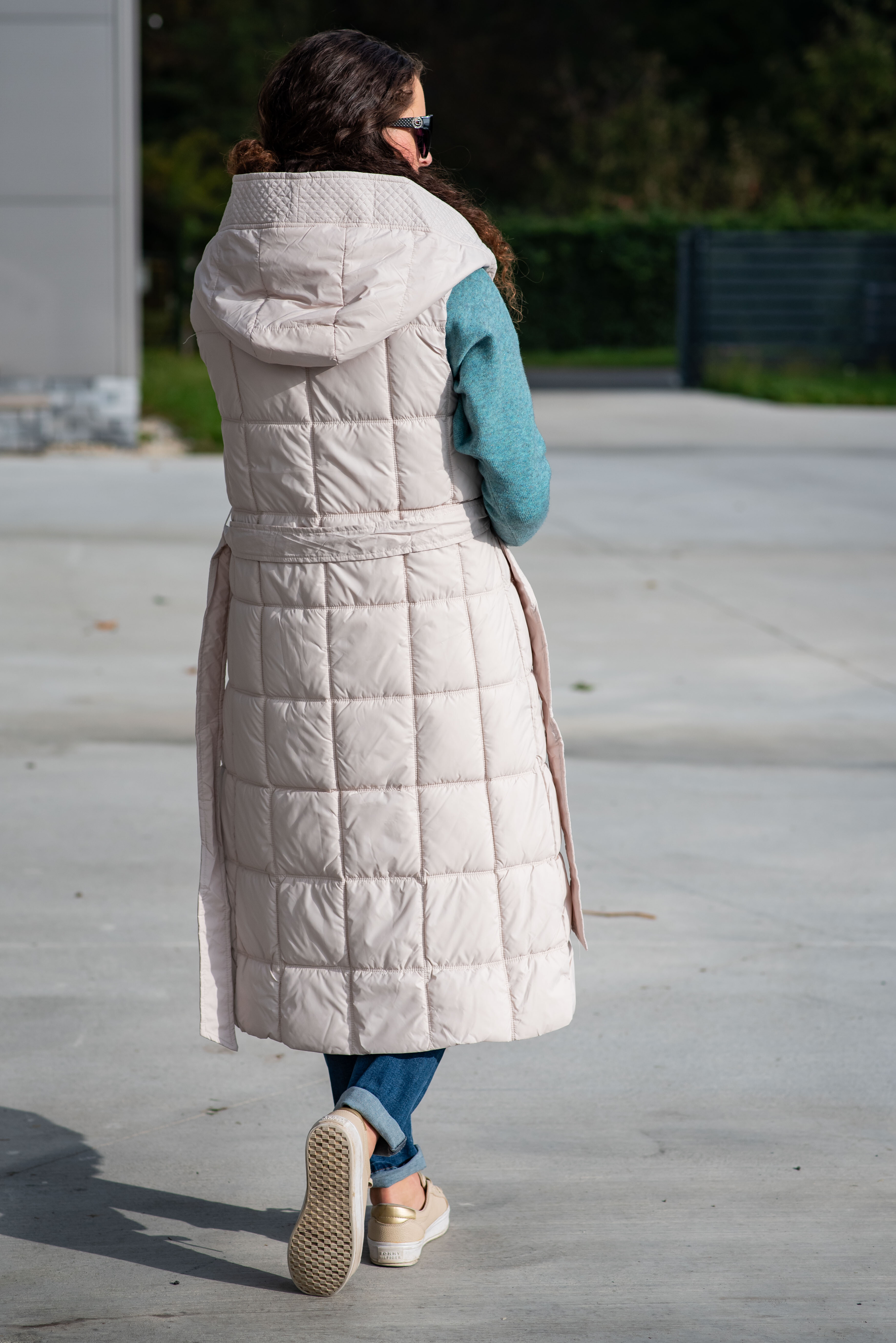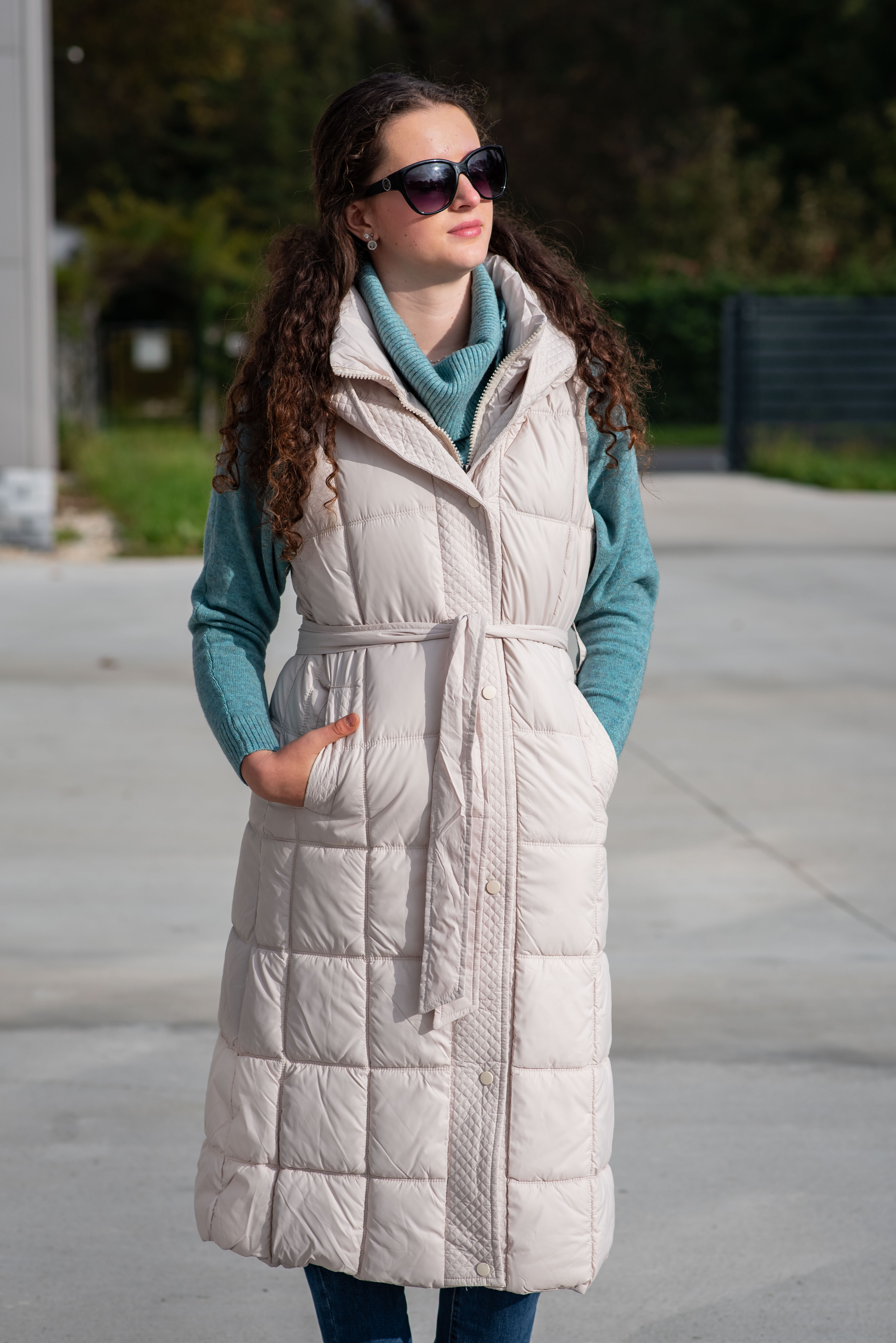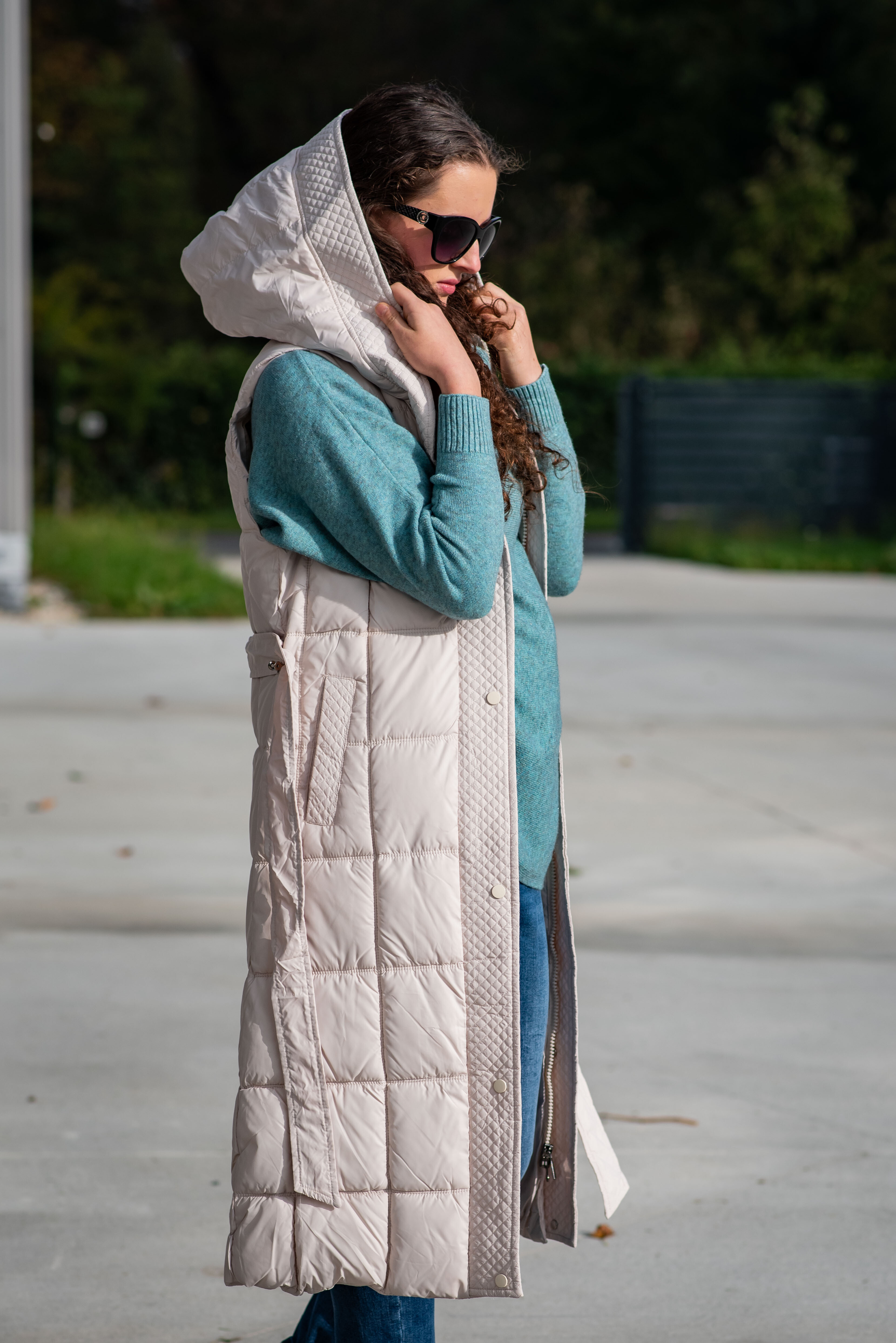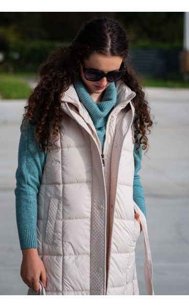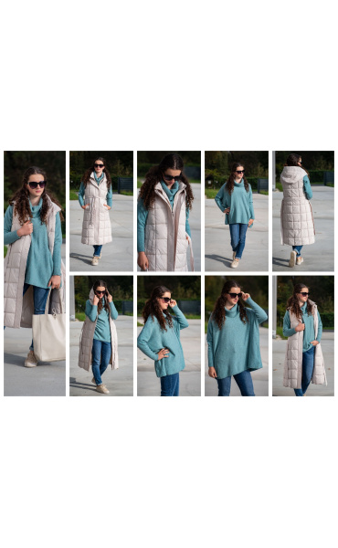 Trendy vesta prošívaná s kapucí. Dovoz Itálie