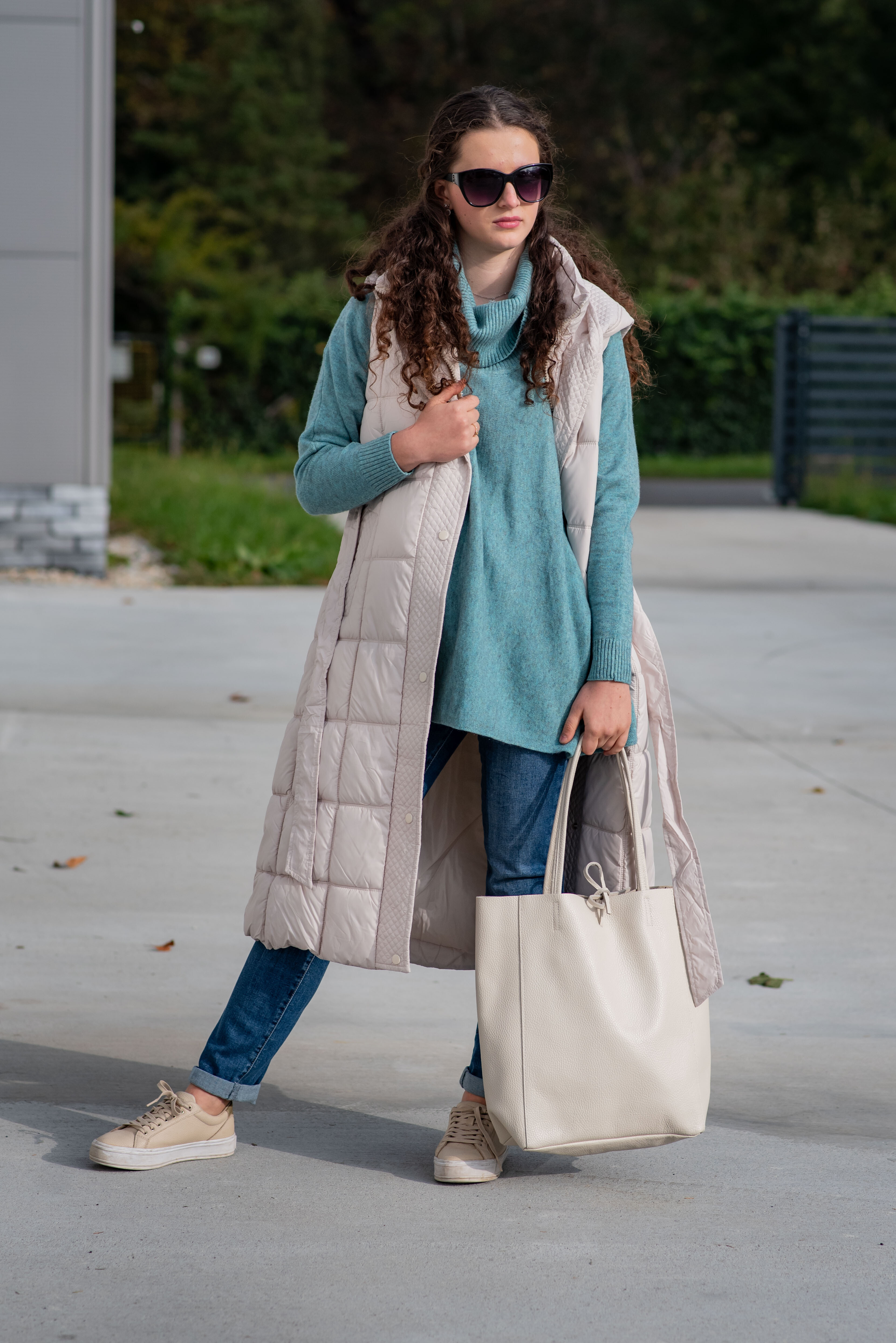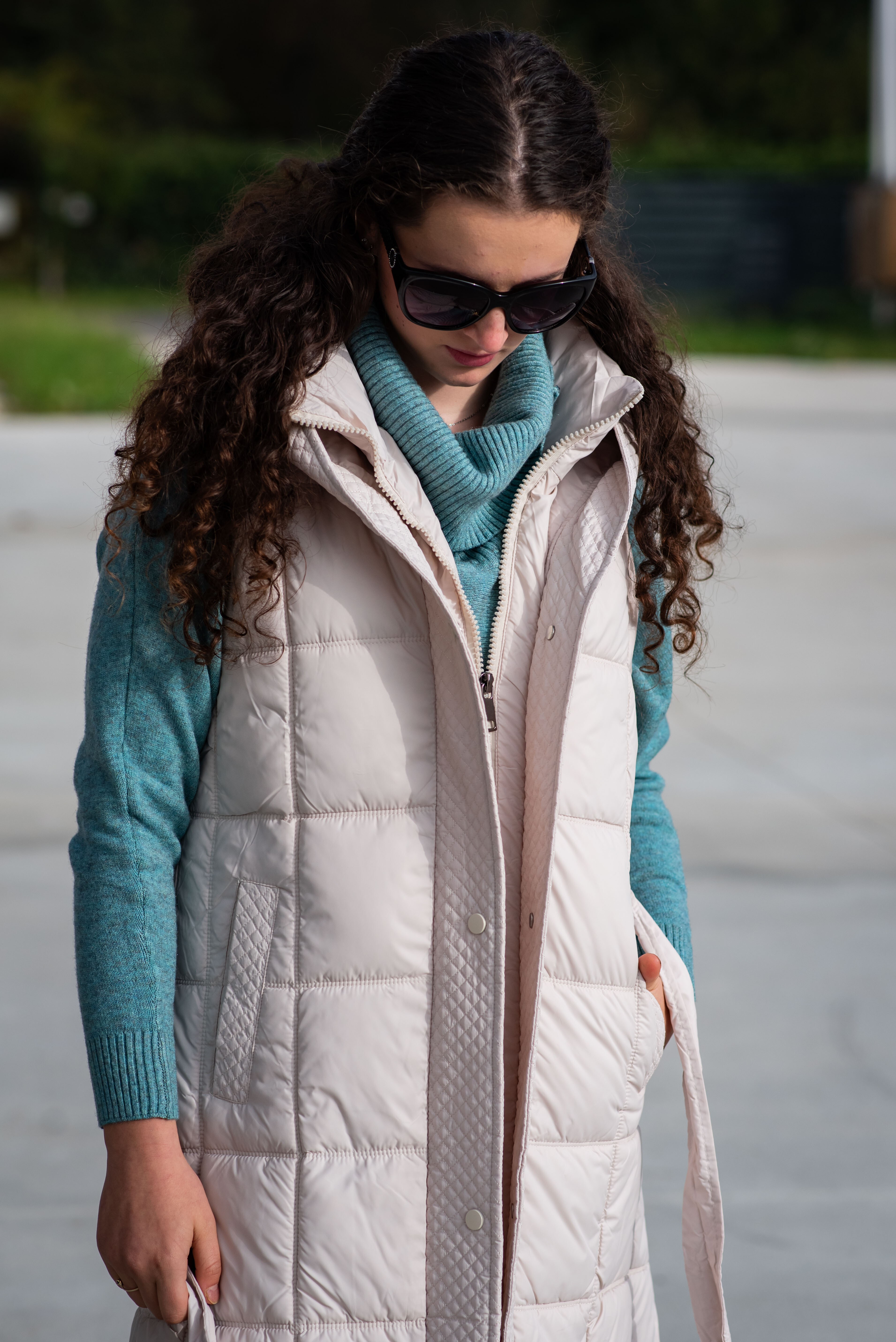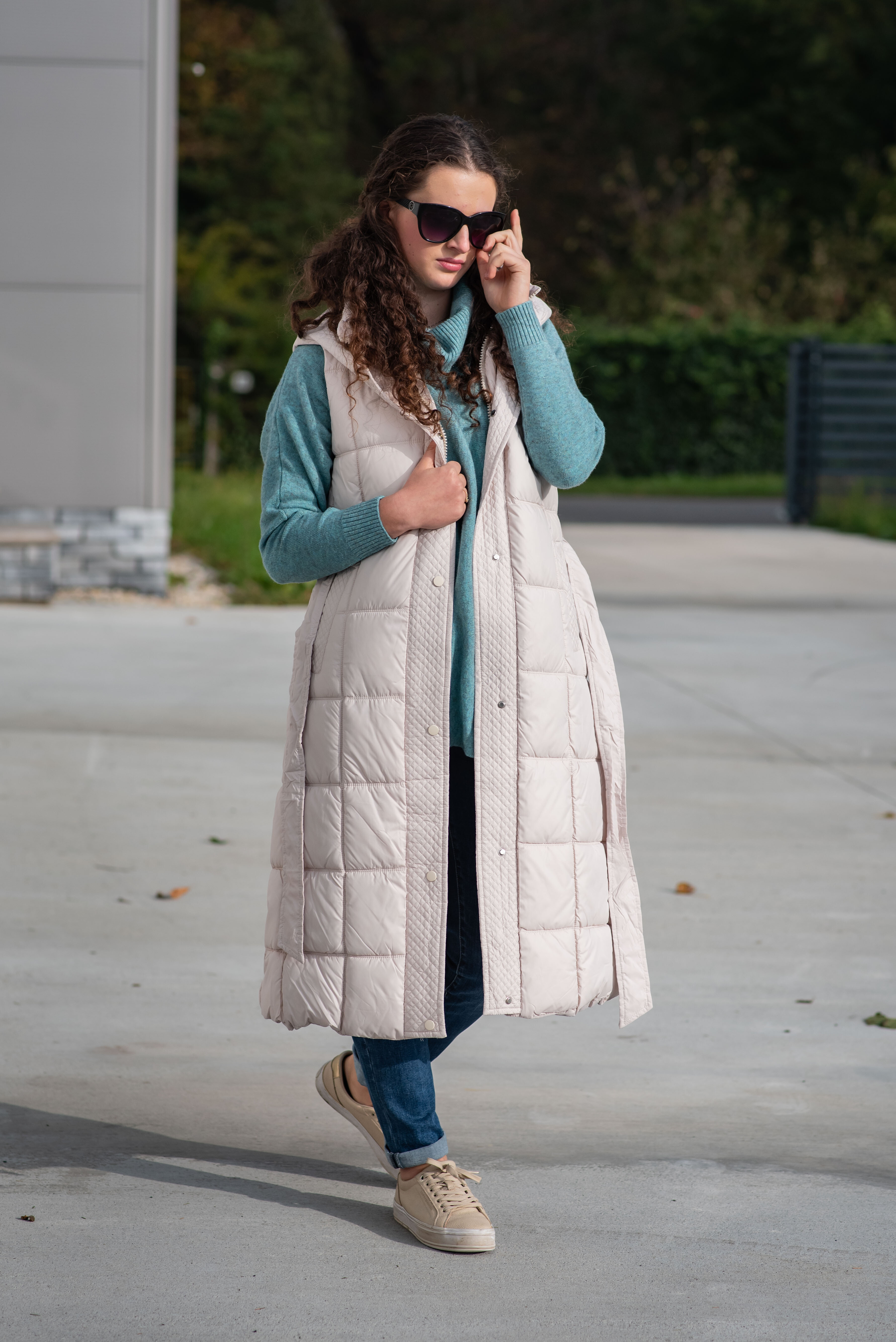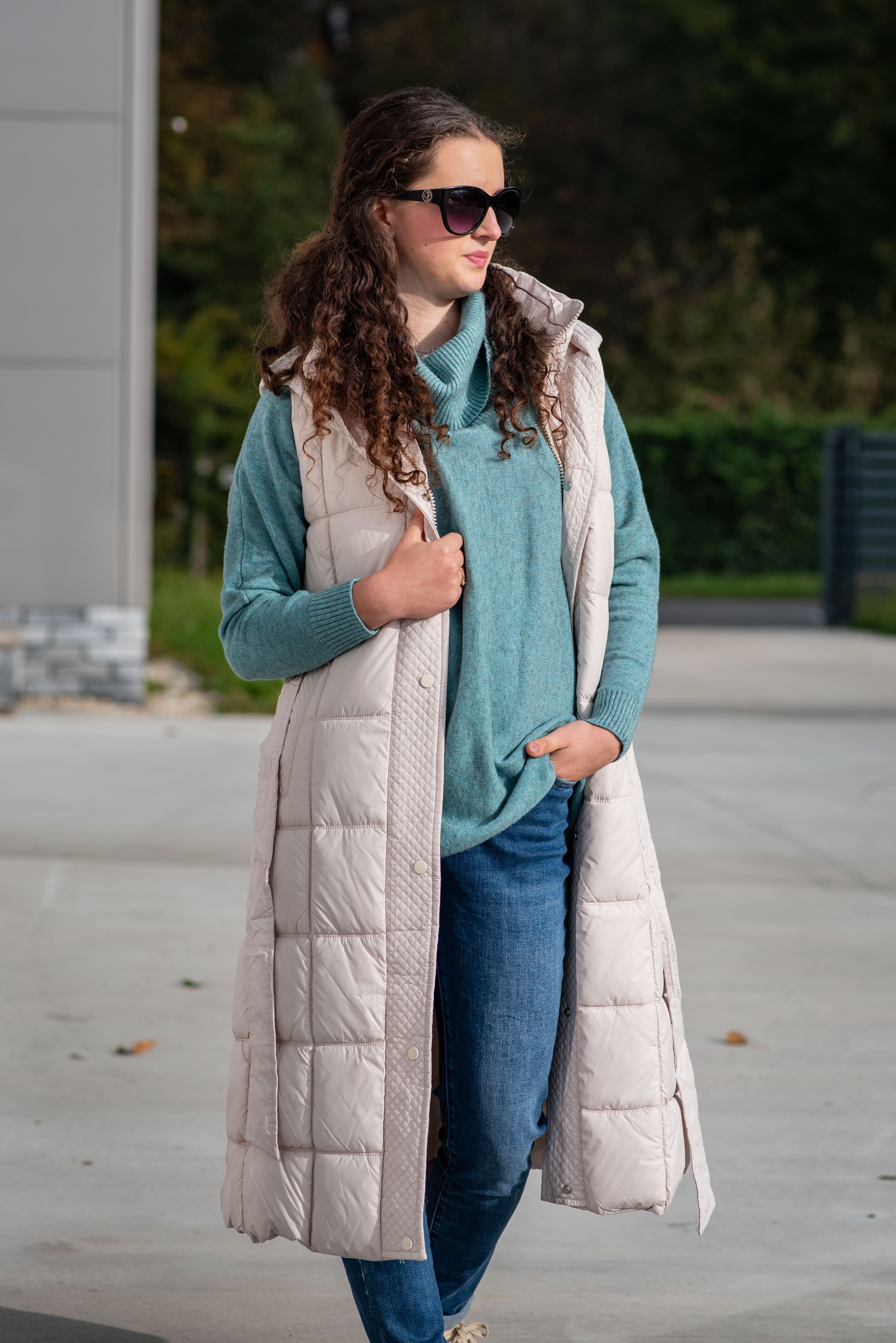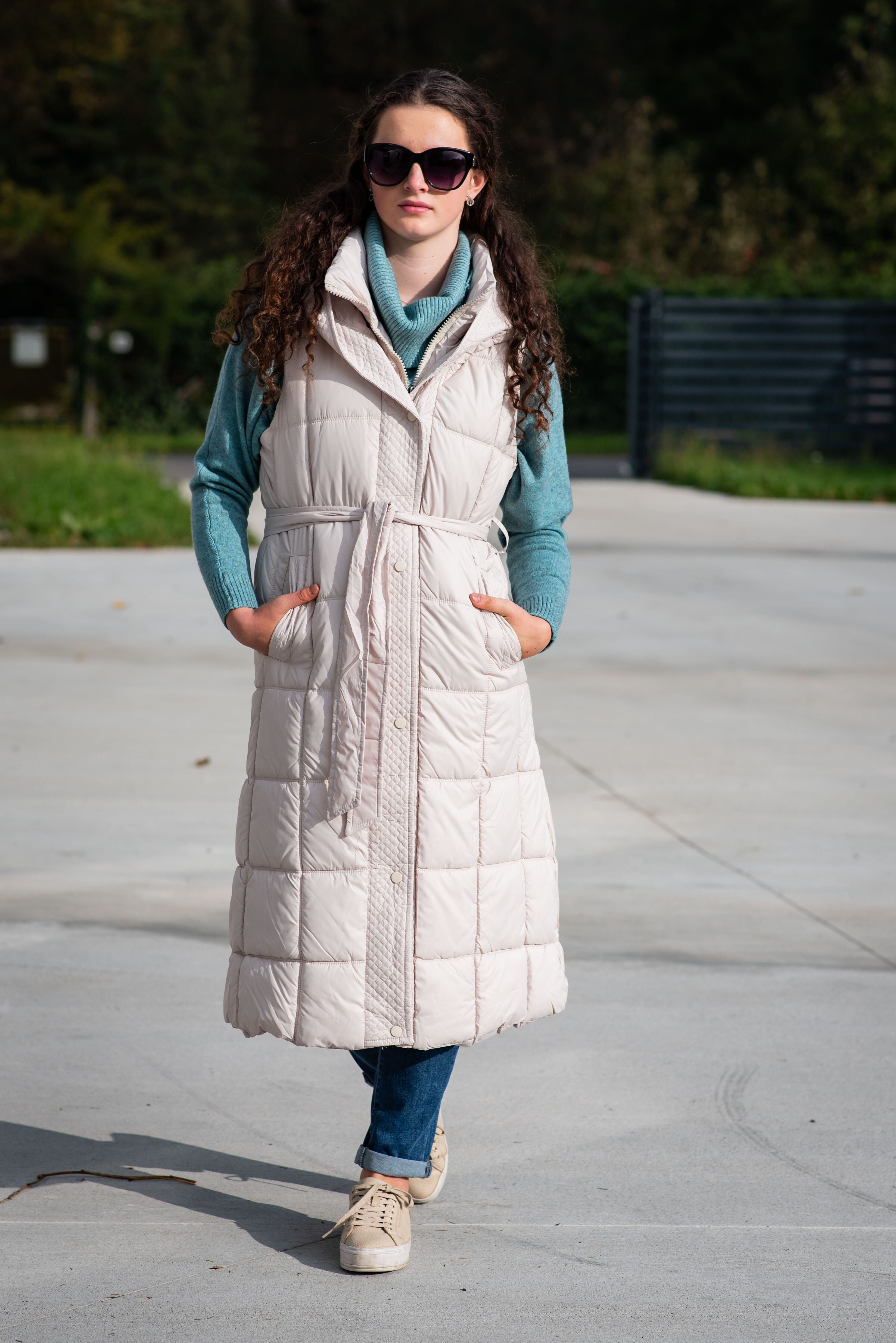 Trendy vesta prošívaná s kapucí. Dovoz Itálie