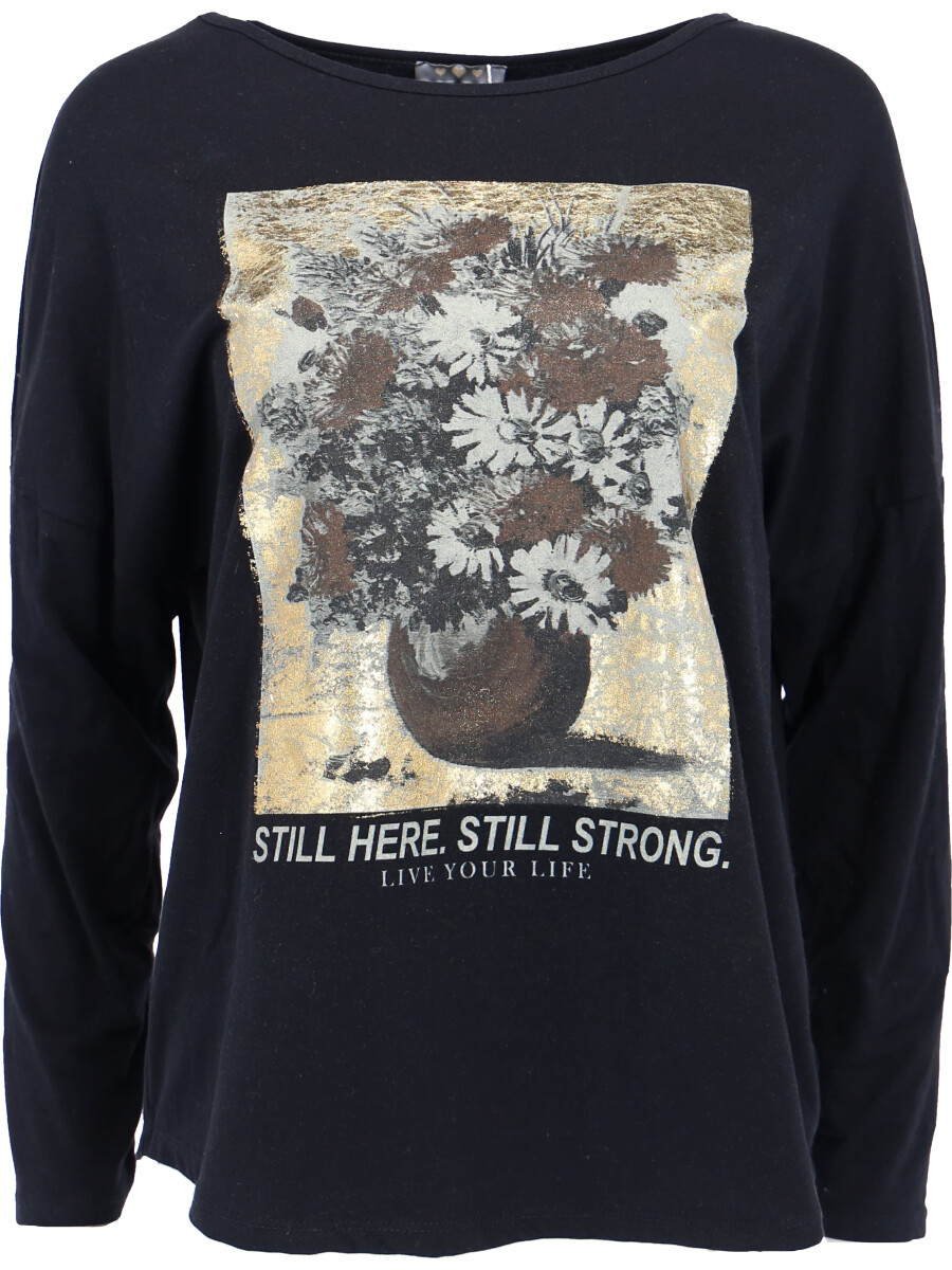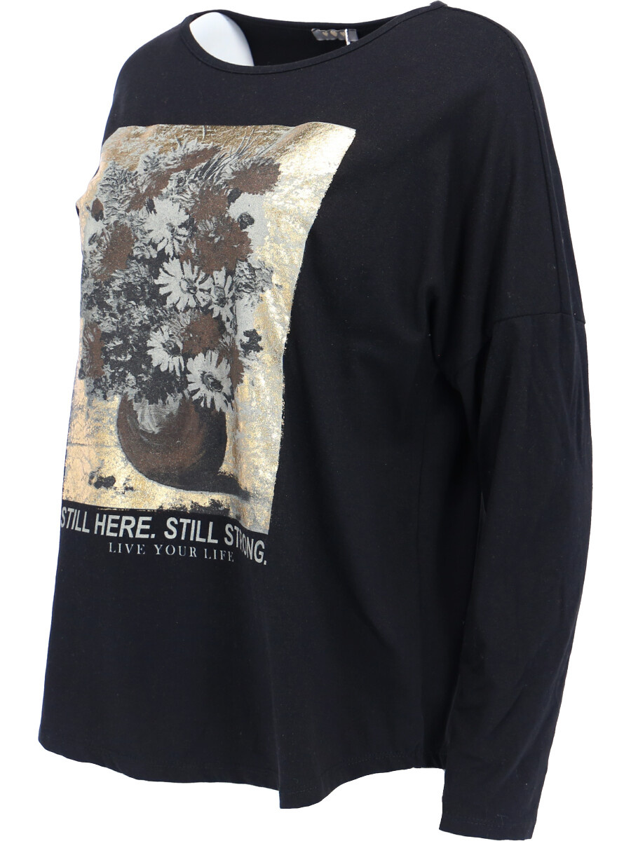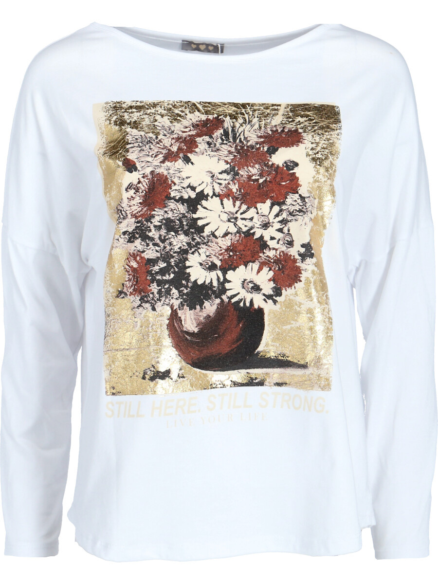Triko s dlouhým rukávem s potiskem.