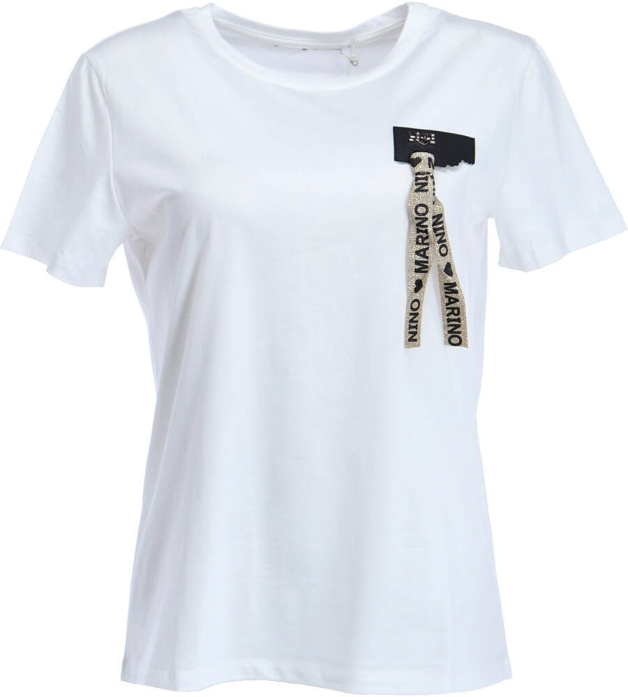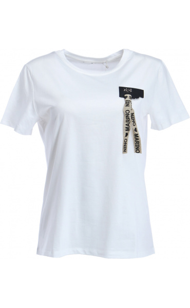 Dámské bavlněné triko s trendy potiskem a aplikací.