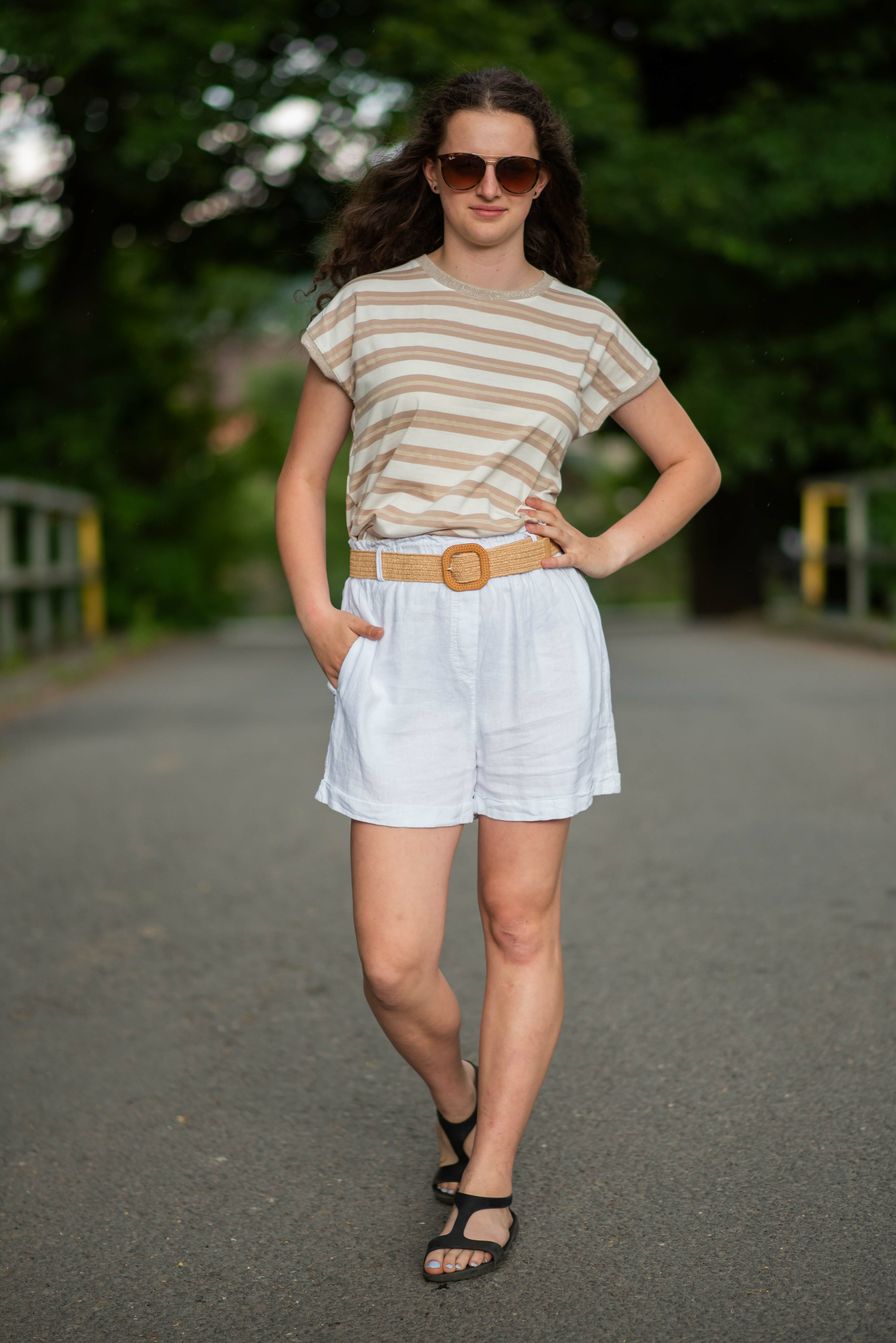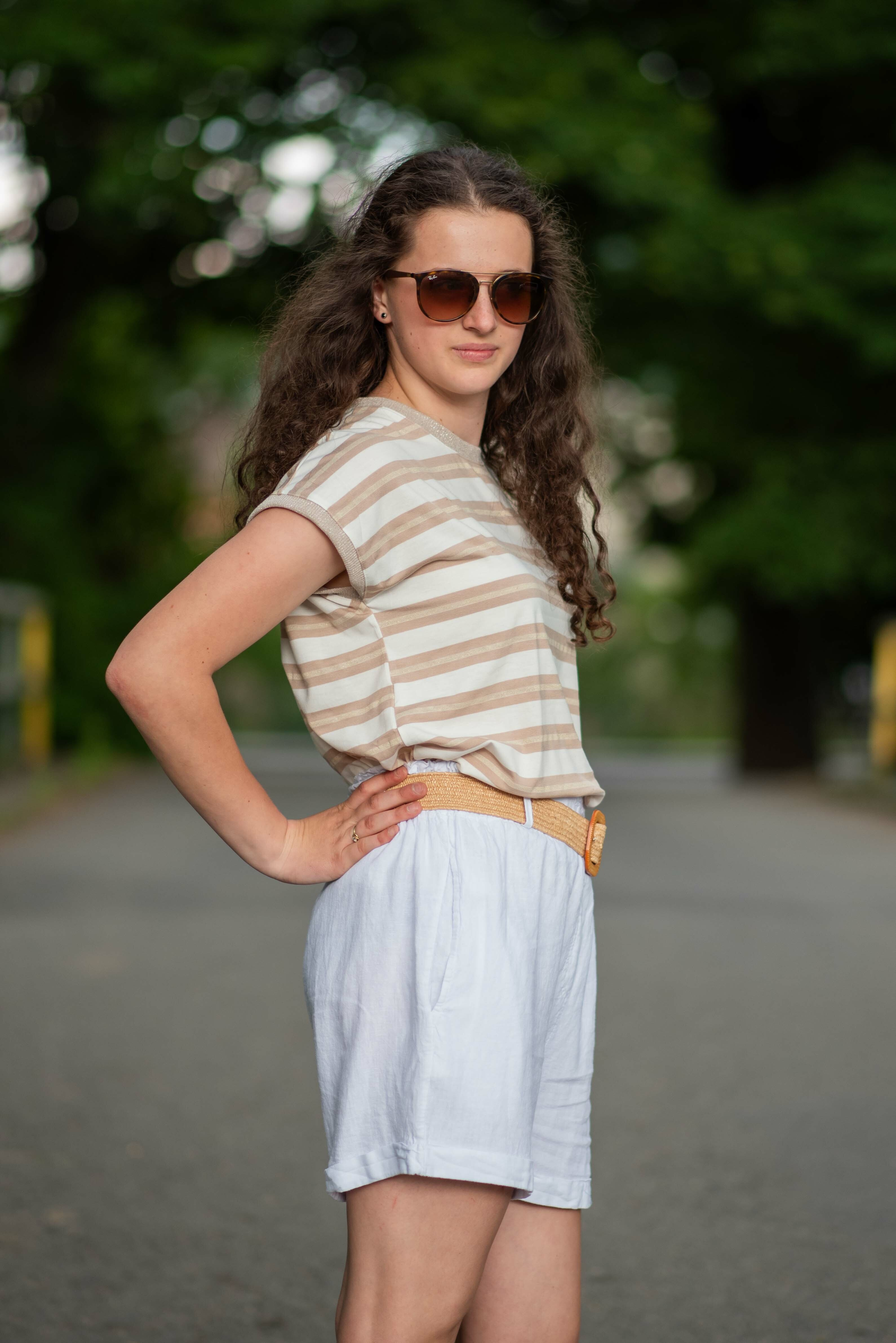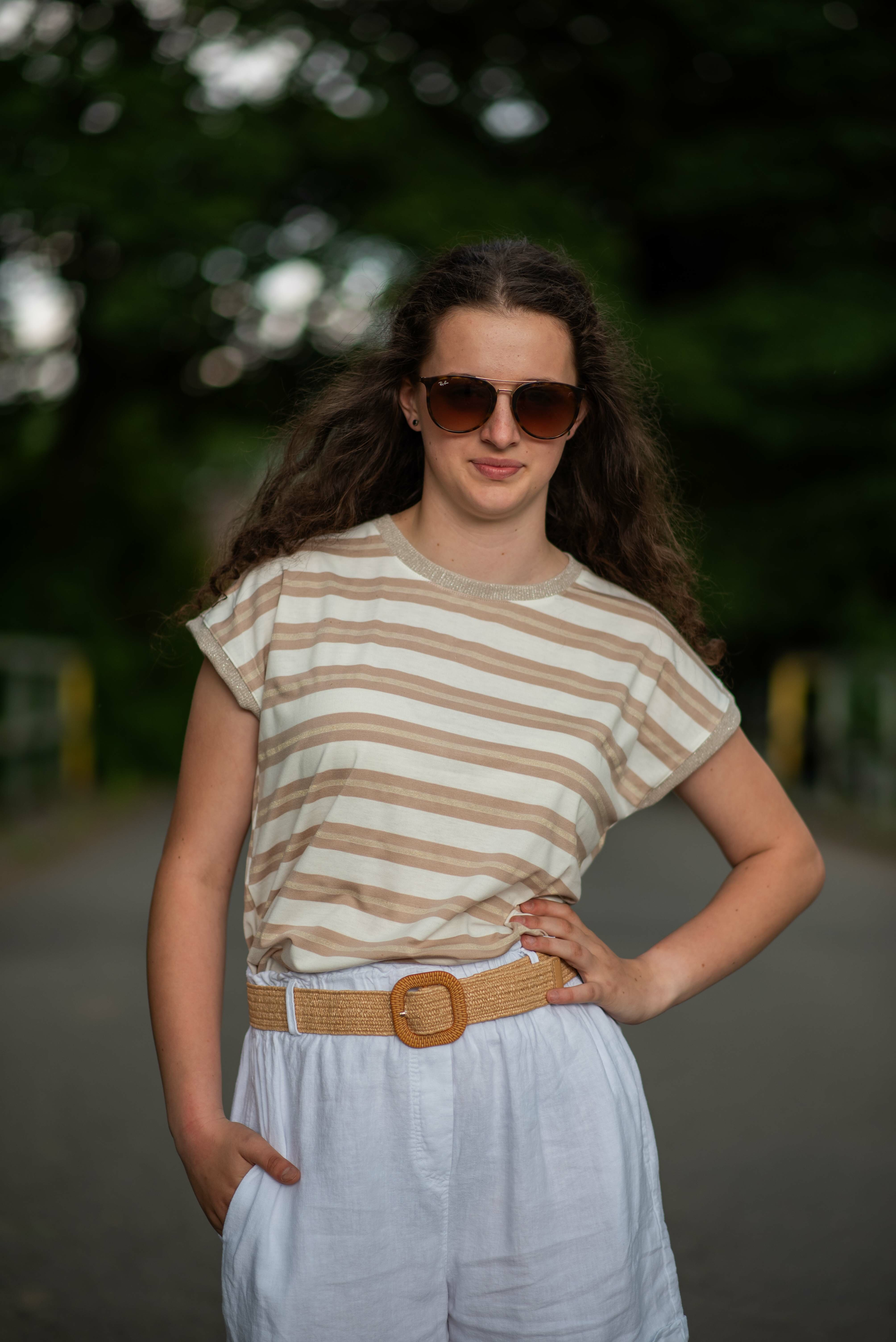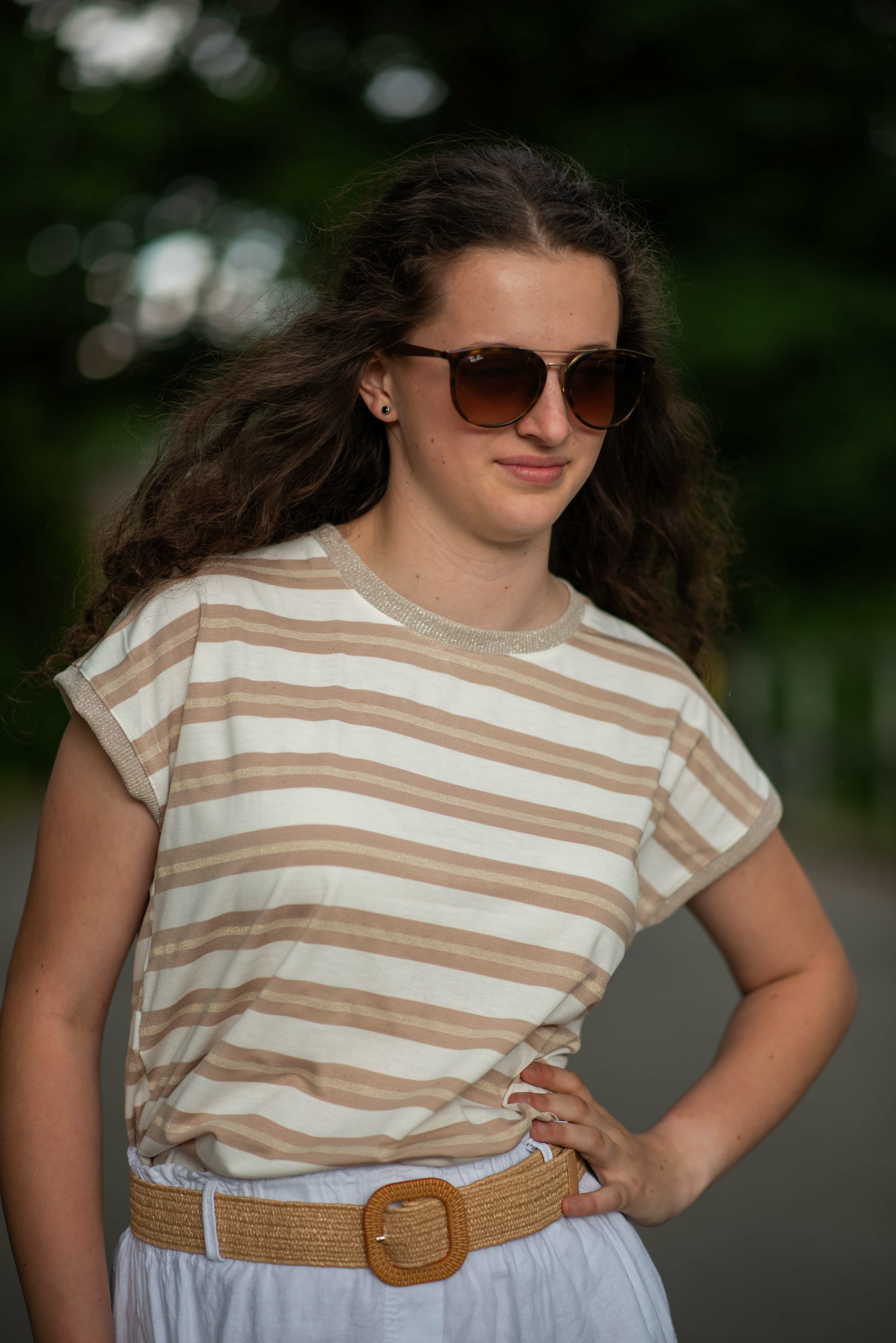 Dámské módní triko s proužkem. Triko má kulatý výstřih a krátký rukáv.