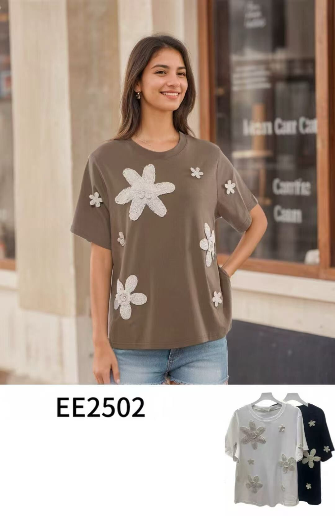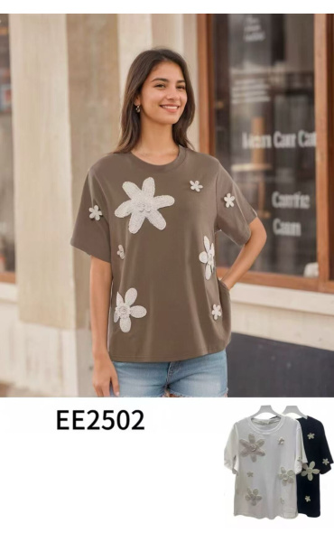 Triko s aplikací háčk. květů EE2502Triko s aplikací háčk. květů EE2502Triko s aplikací háčk. květů EE2502