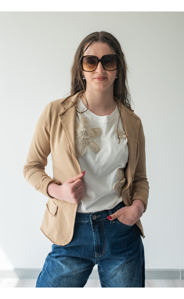 Triko s aplikací háčk. květů EE2502