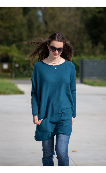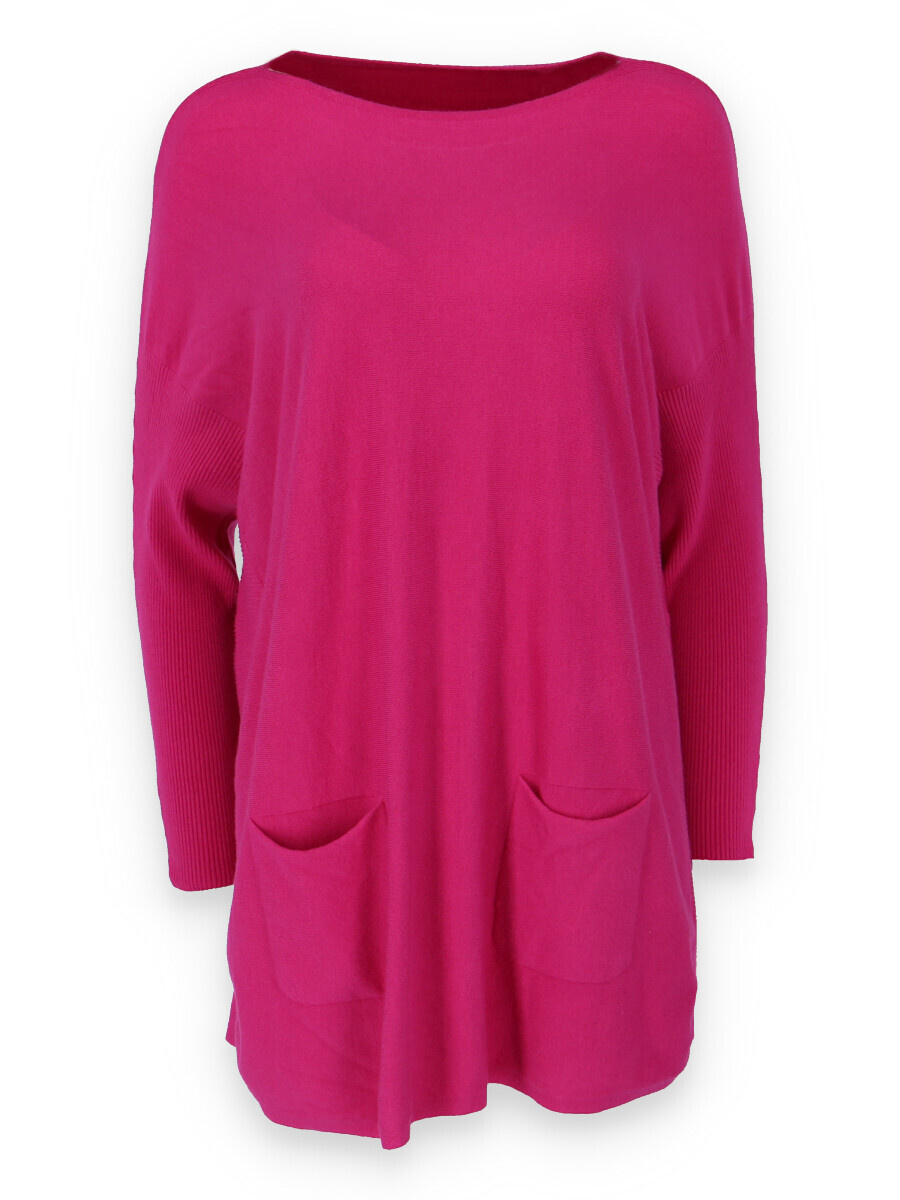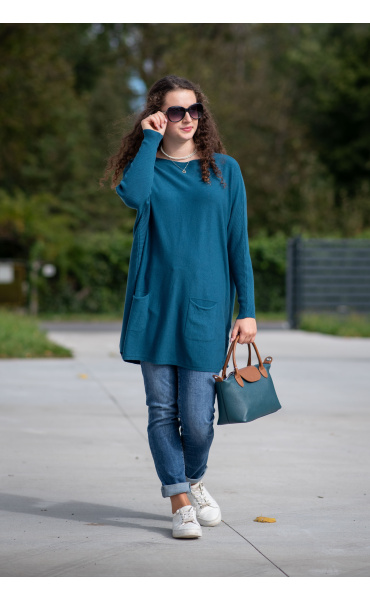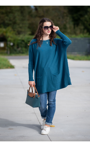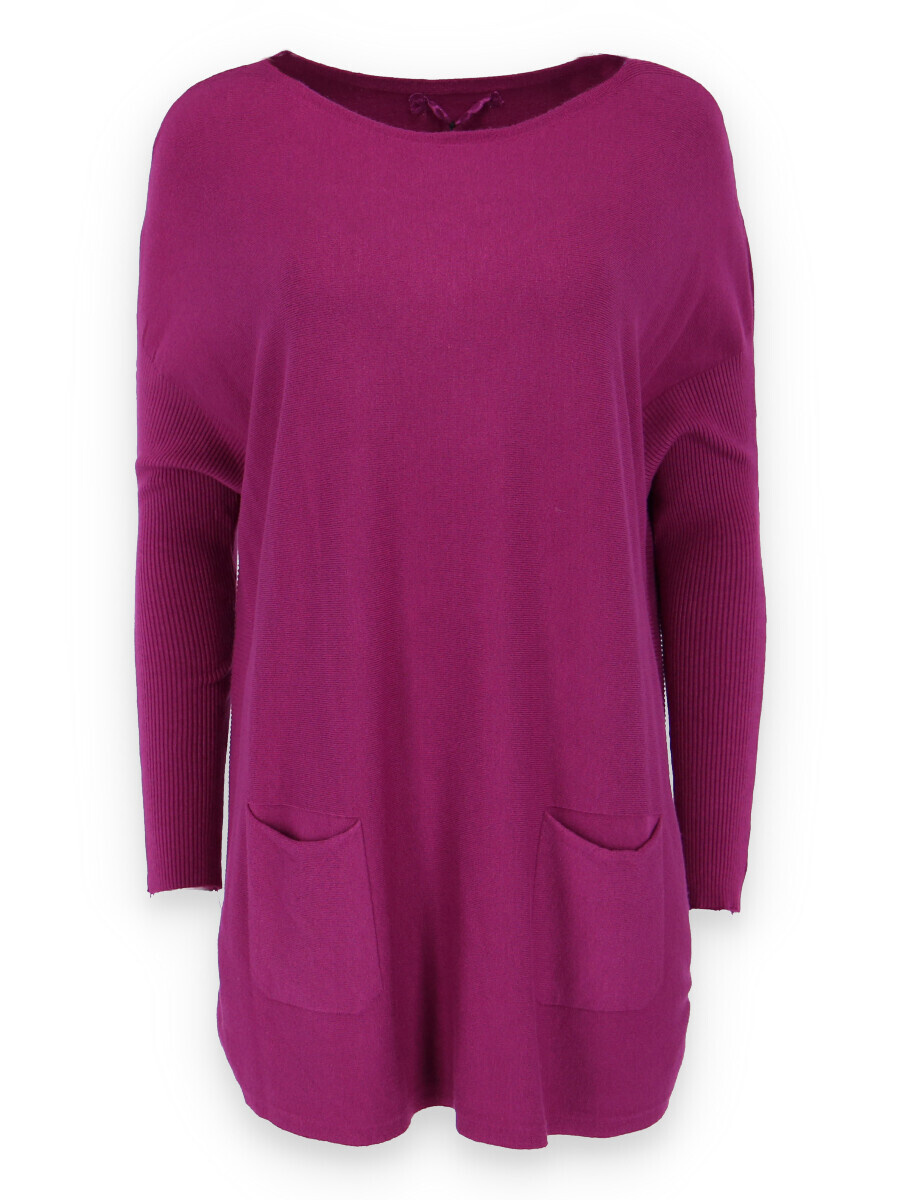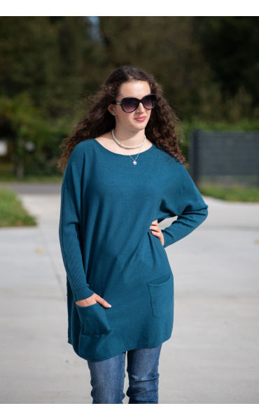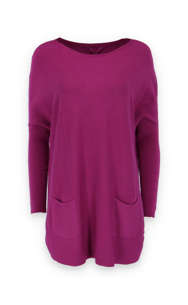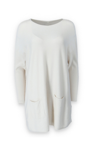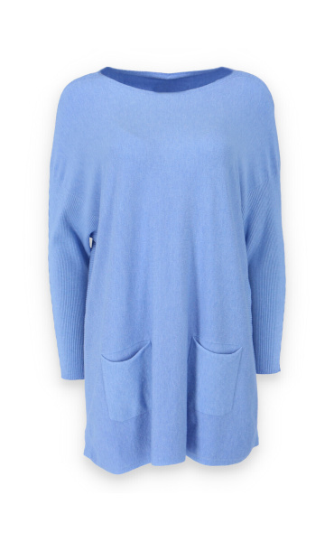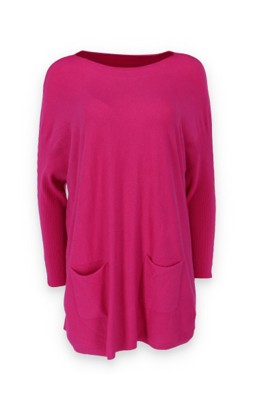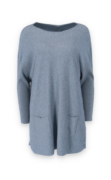 Módní svetřík/tunika s kulatým výstřihem. Tunika má dlouhý rukáv raglanového střihu. Dovoz Itálie