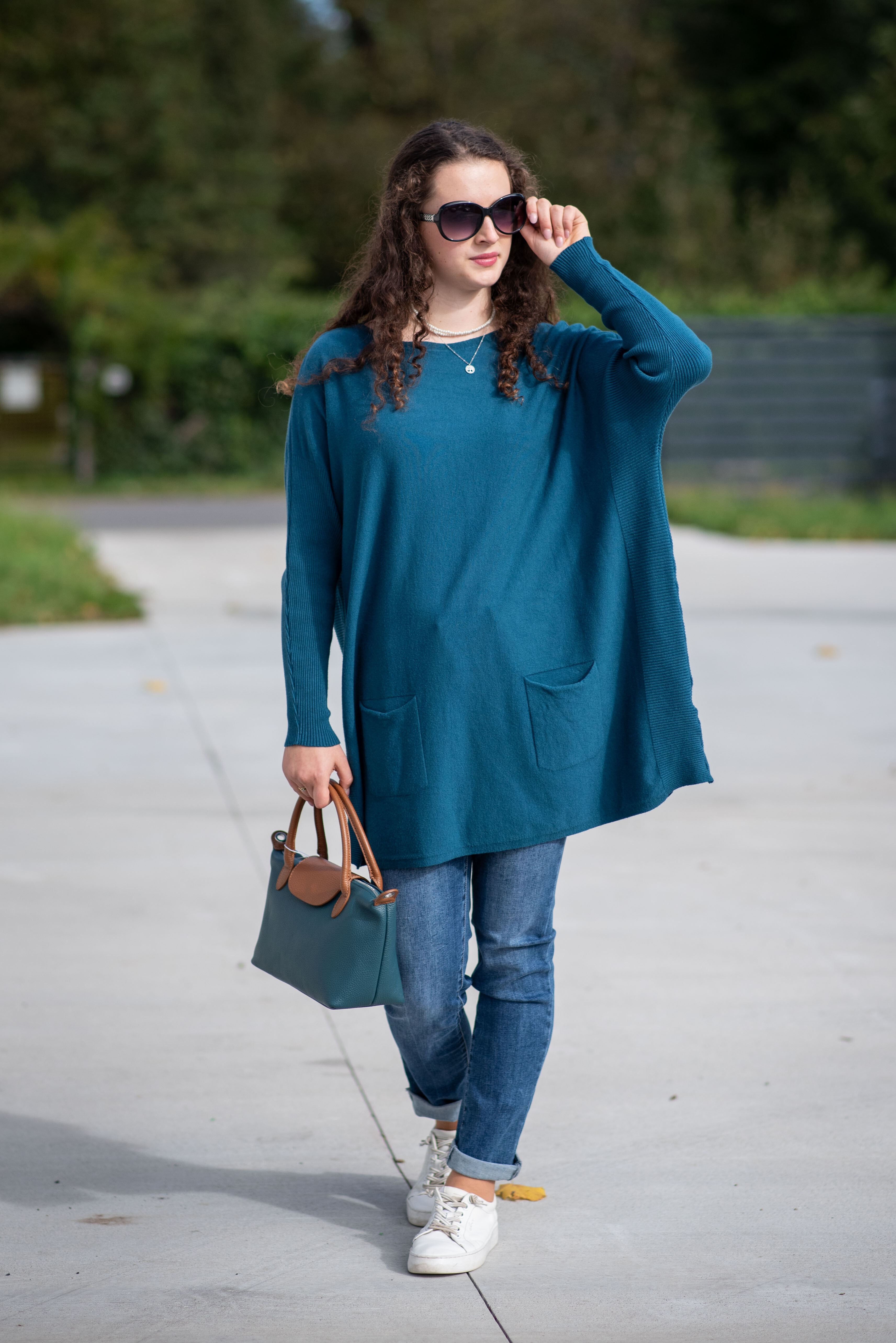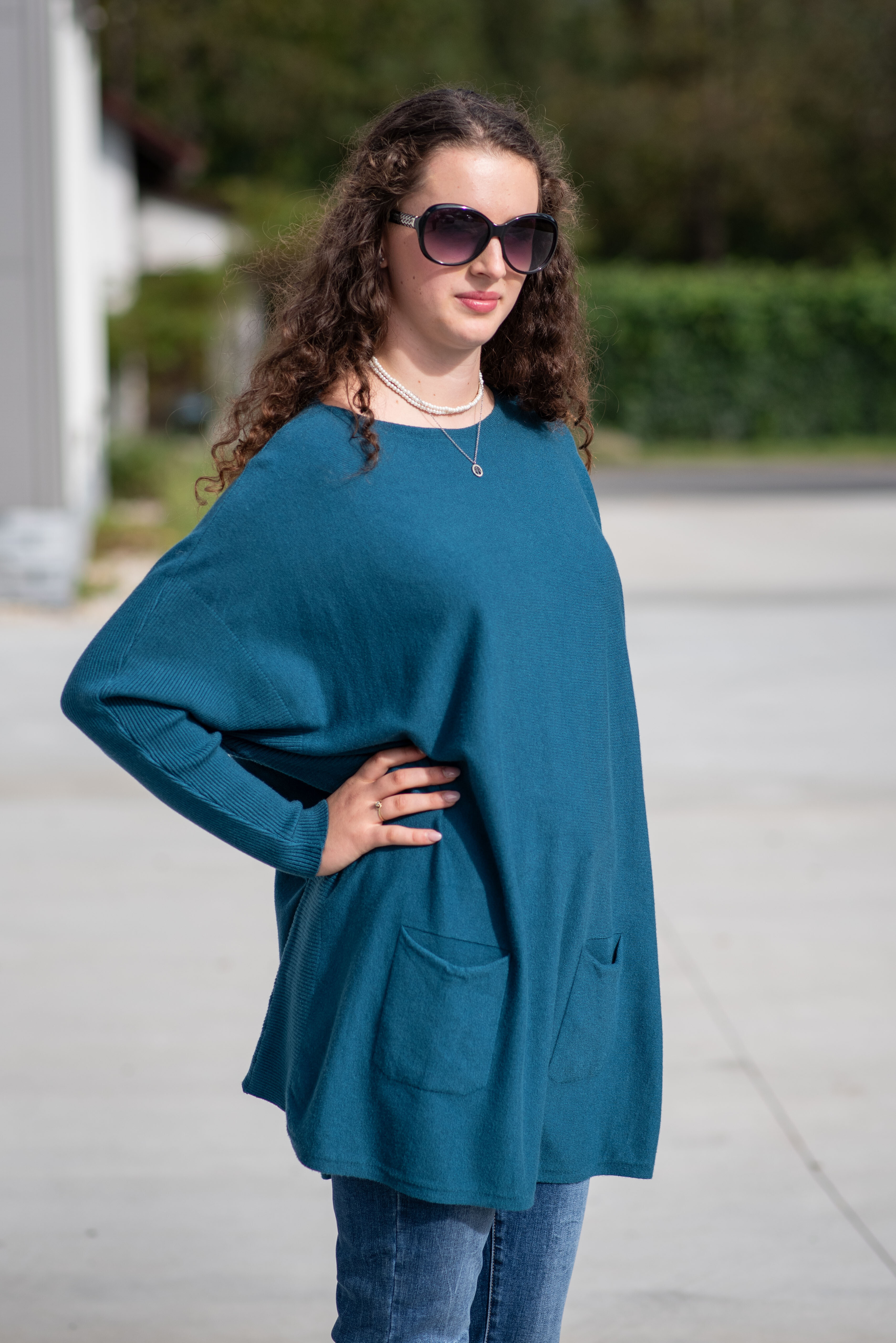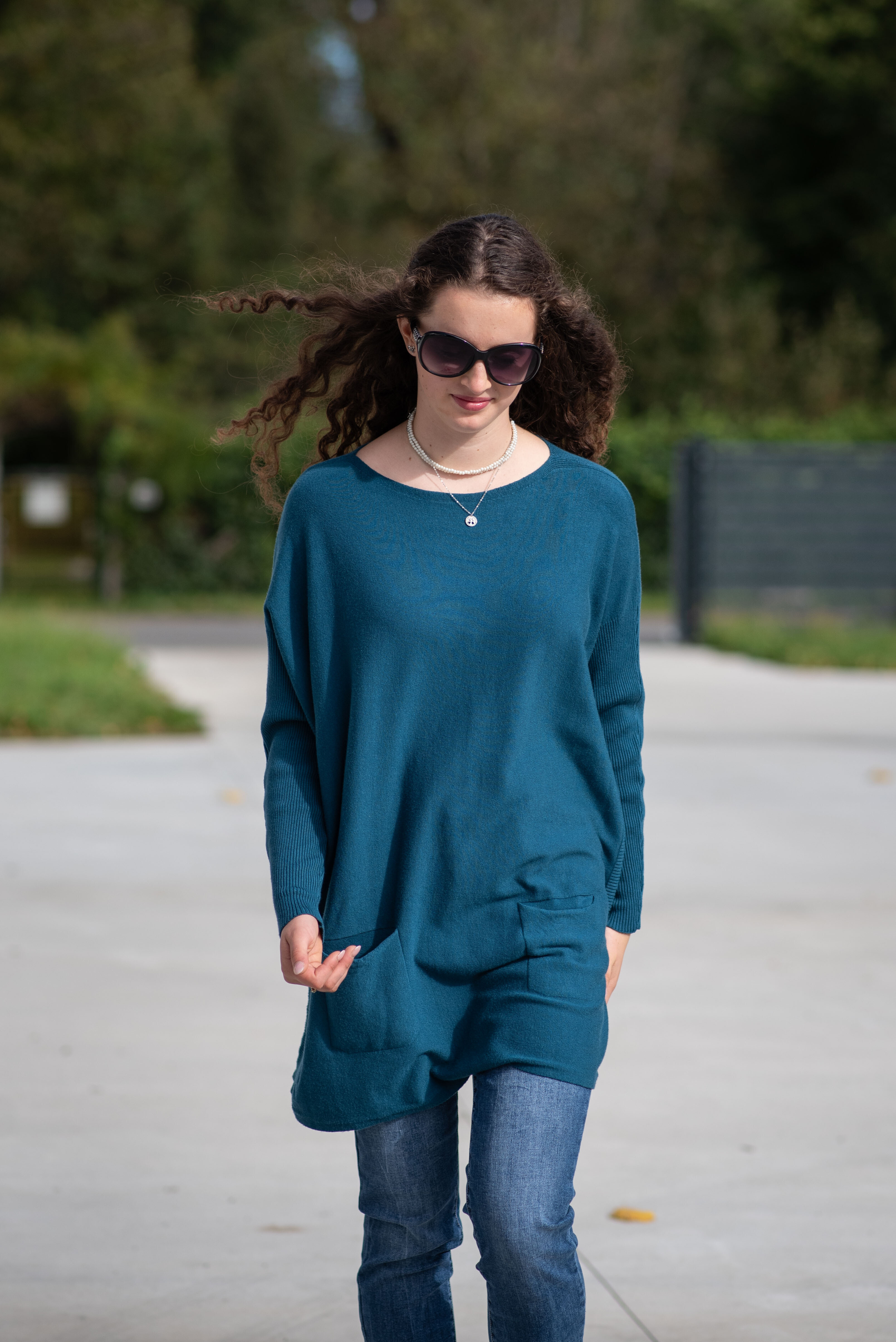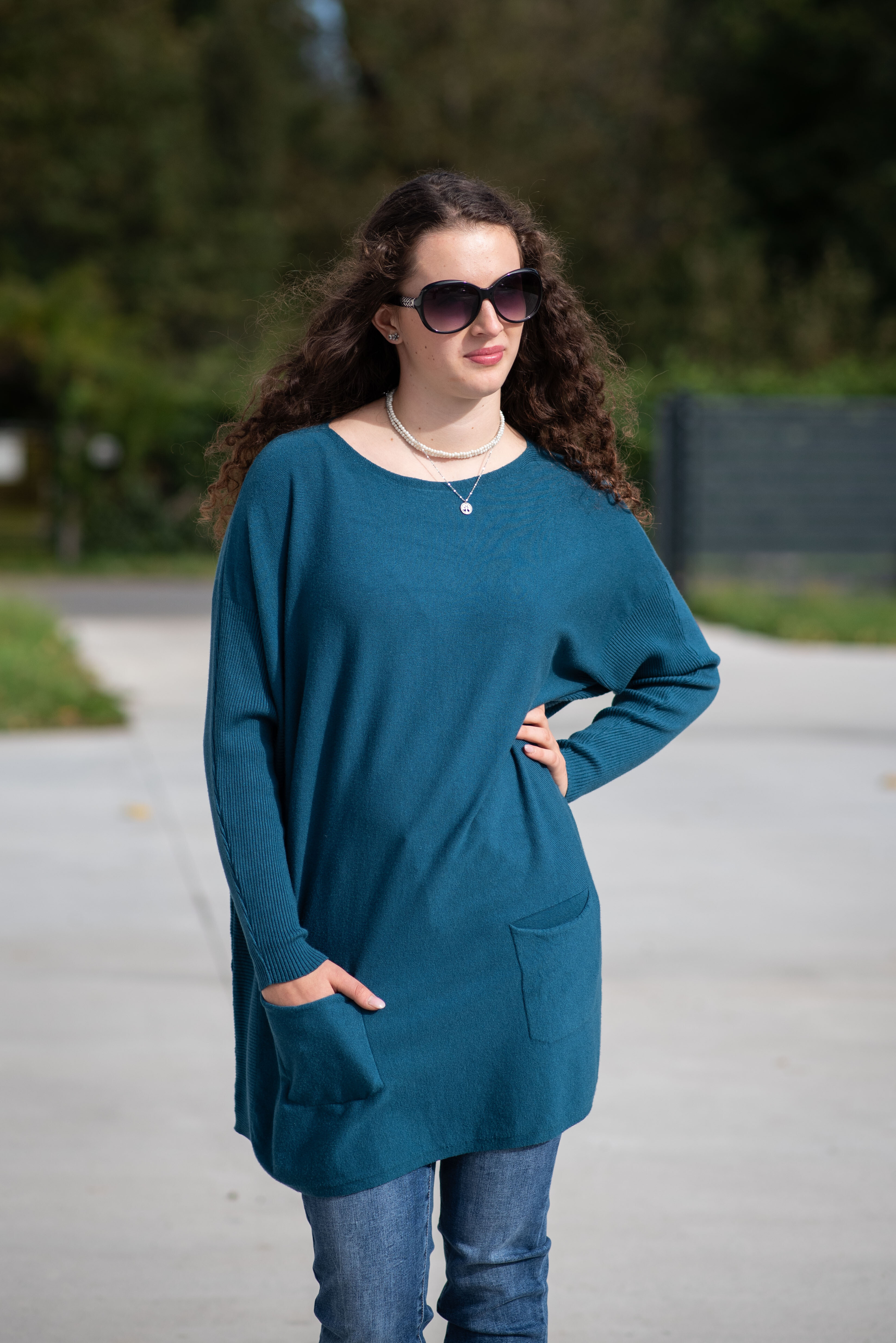 Módní svetřík/tunika s kulatým výstřihem. Tunika má dlouhý rukáv raglanového střihu. Dovoz Itálie