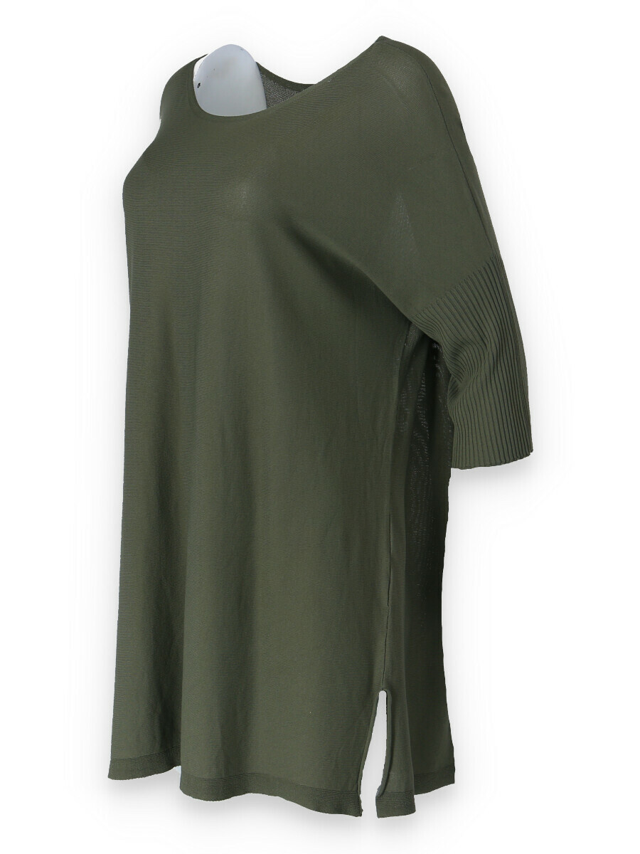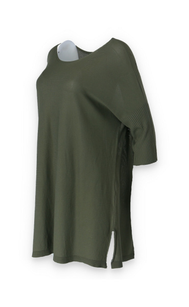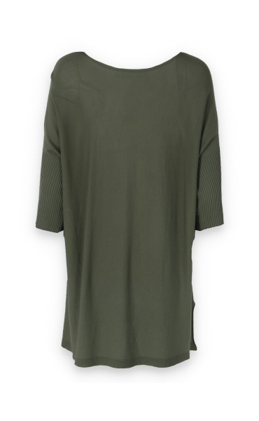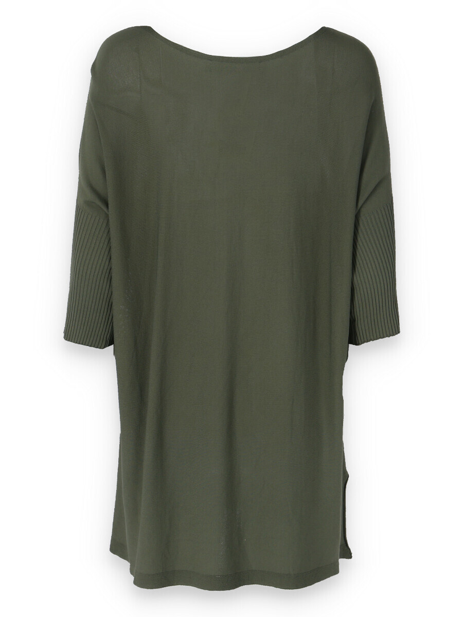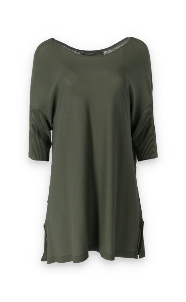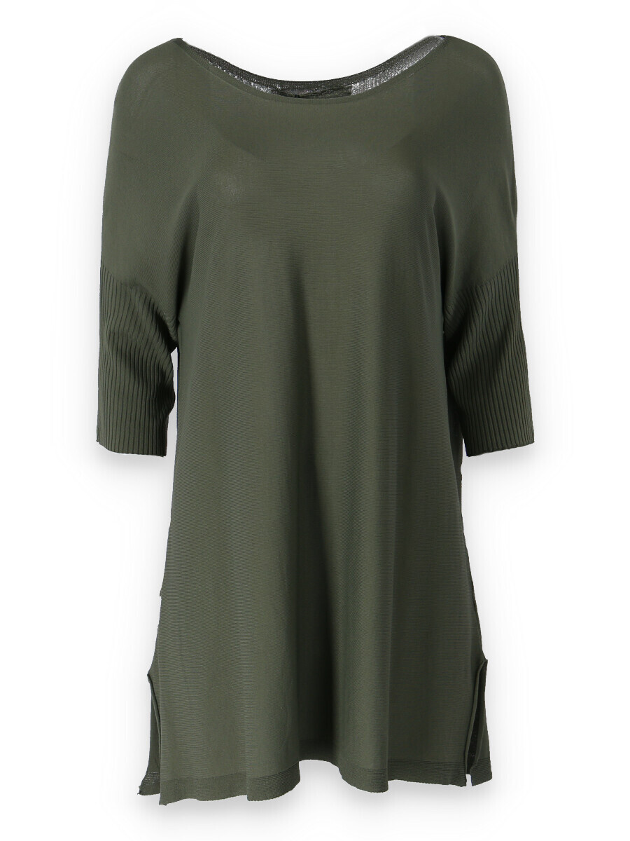 Tunika s raglánovým rukávem a lodičkovým výstřihem Itálie. Delší úpletový svetřík/kabátek s rolákem, který lze zvolit jako svrchní část outfitu. Vhodné také k legínám nebo džínám. Na přední části všité kapsy na zip.