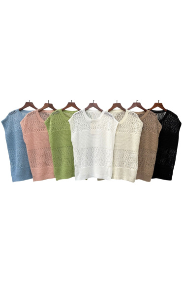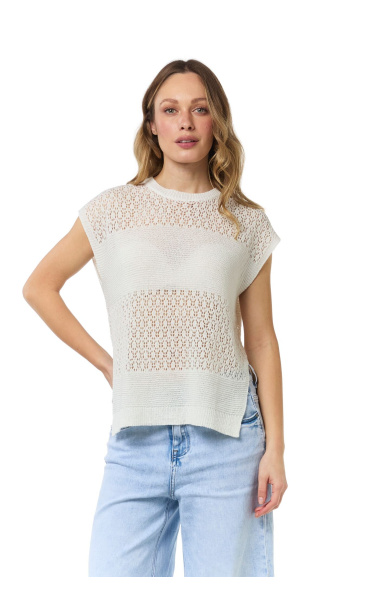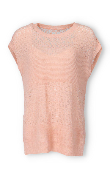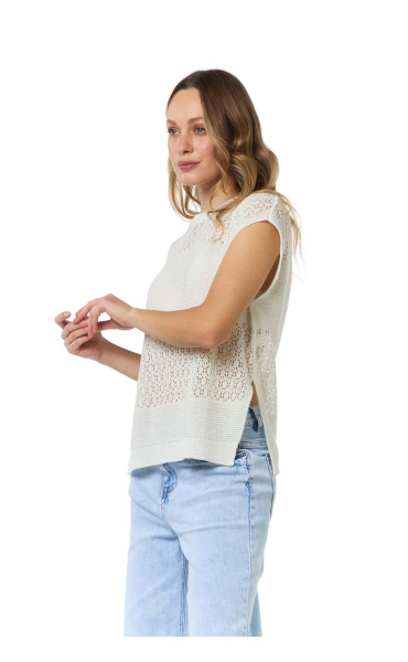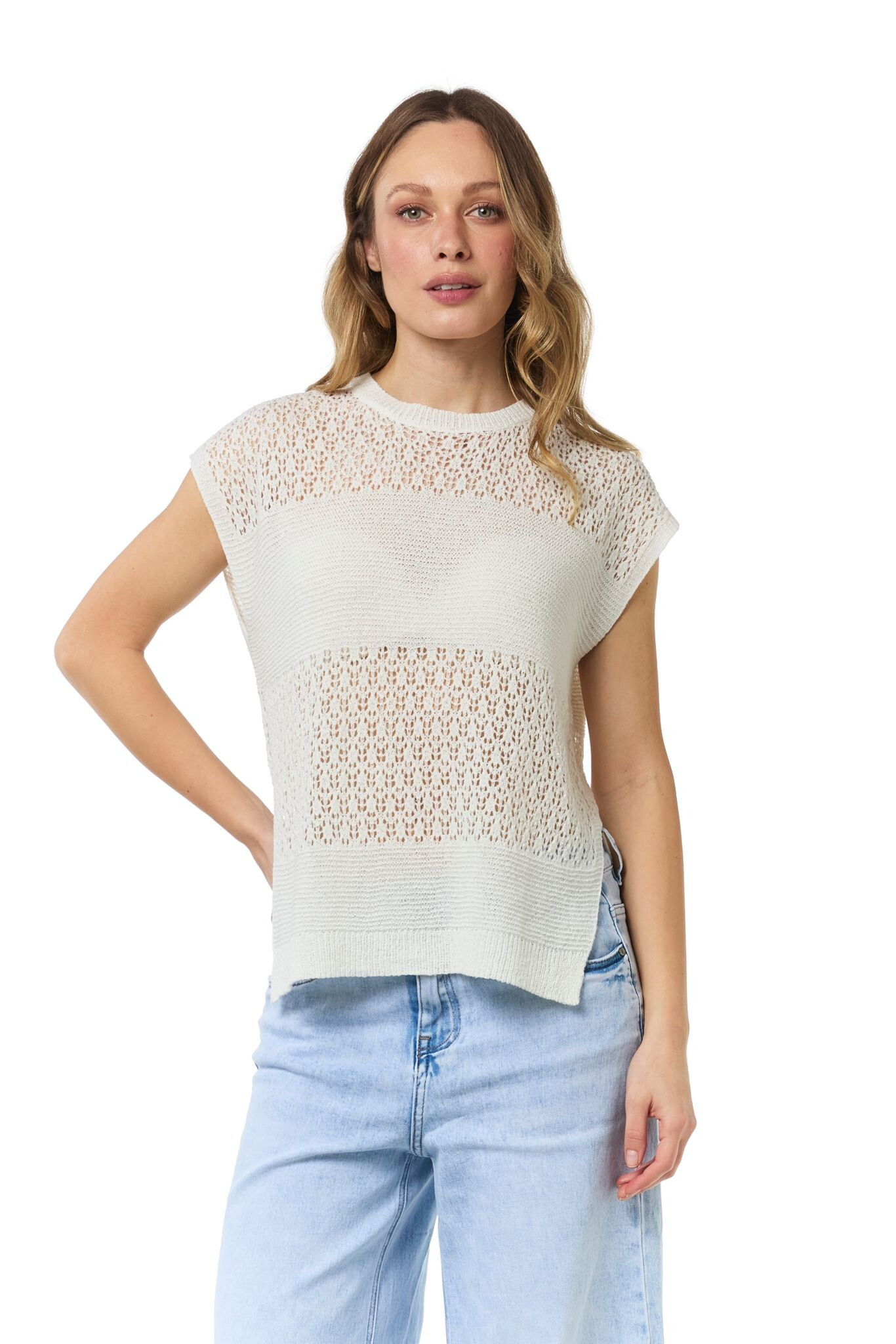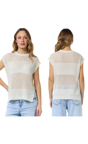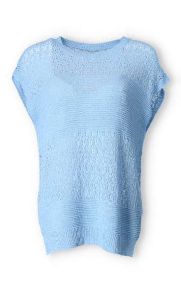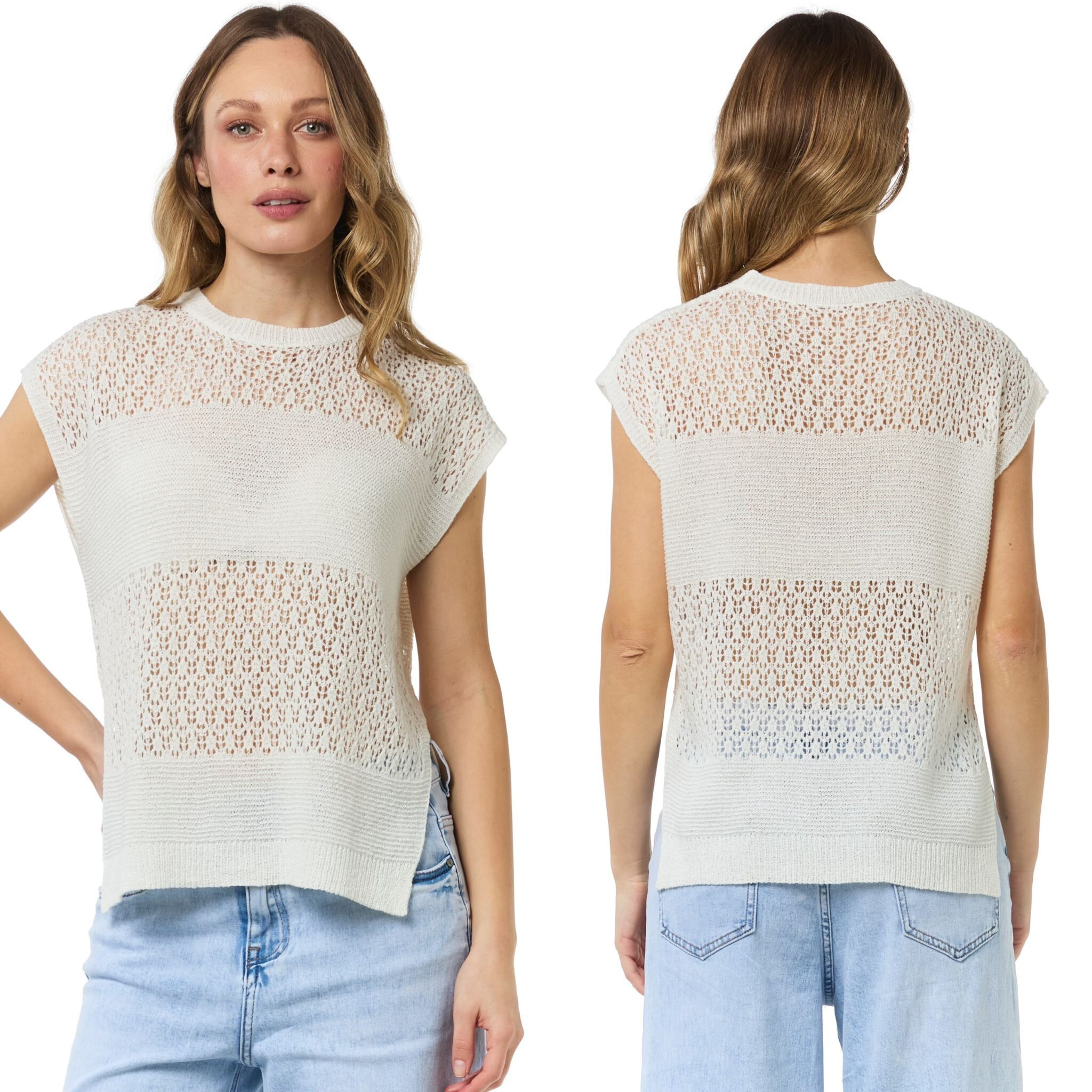 Dámská úpletová trendy vesta. Vesta má kulatý výstřih a ve spodní části rozparky po stranách.