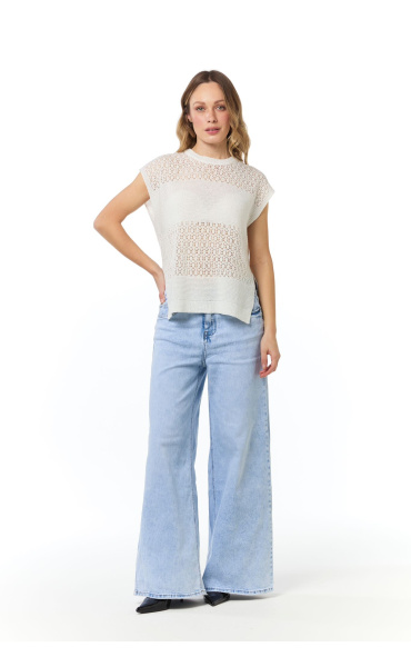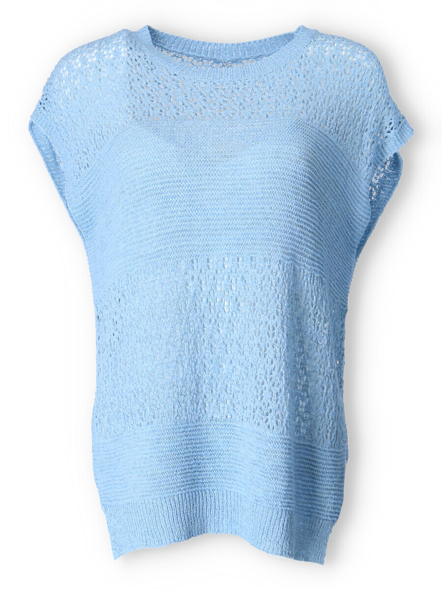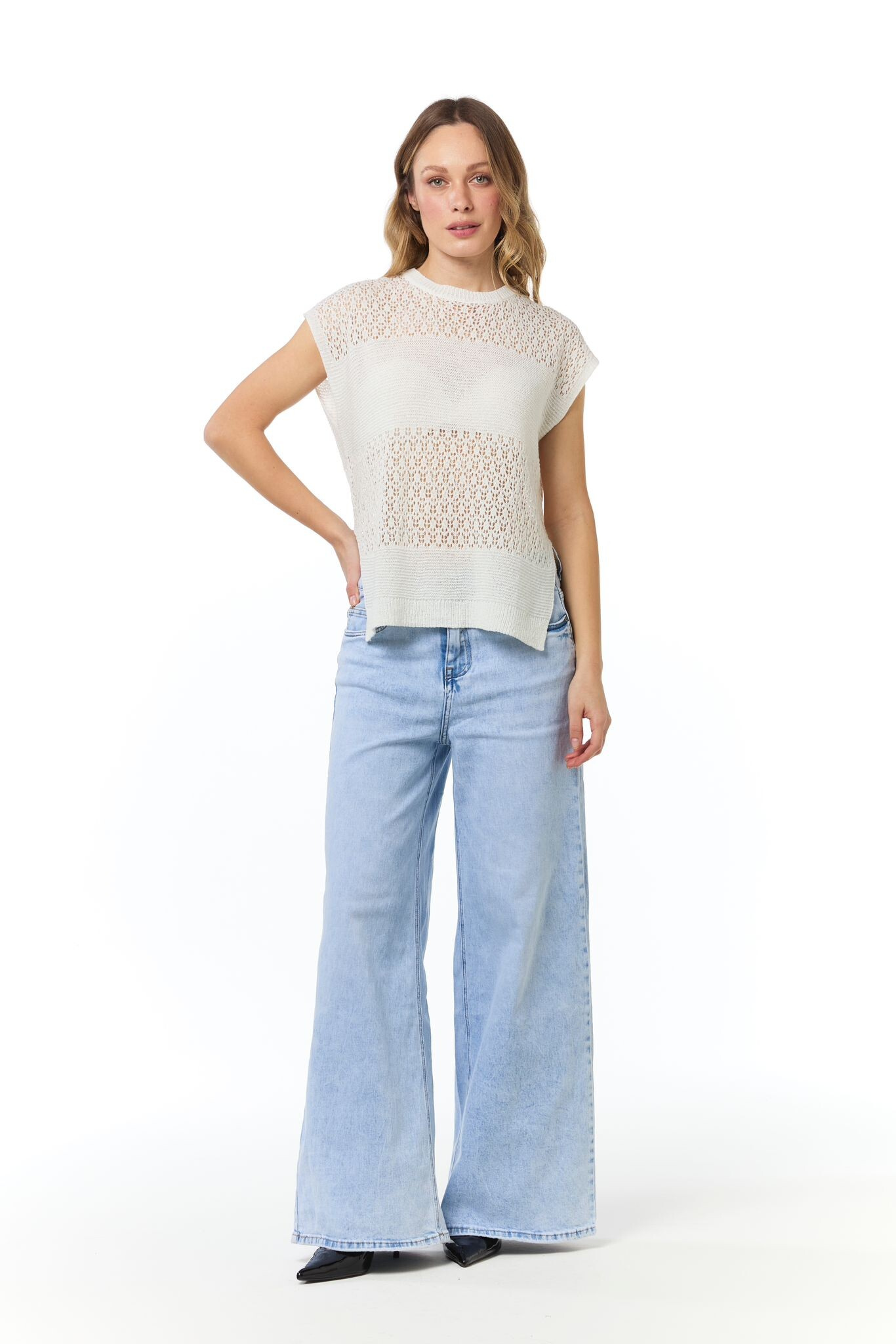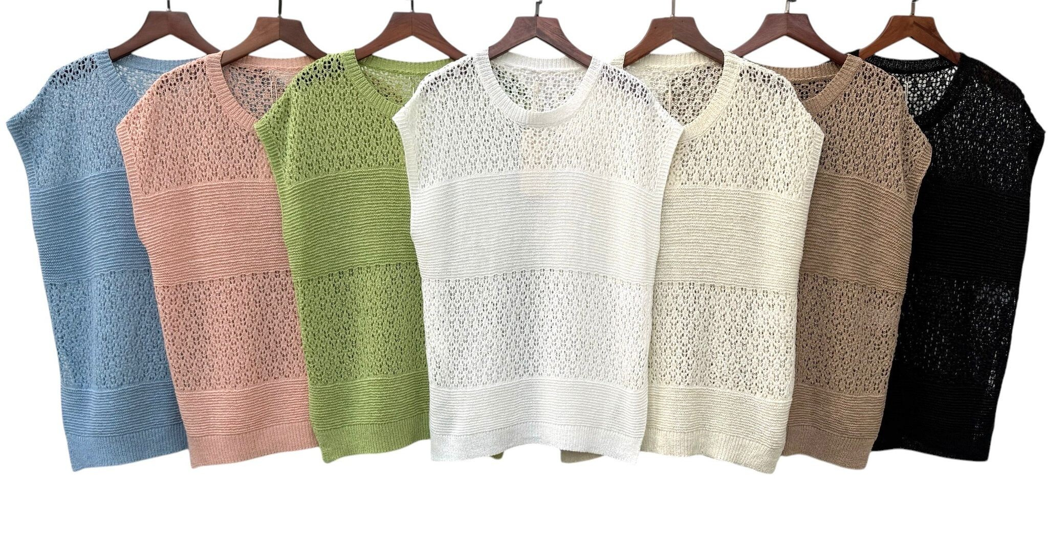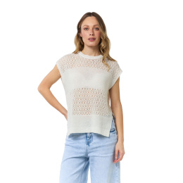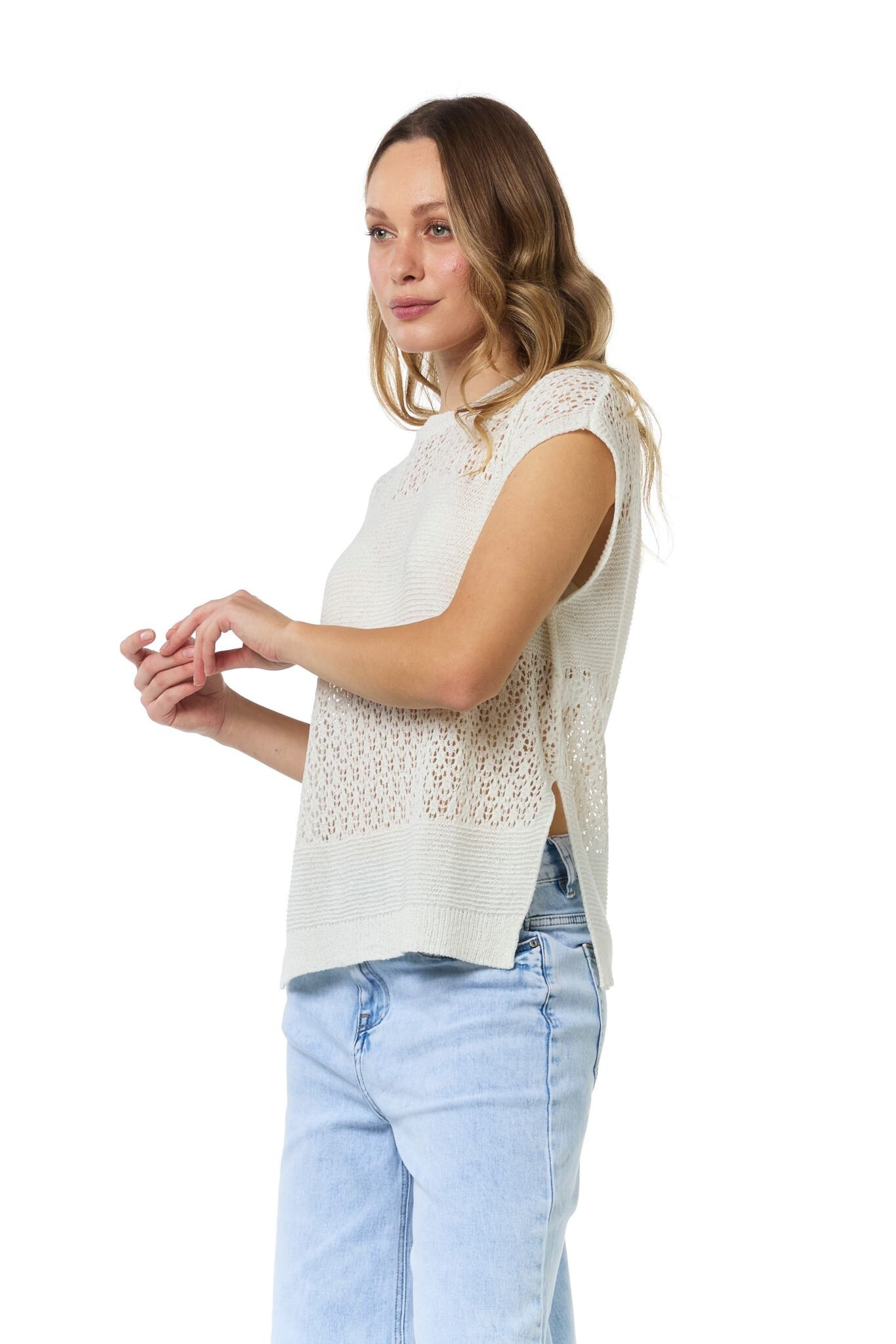 Dámská úpletová trendy vesta. Vesta má kulatý výstřih a ve spodní části rozparky po stranách.