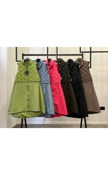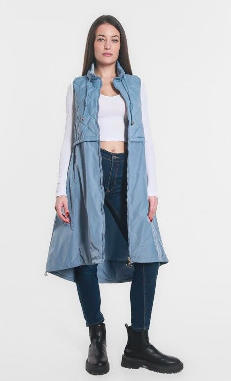 Módní dlouhá vesta s regulací v pase na zip. Itálie