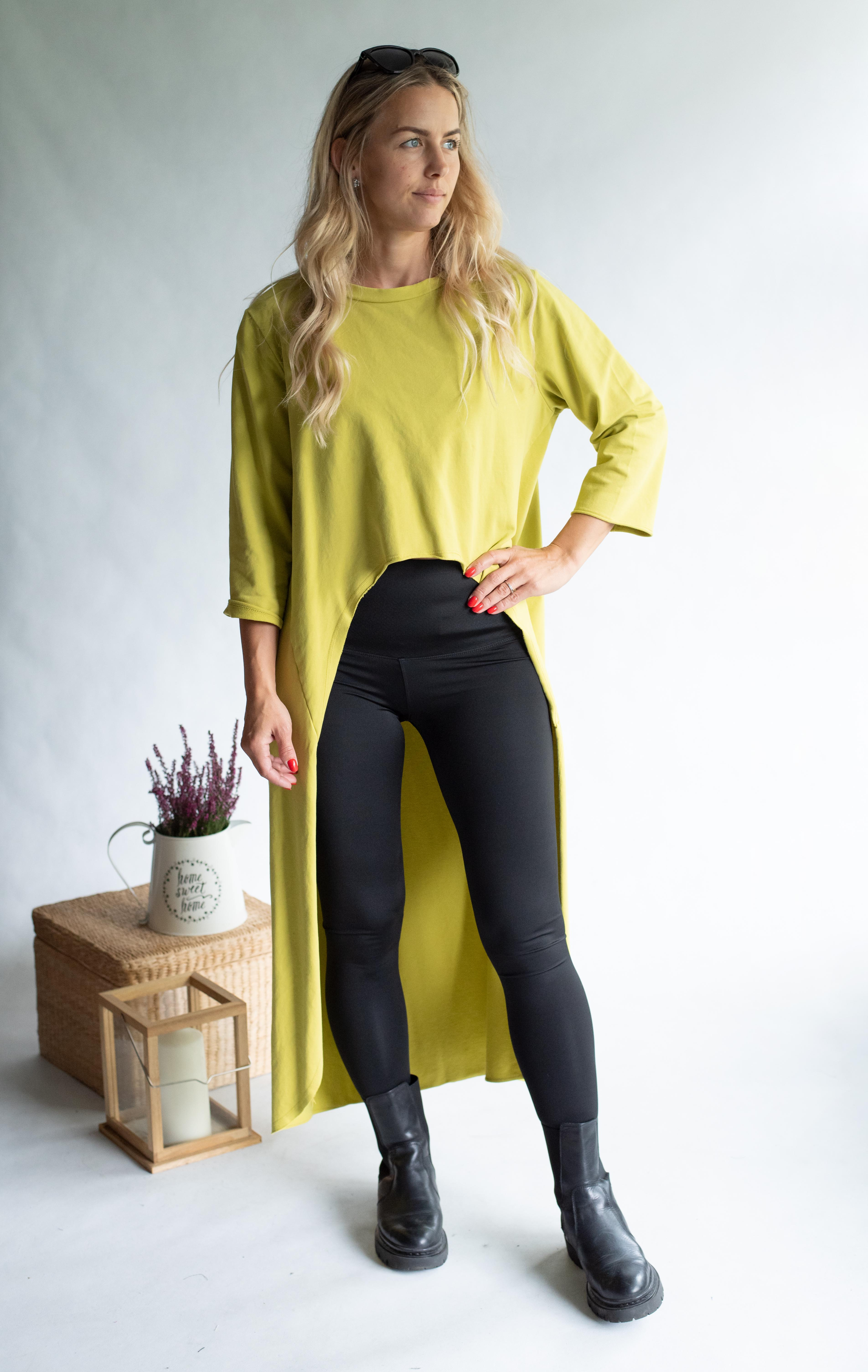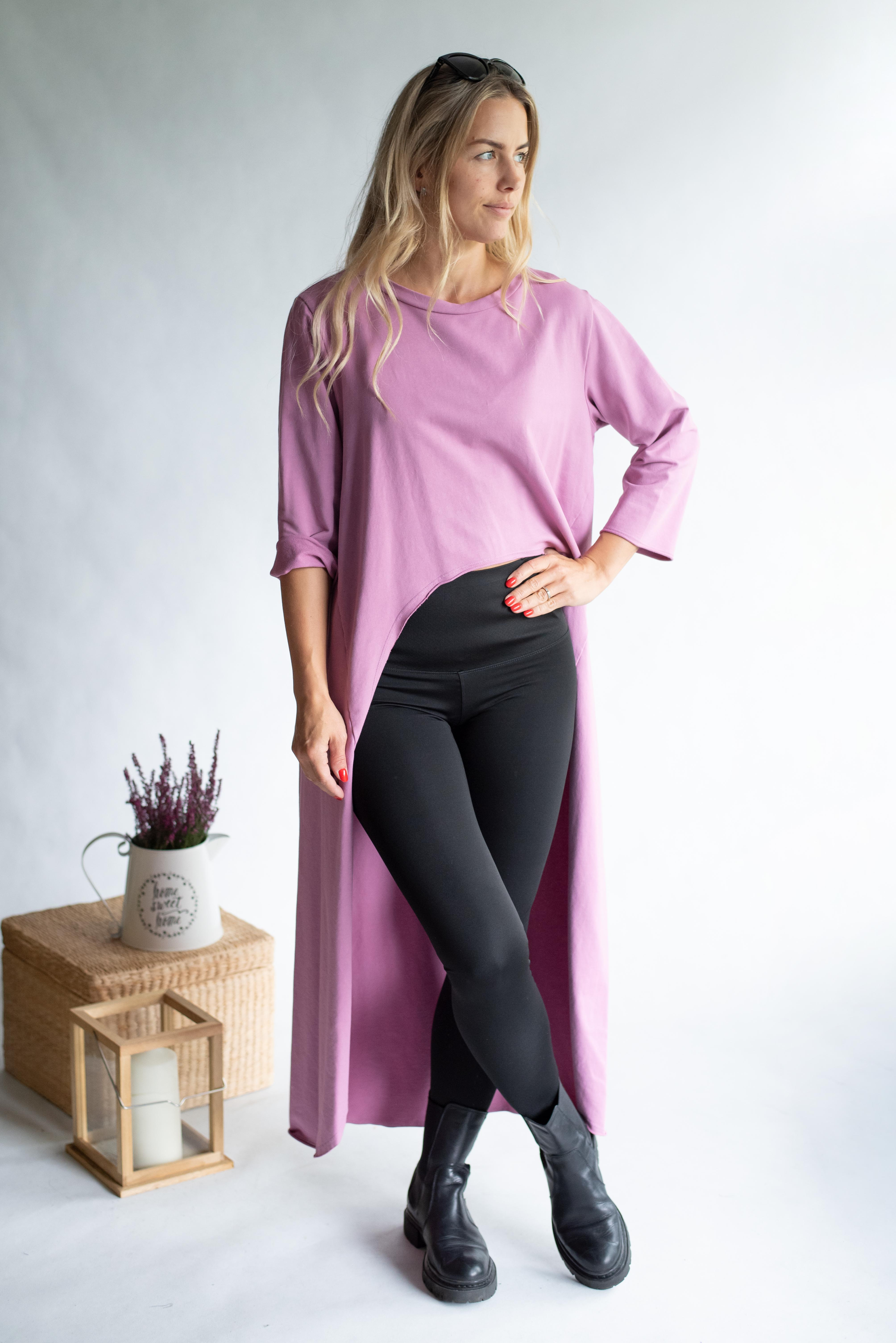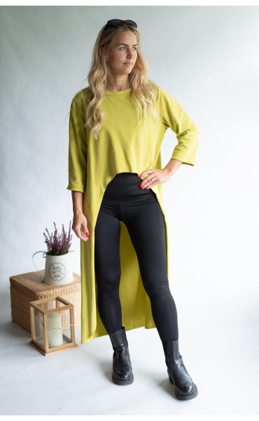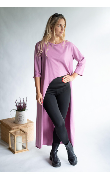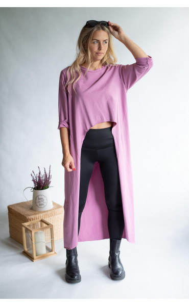 Dlouhá tunika tepláková s prostřihem ve spodní části , kulatý výstřih 3/4 rukáv