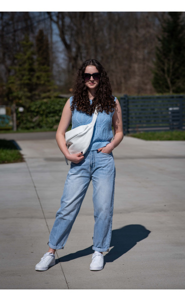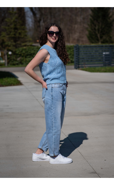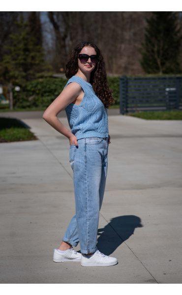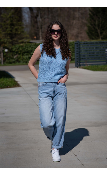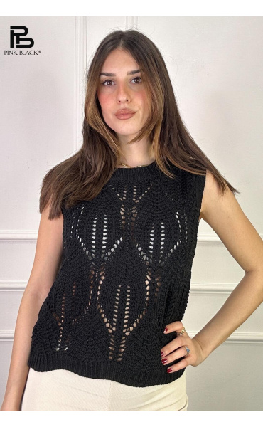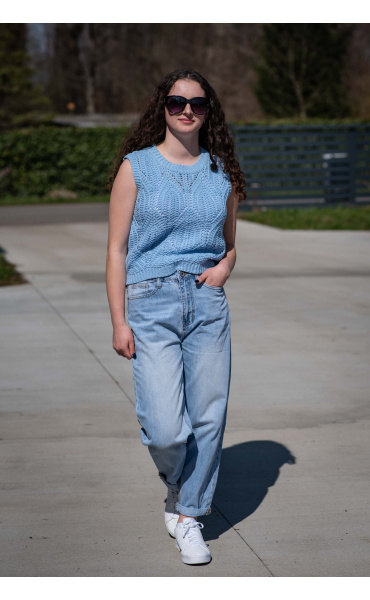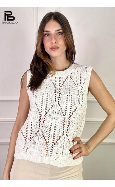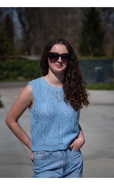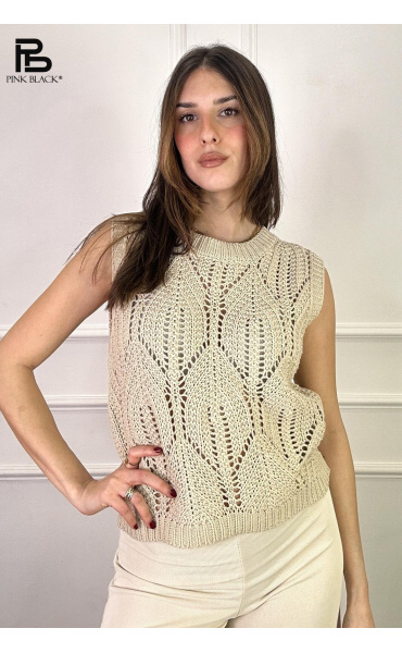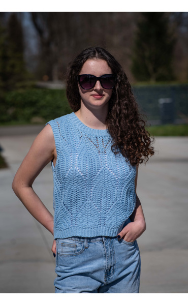 Dámská stylová úpletová vesta s kulatým výstřihem.
