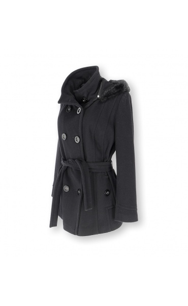 Zdenka Flaušový kabát dvouřadý/101292 barva: černá, velikost: 44