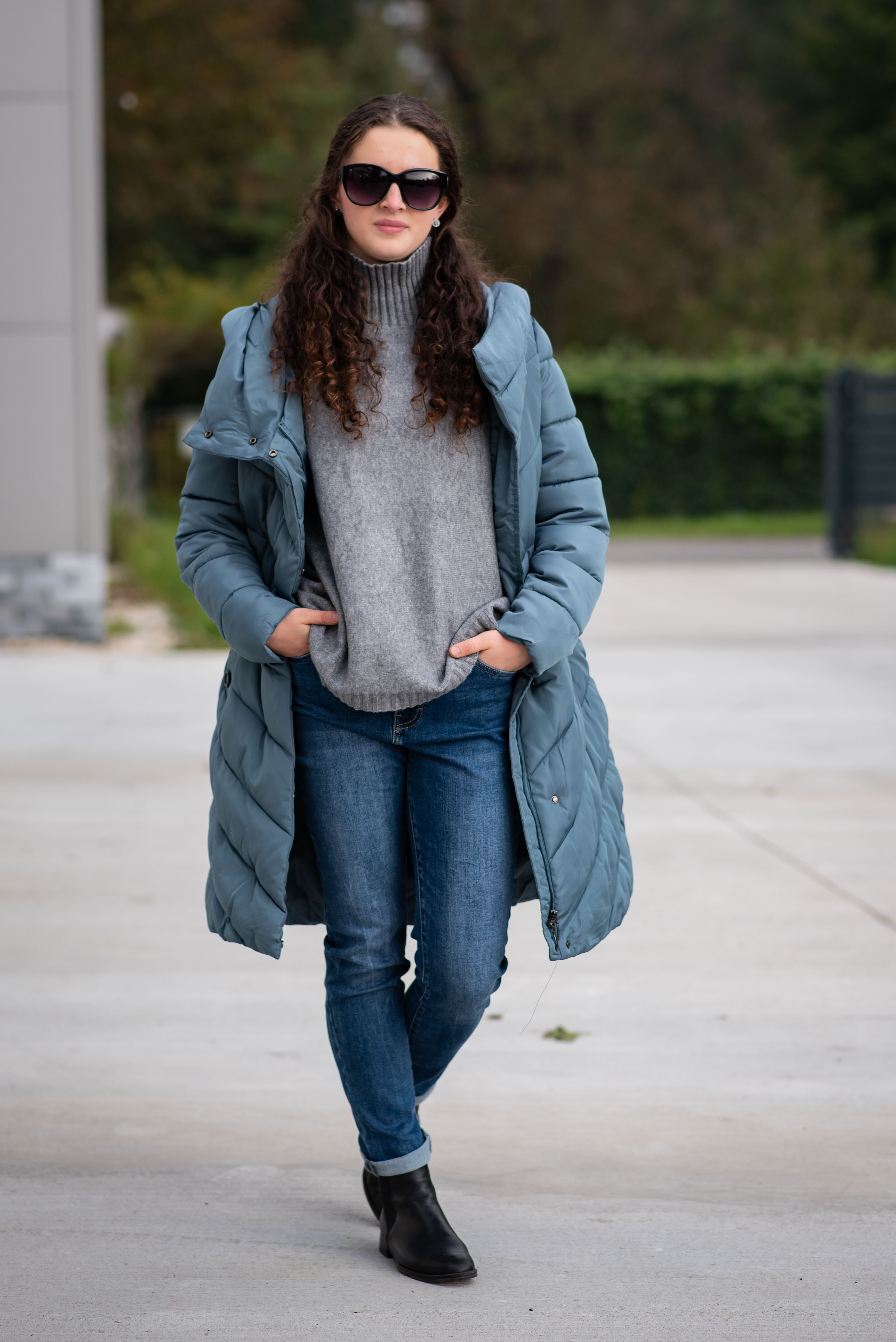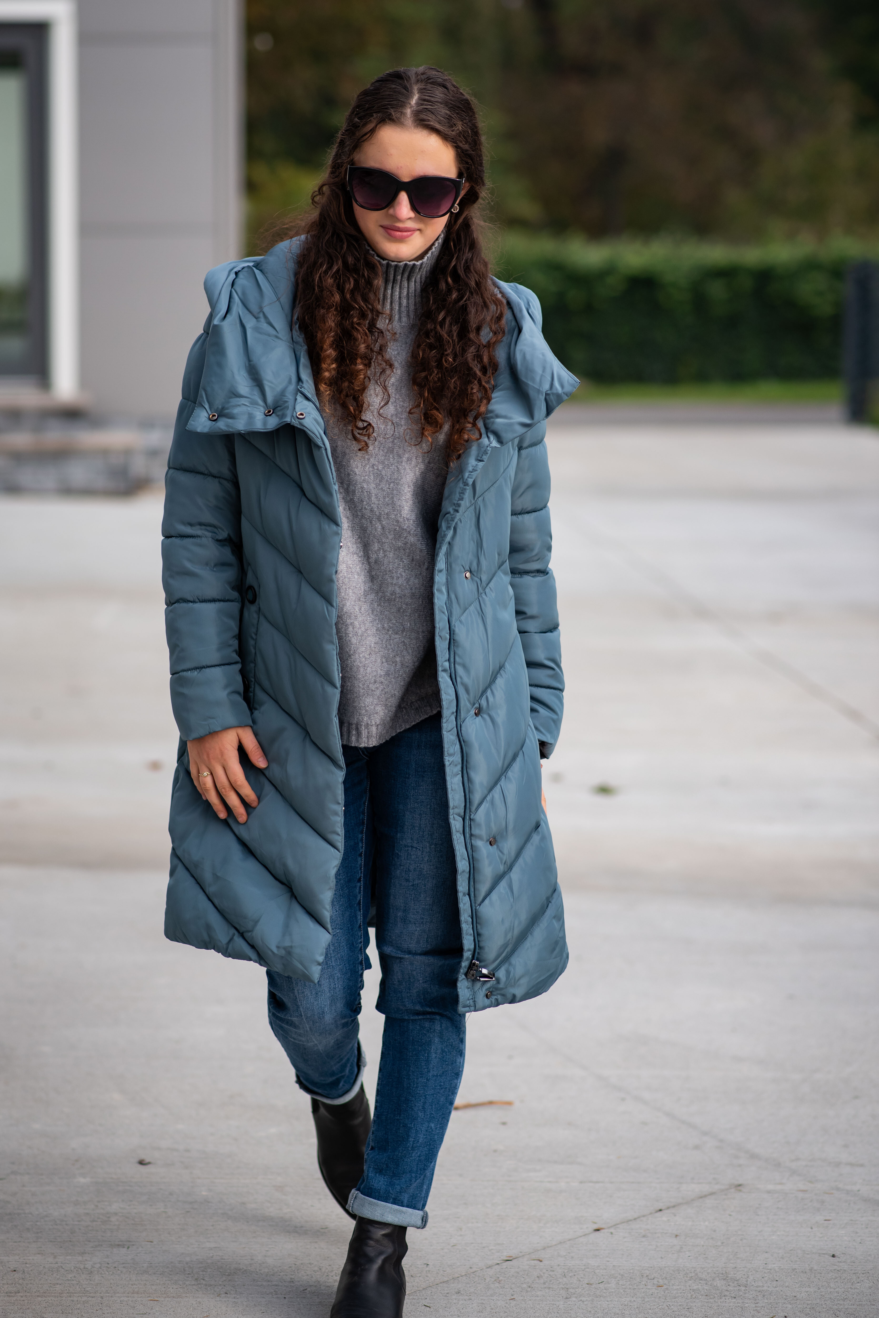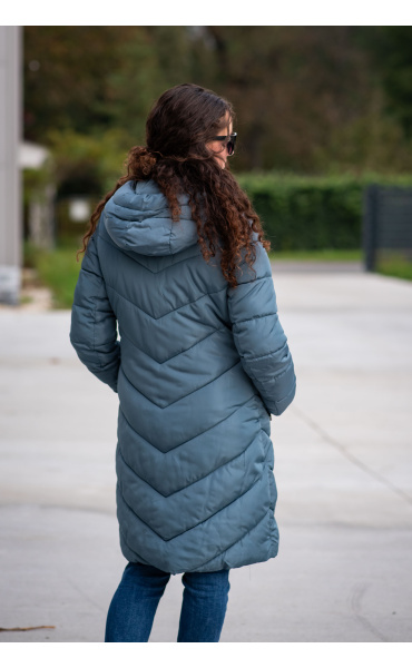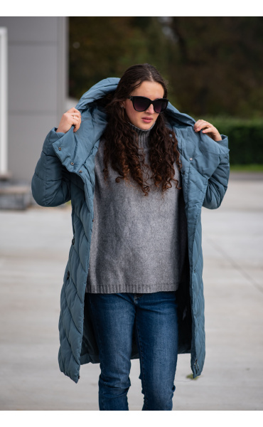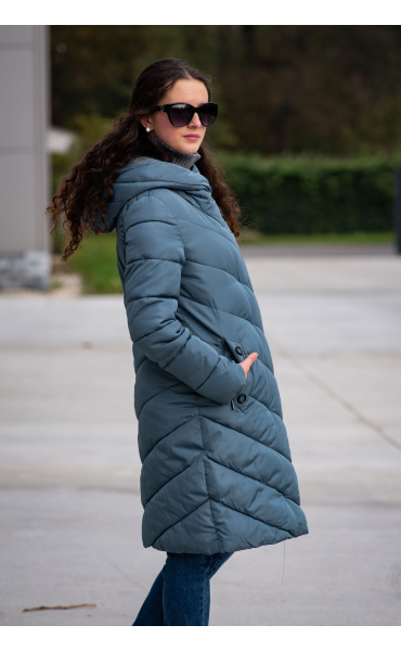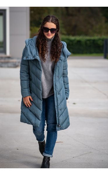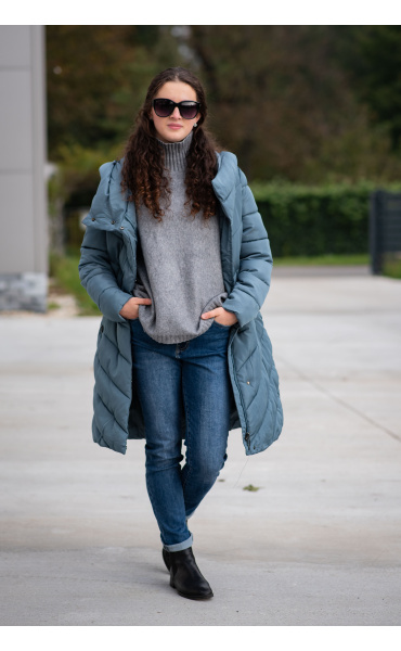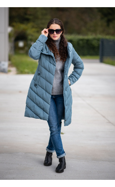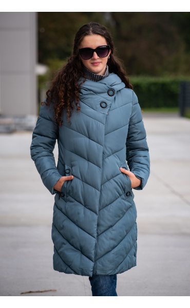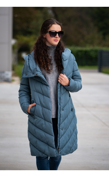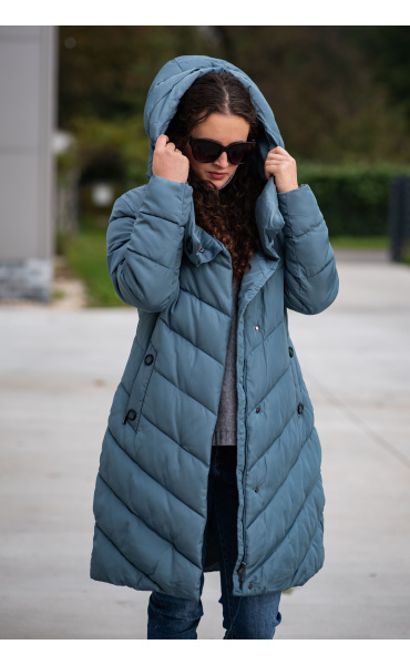 Zimní prošívaná bunda s kapucí. Dvojitý zip a druky na zapínání. Dovoz Itálie