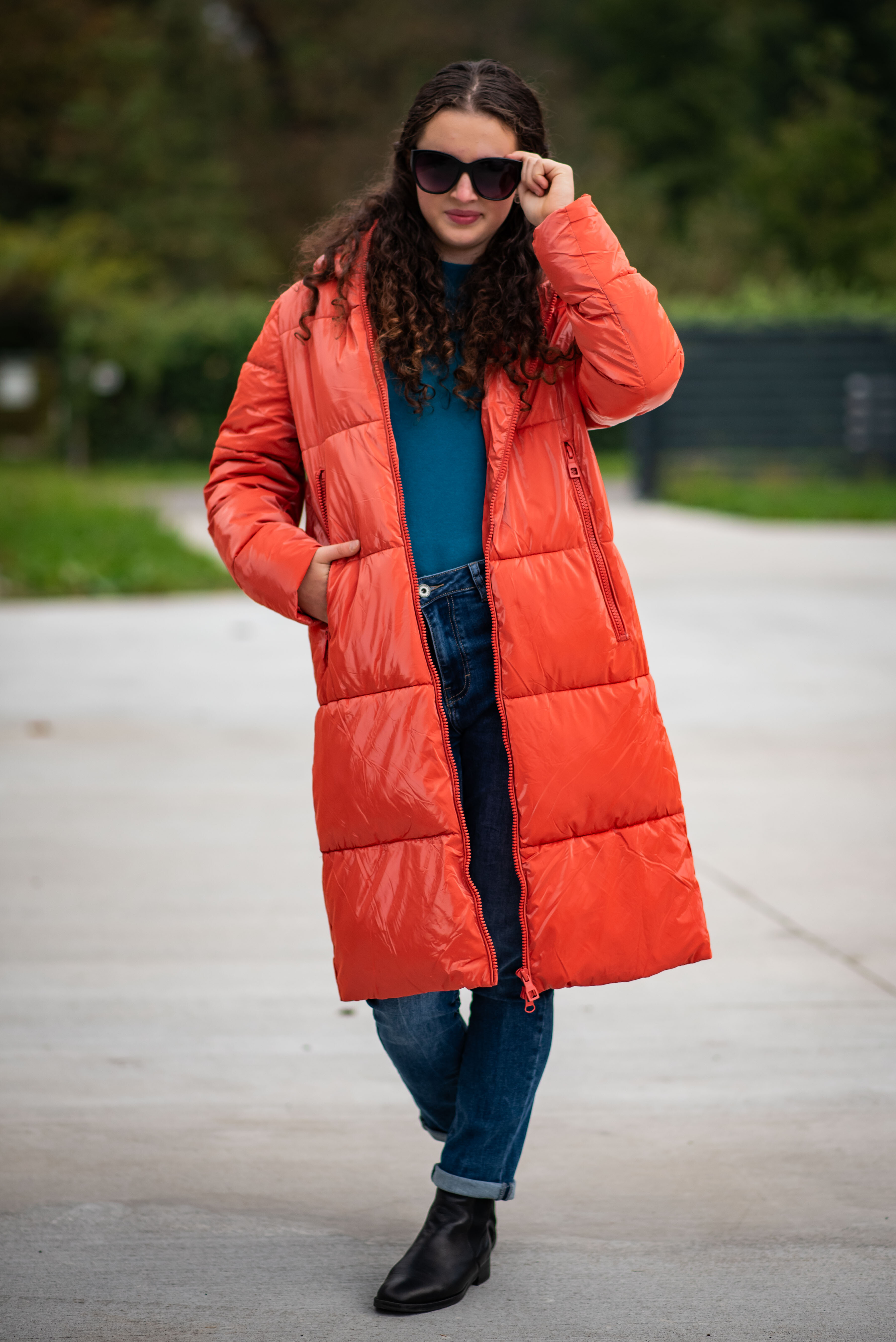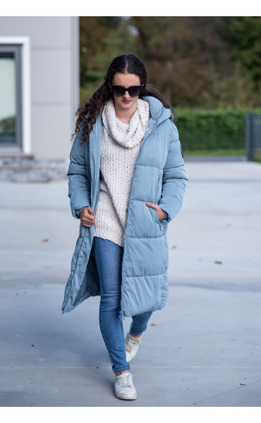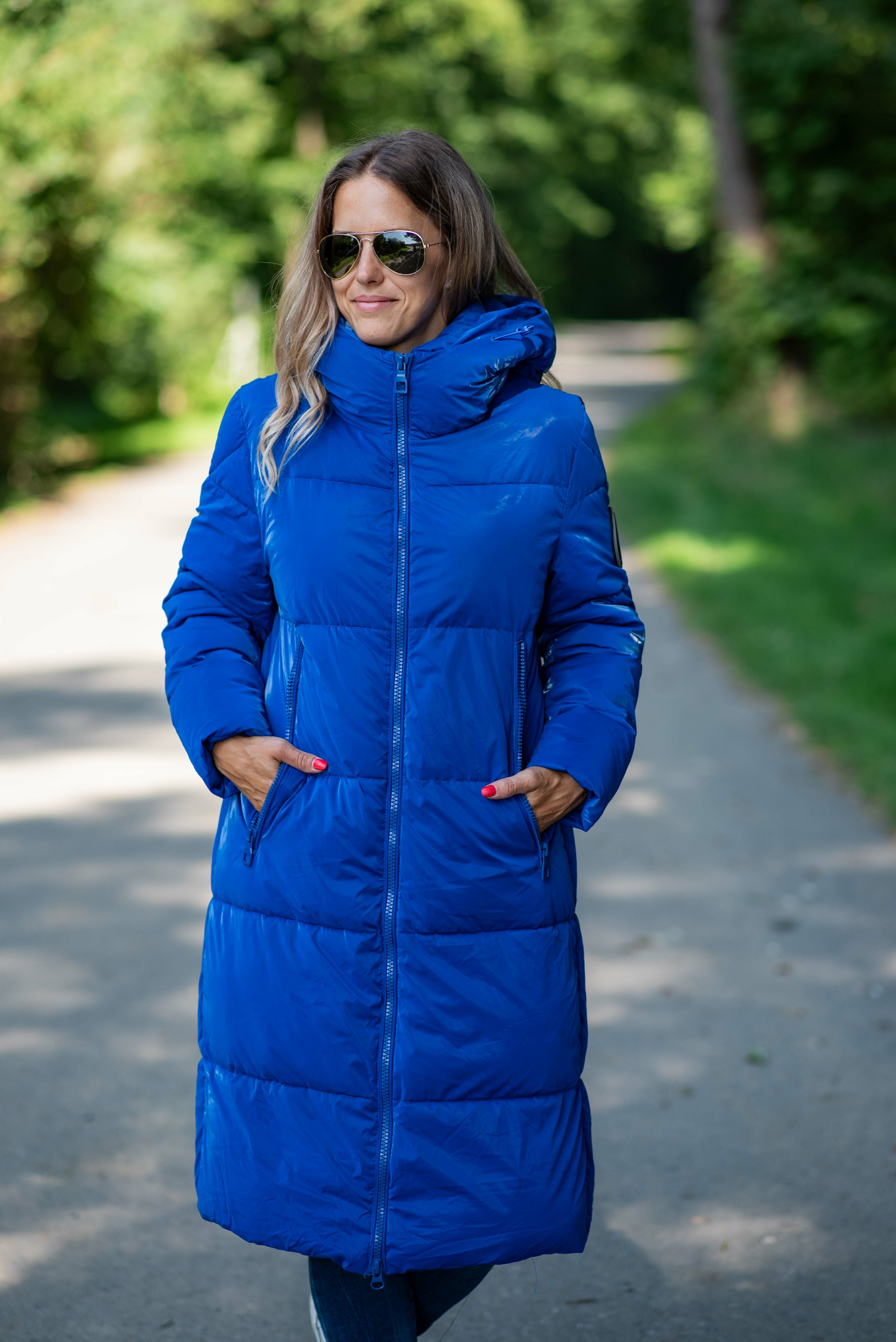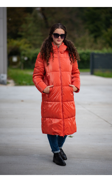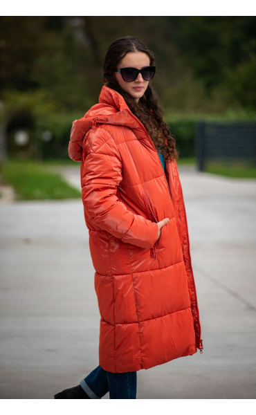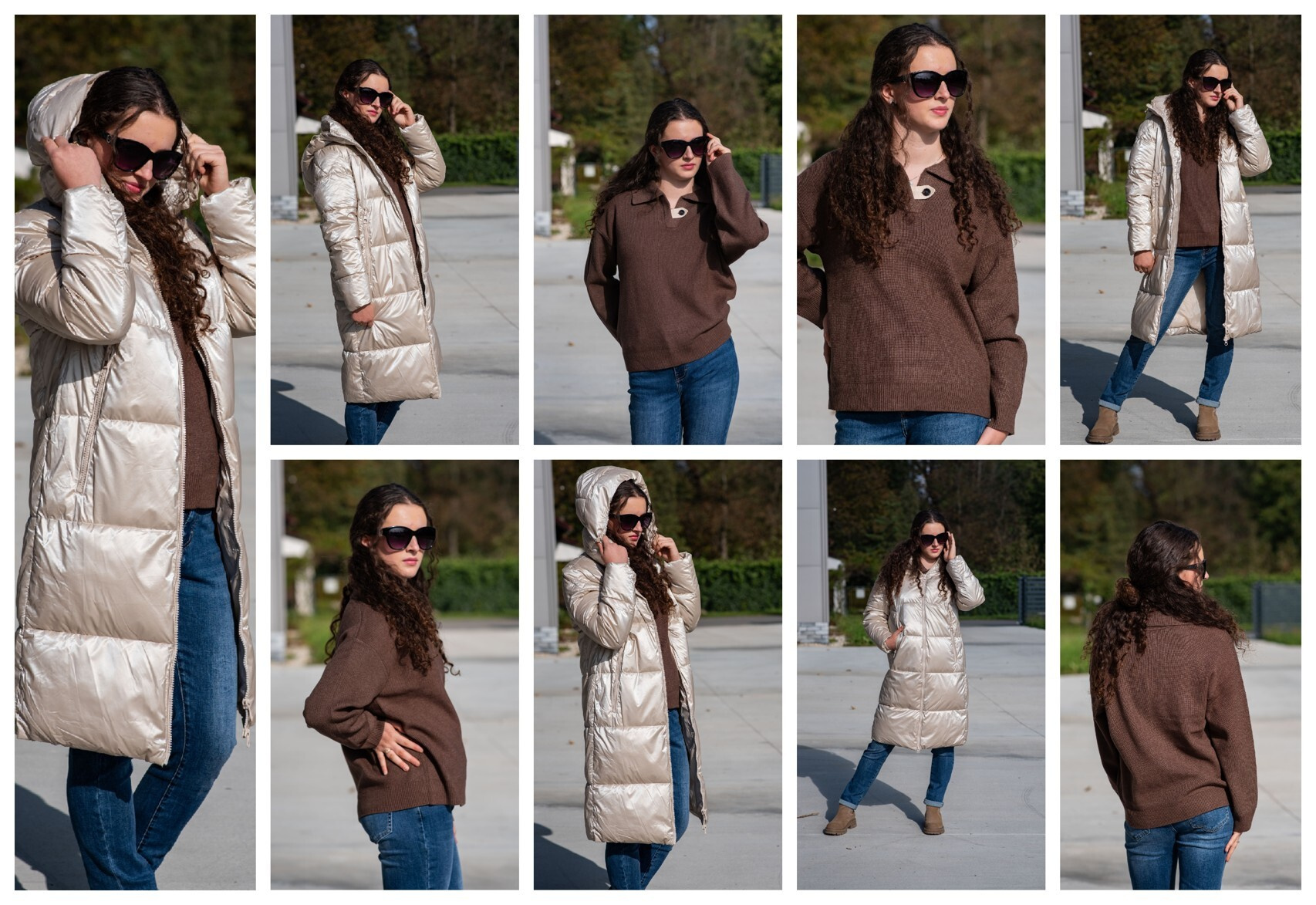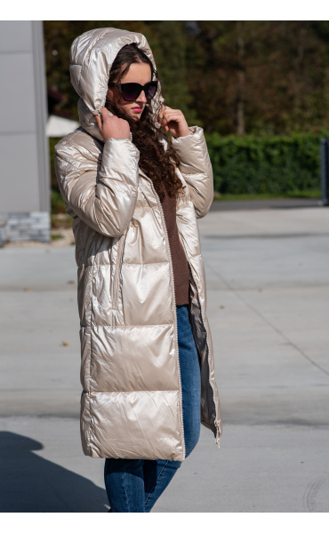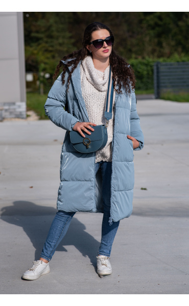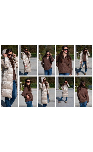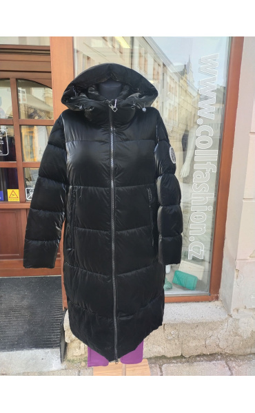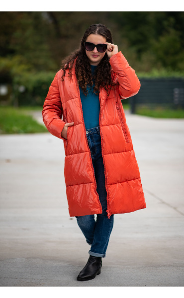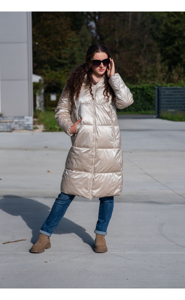 Módní delší zimní bunda s odepínací kapucí , vnitřní kapsa na mobil. Itálie
